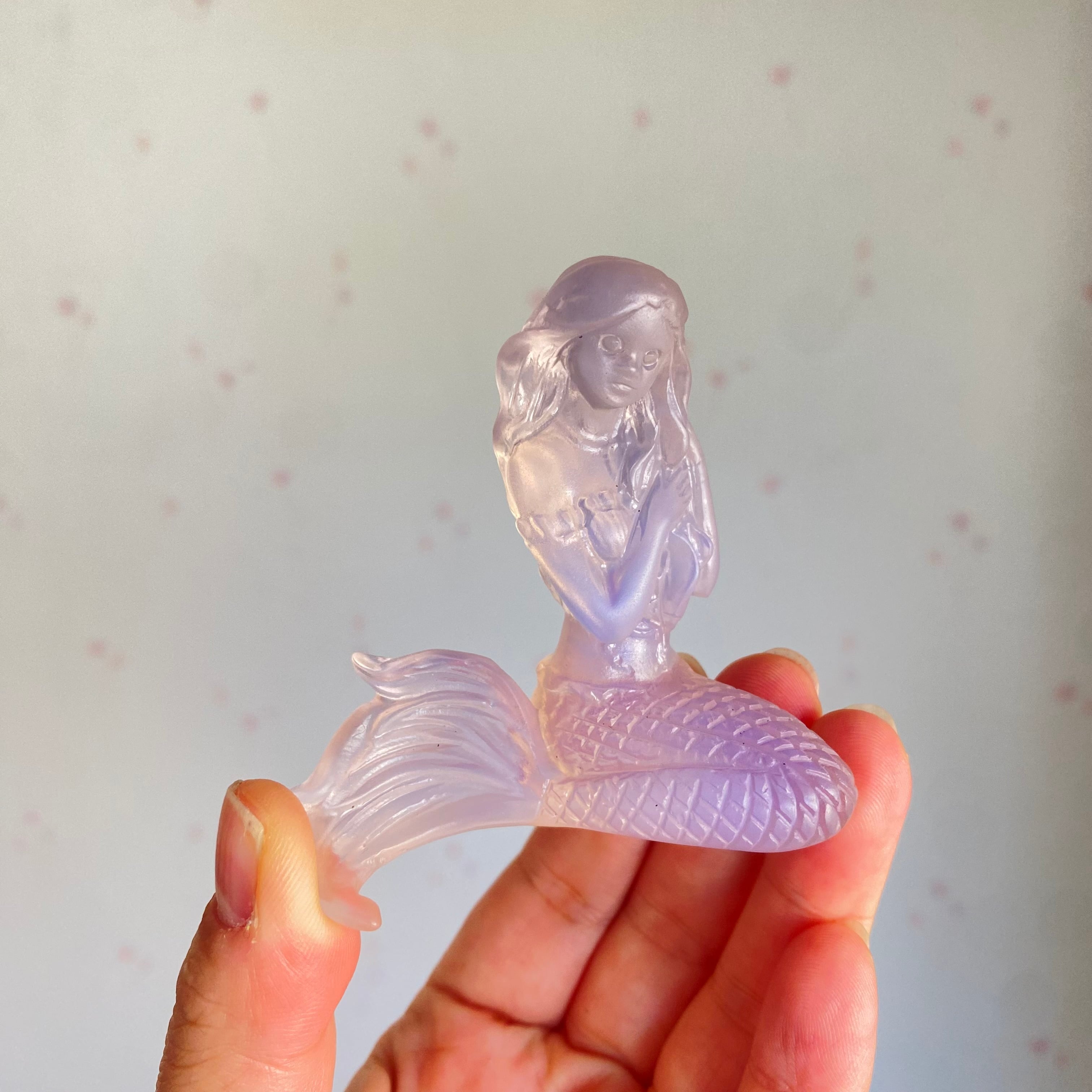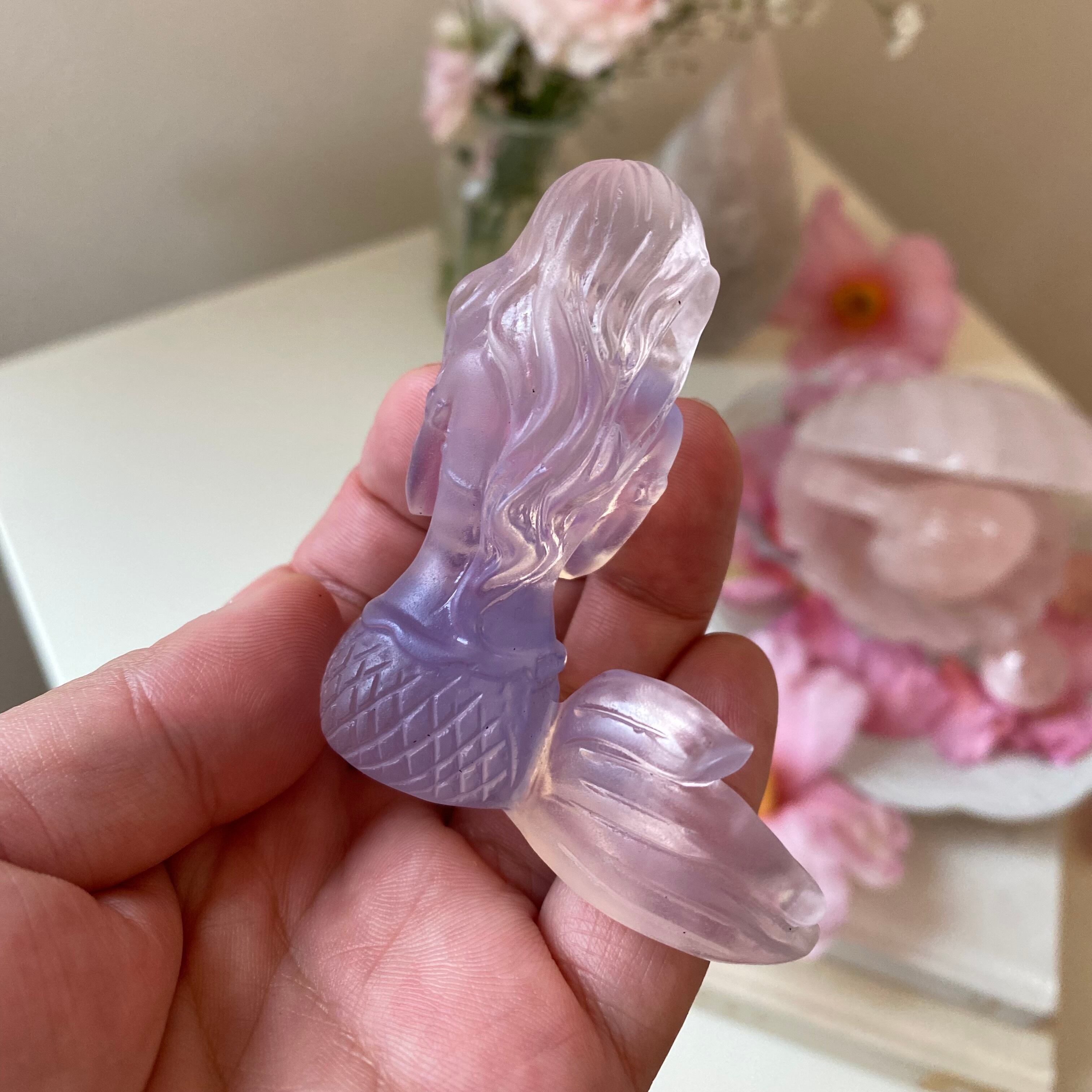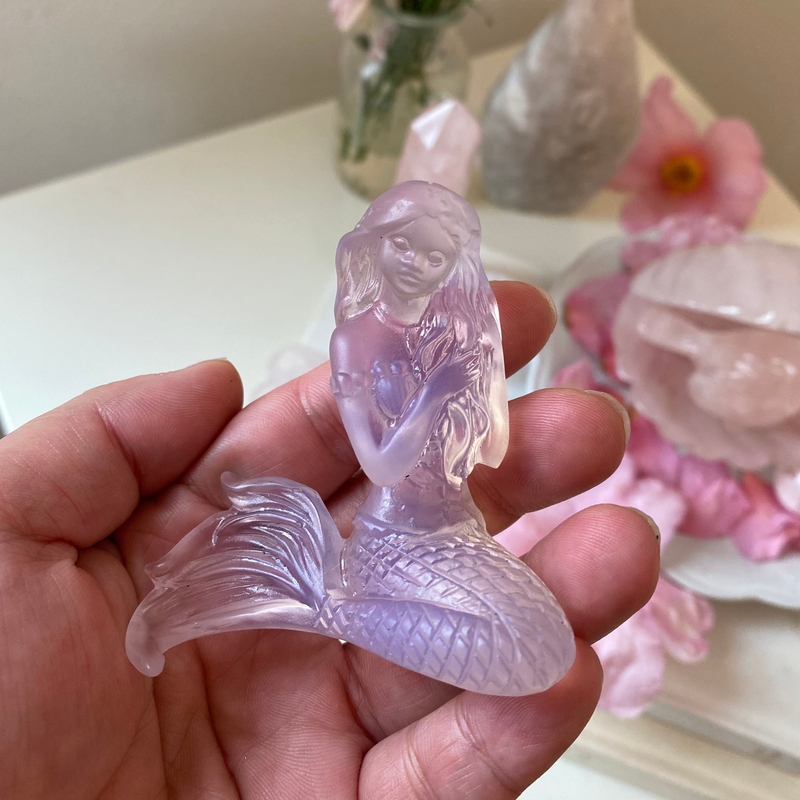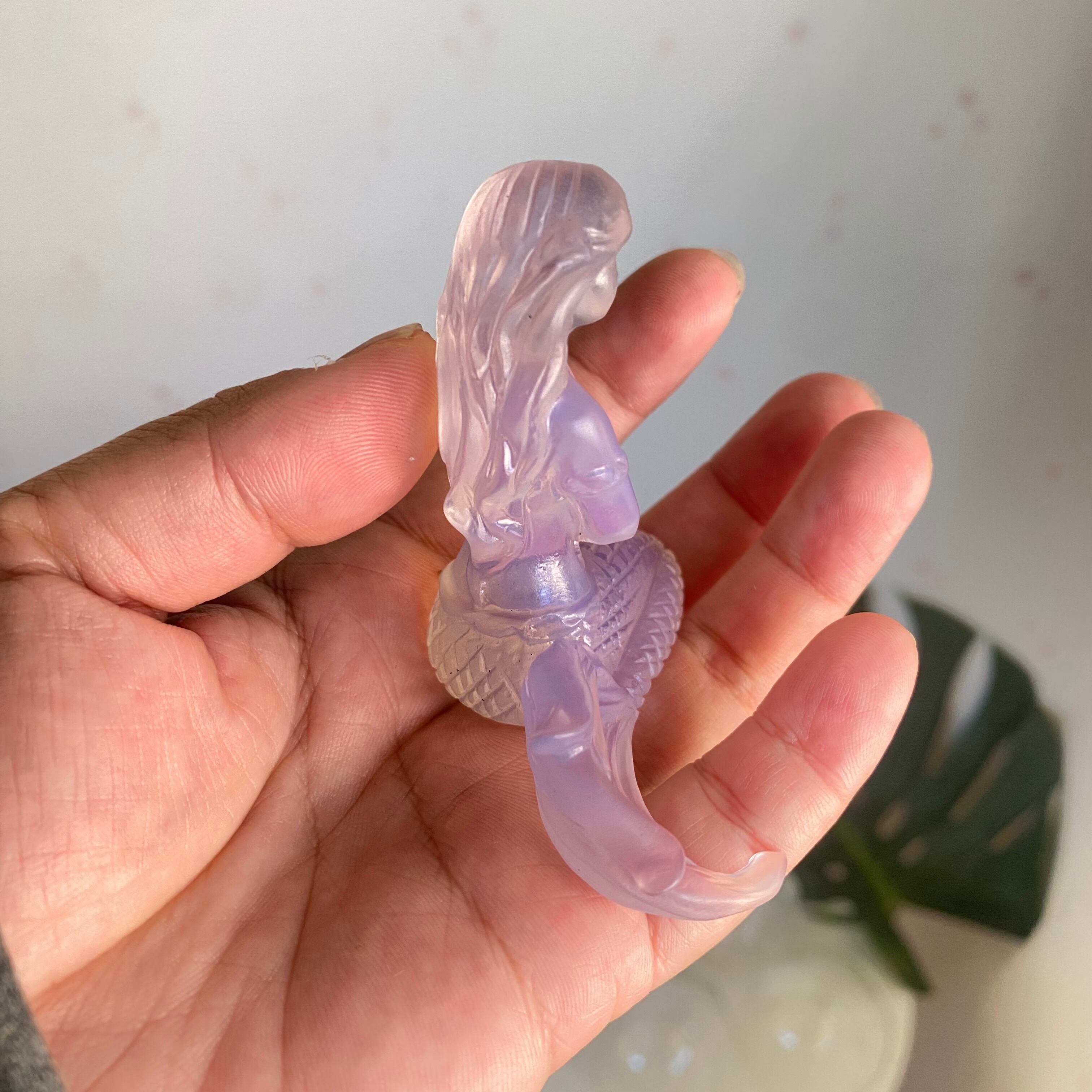 ピンクオパーライトで彫刻された、幻想的なマーメイドカービングです。