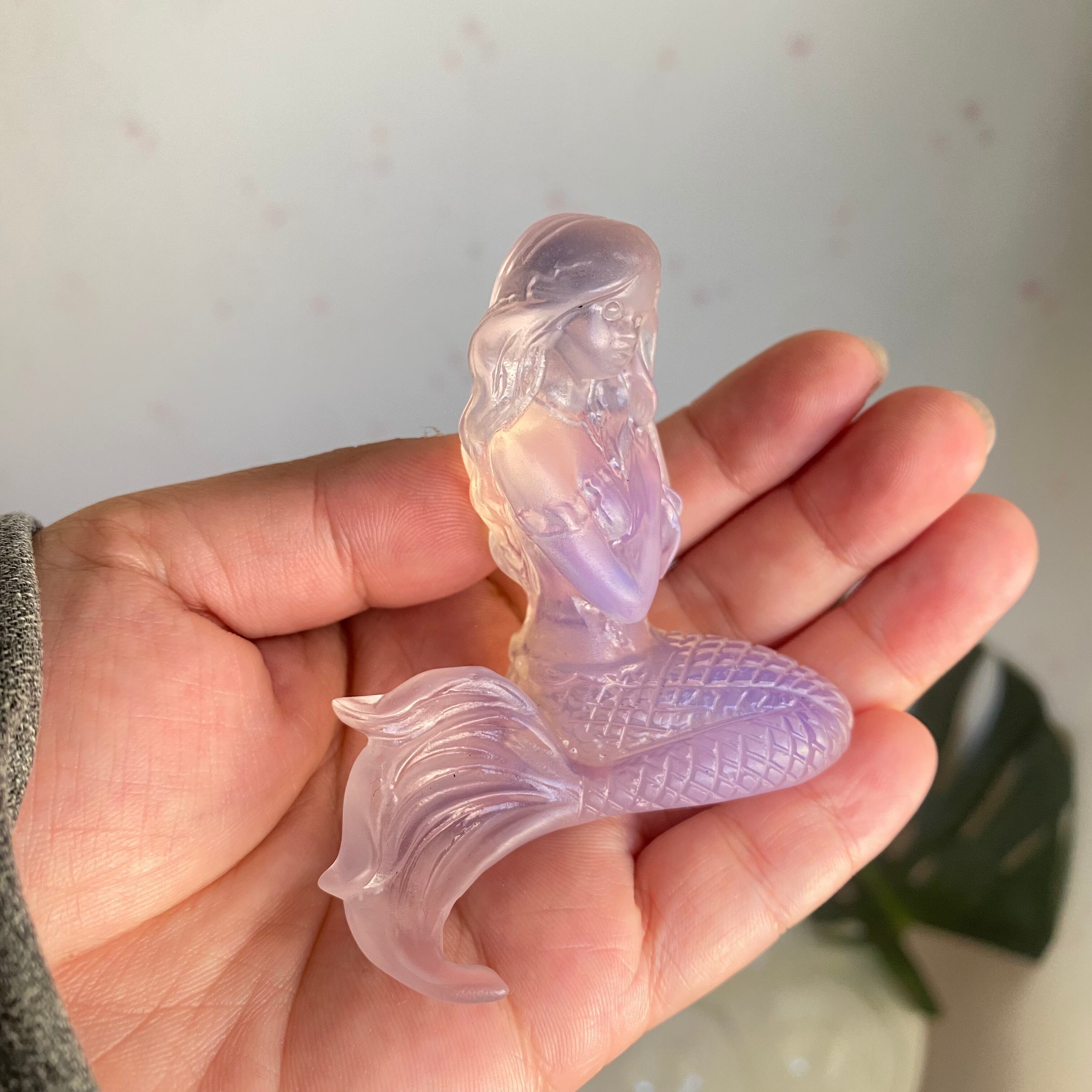 ピンクオパーライト マーメイド カービング 人工石 パワーストーン