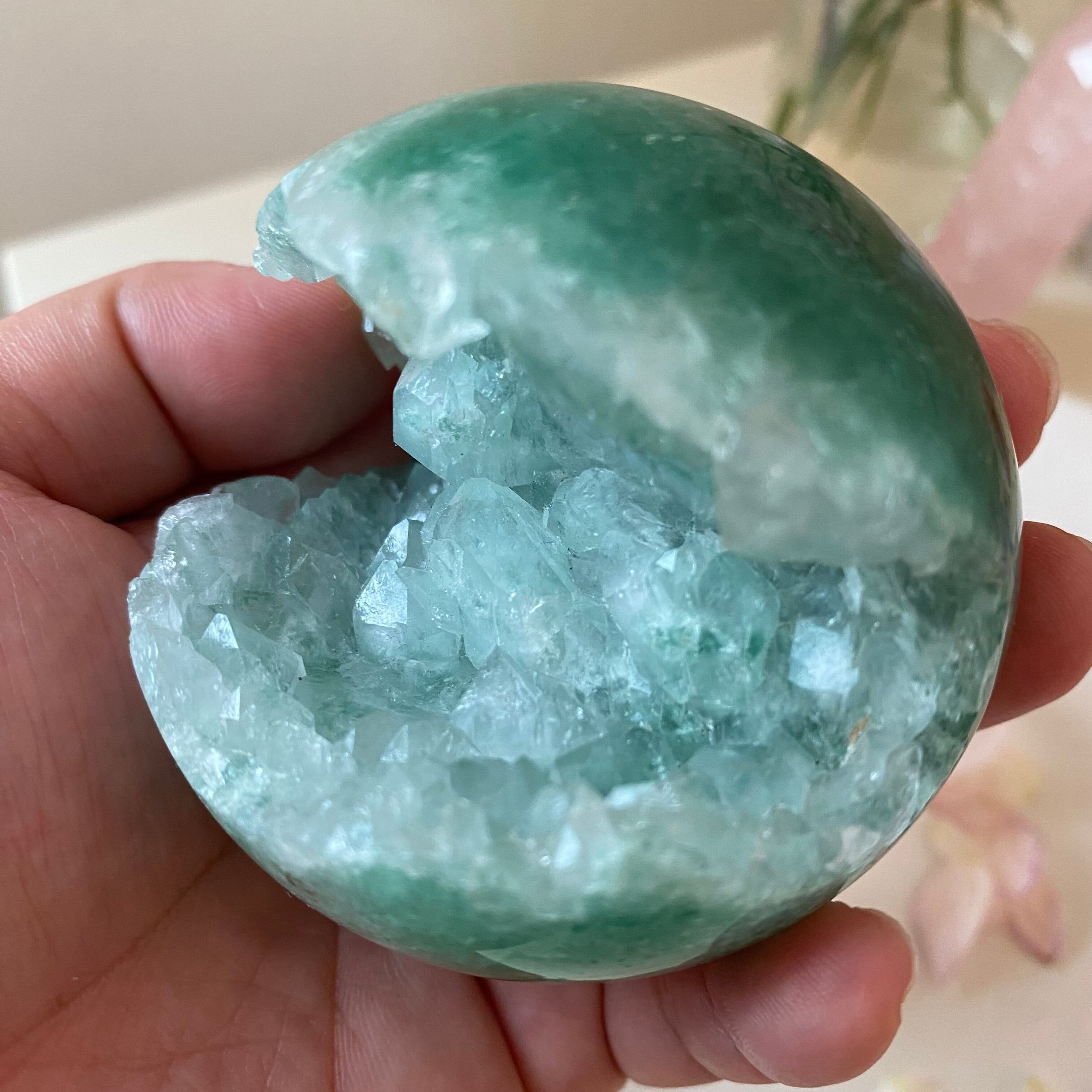 【レア】グリーンストロベリークォーツ スフィア 結晶 ドゥルージー 笑口 天然石 パワーストーン