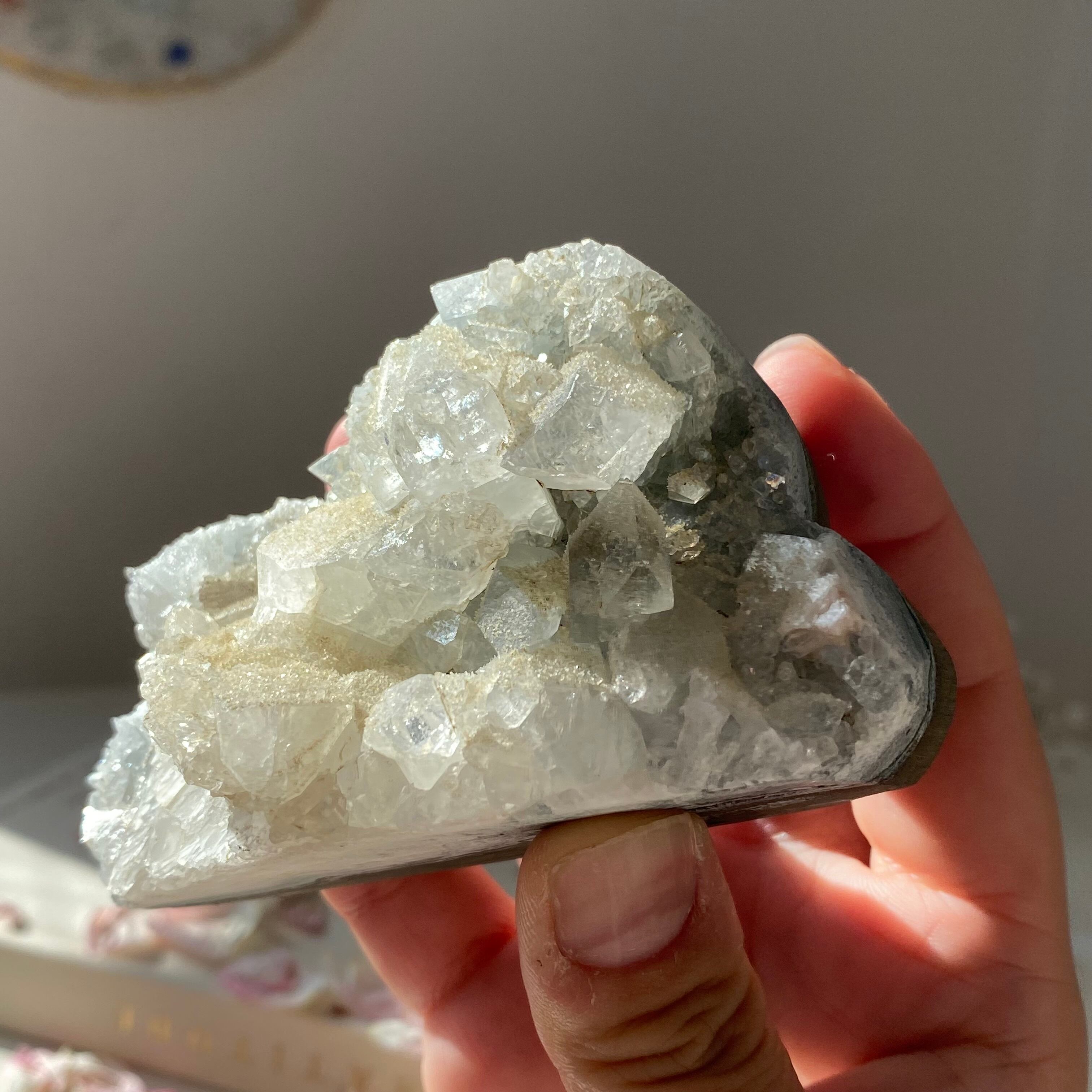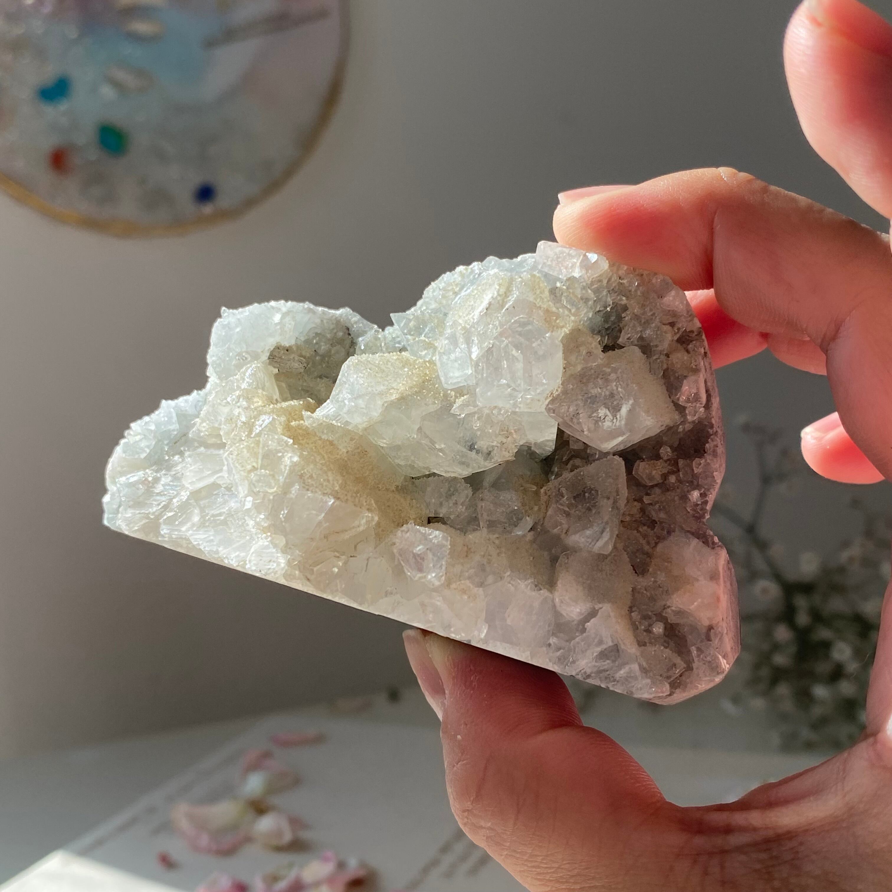 この個性的な形と輝きを持つアポフィライトは、見ているだけで心を癒し、穏やかな気持ちにさせてくれます。