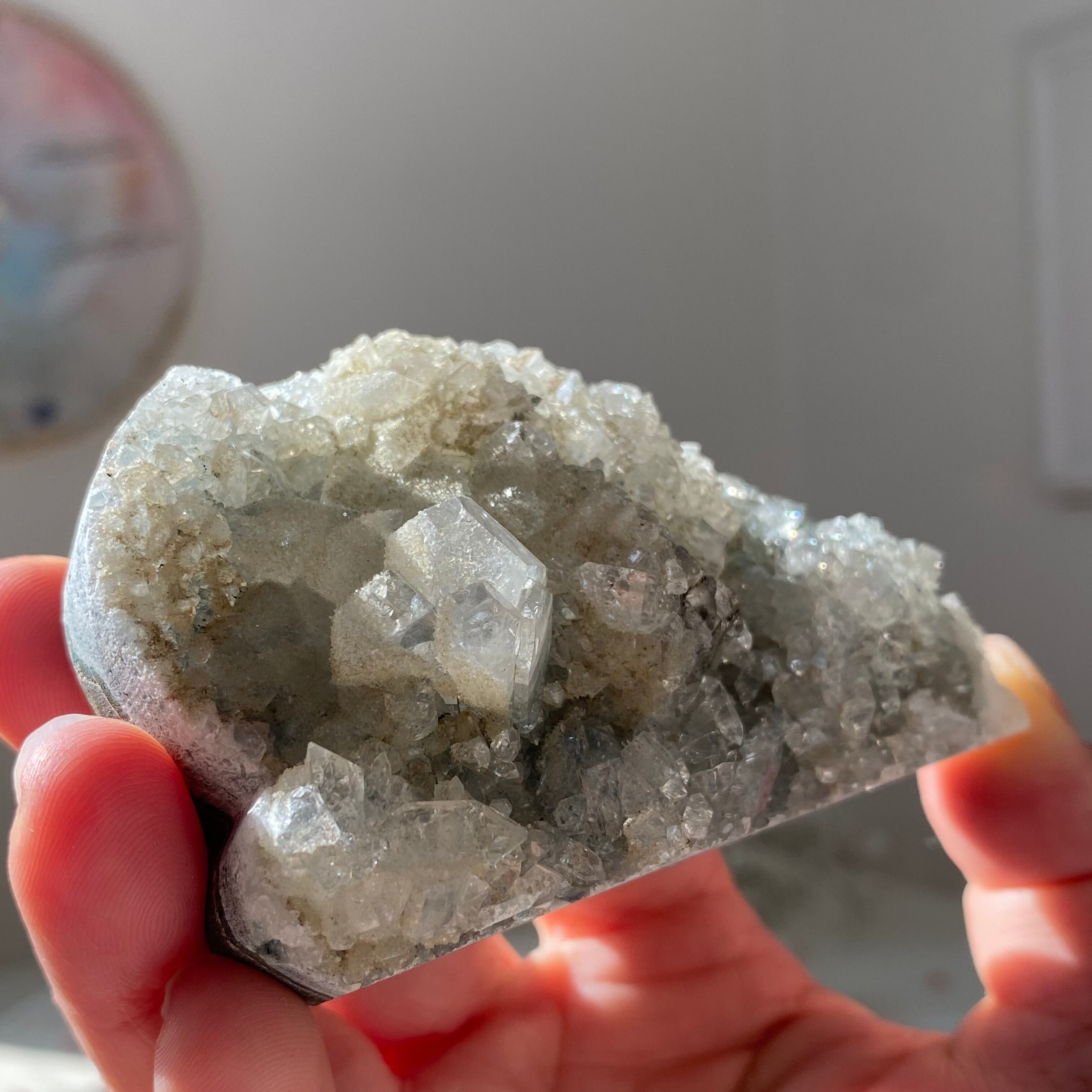 この個性的な形と輝きを持つアポフィライトは、見ているだけで心を癒し、穏やかな気持ちにさせてくれます。