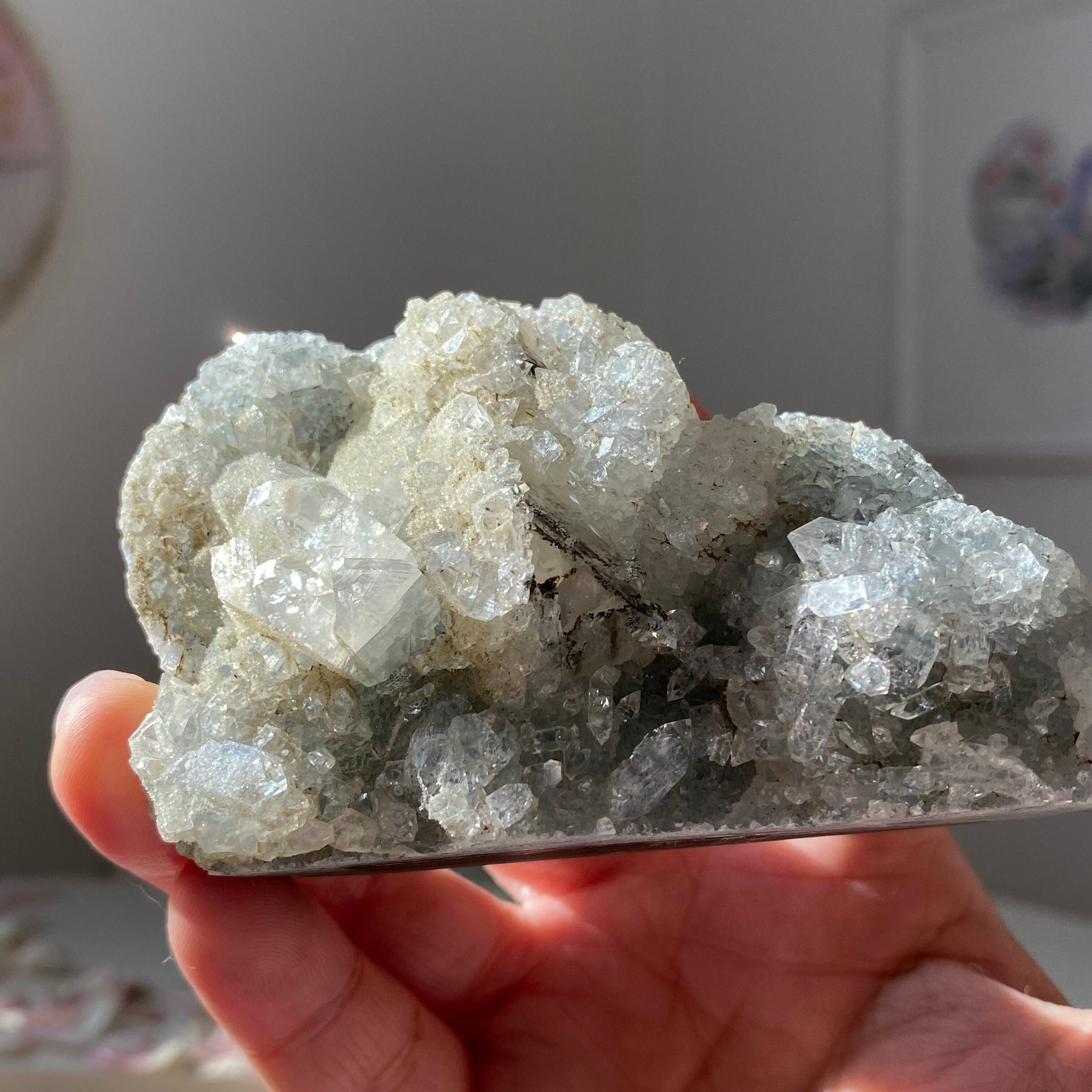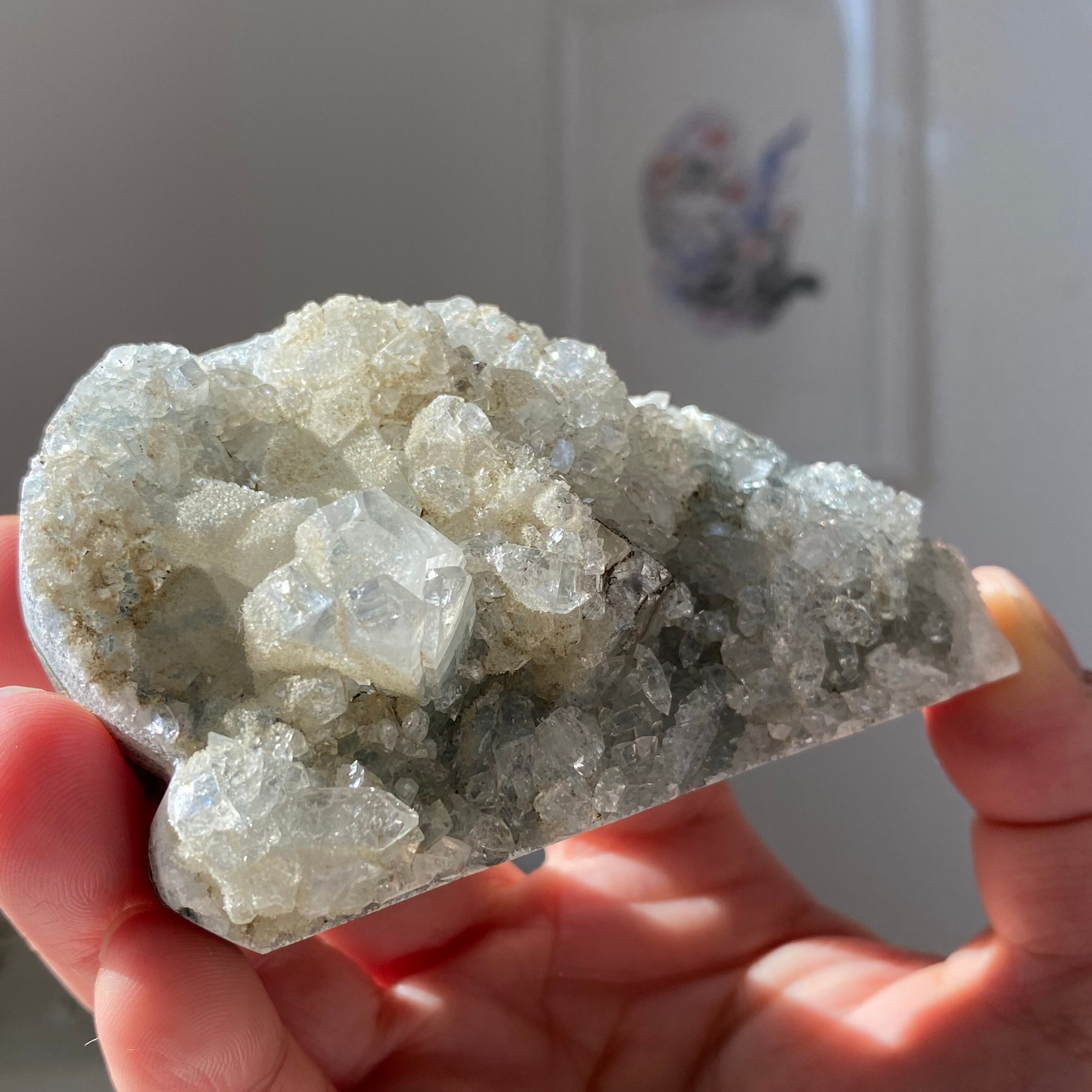 ふんわりとした雲のようなシルエットが魅力的な、アポフィライトのドゥルージー結晶。