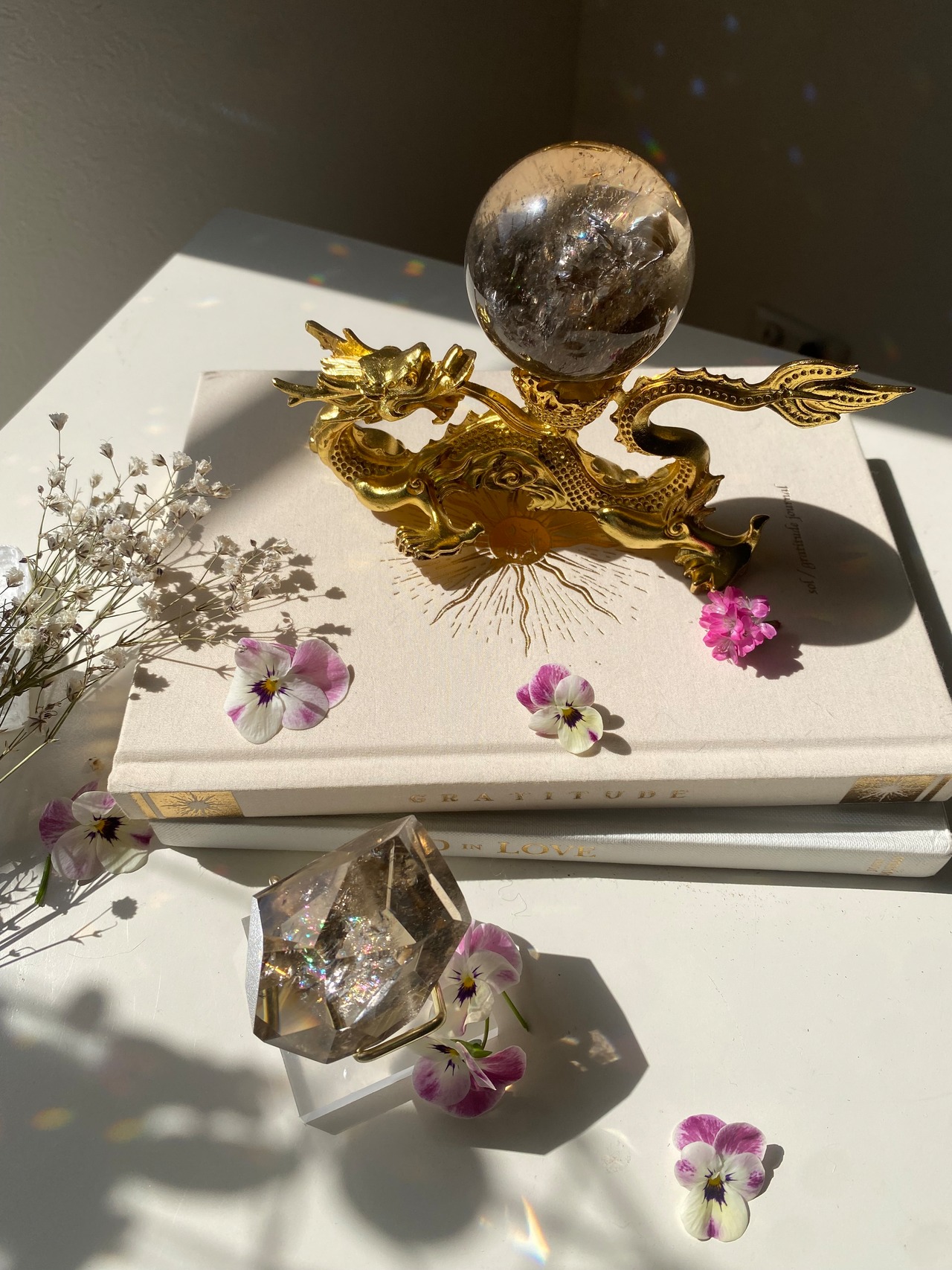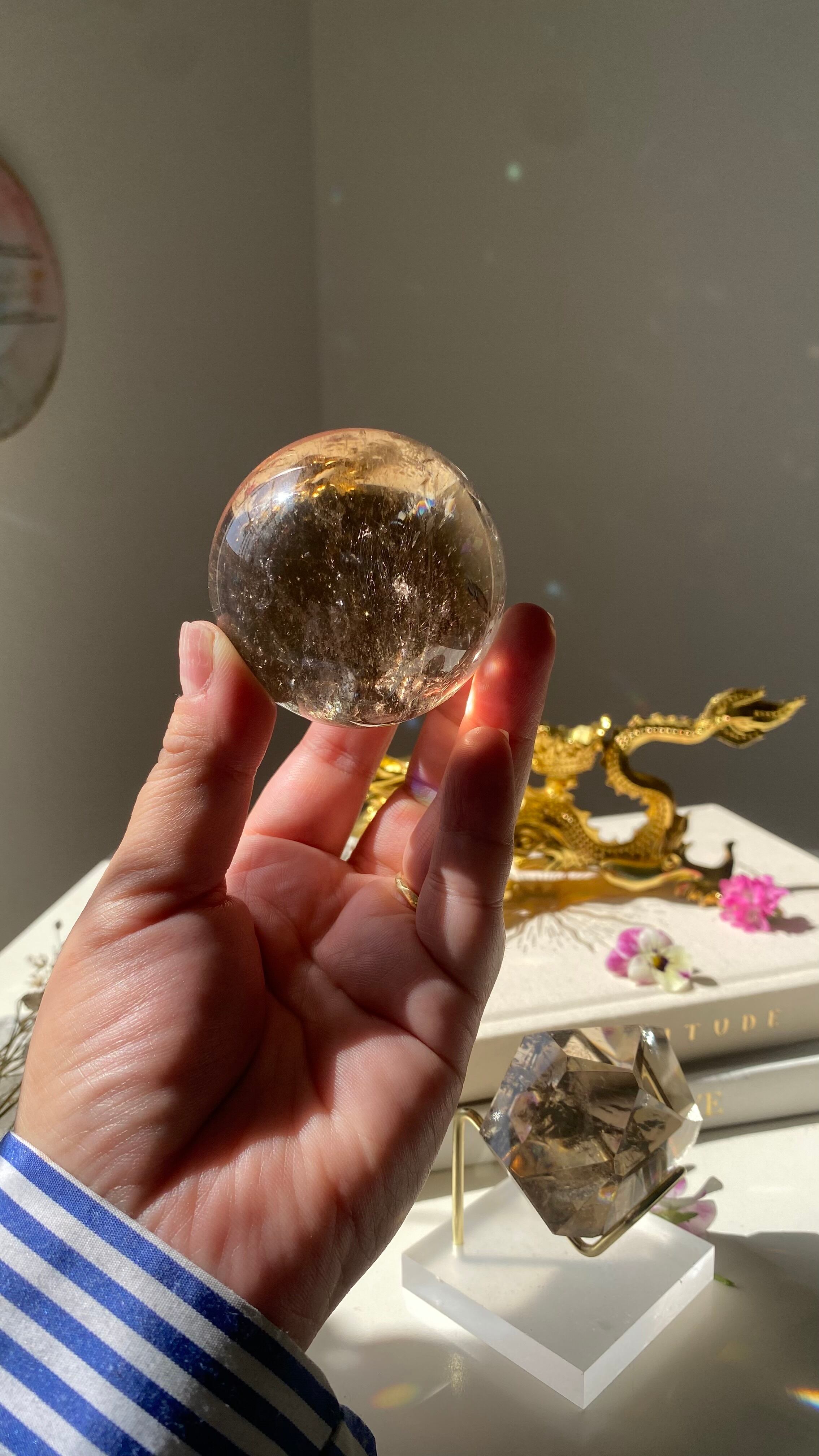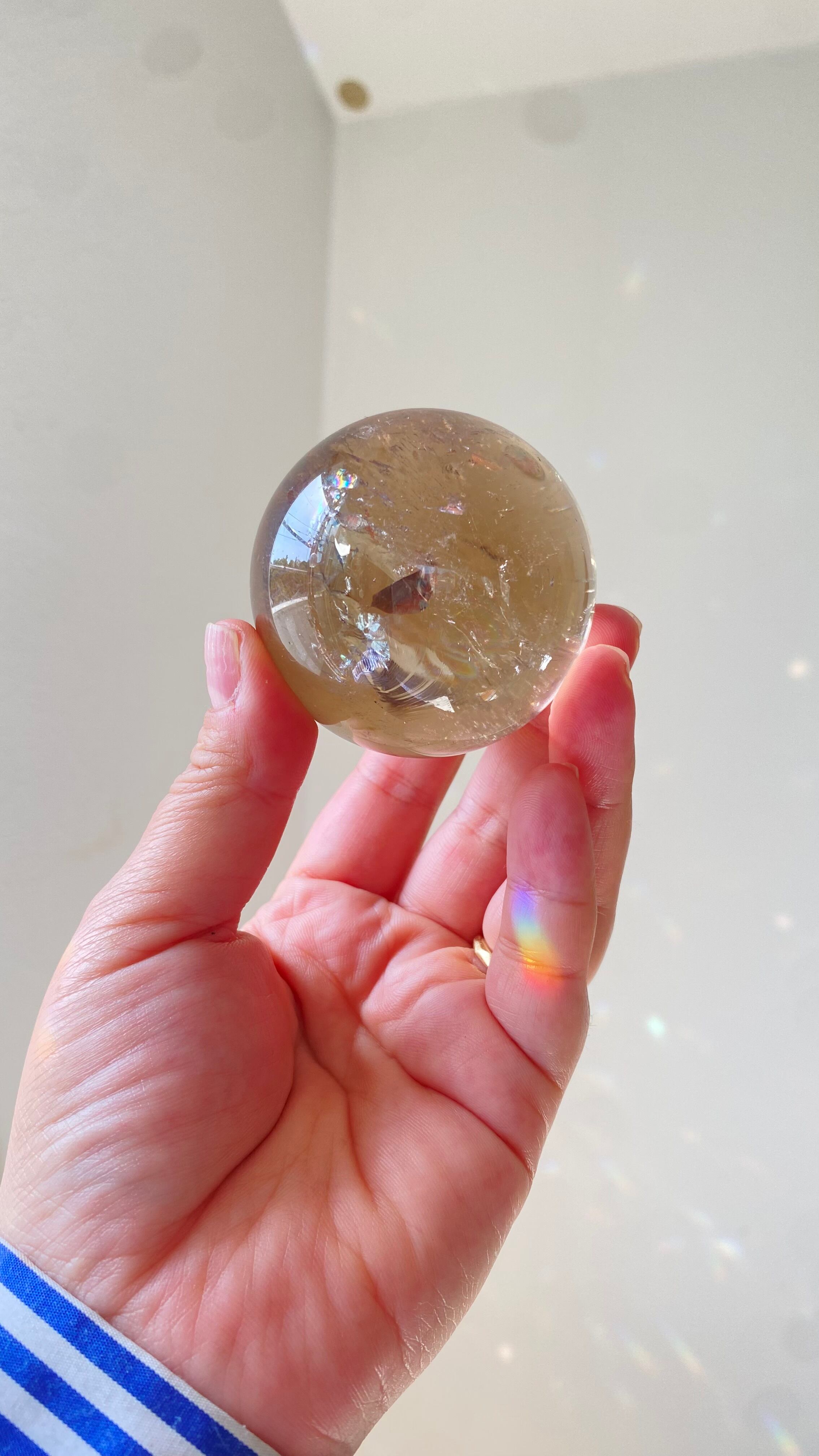 柔らかい光の中にそっと現れる虹のきらめきが宿っています。