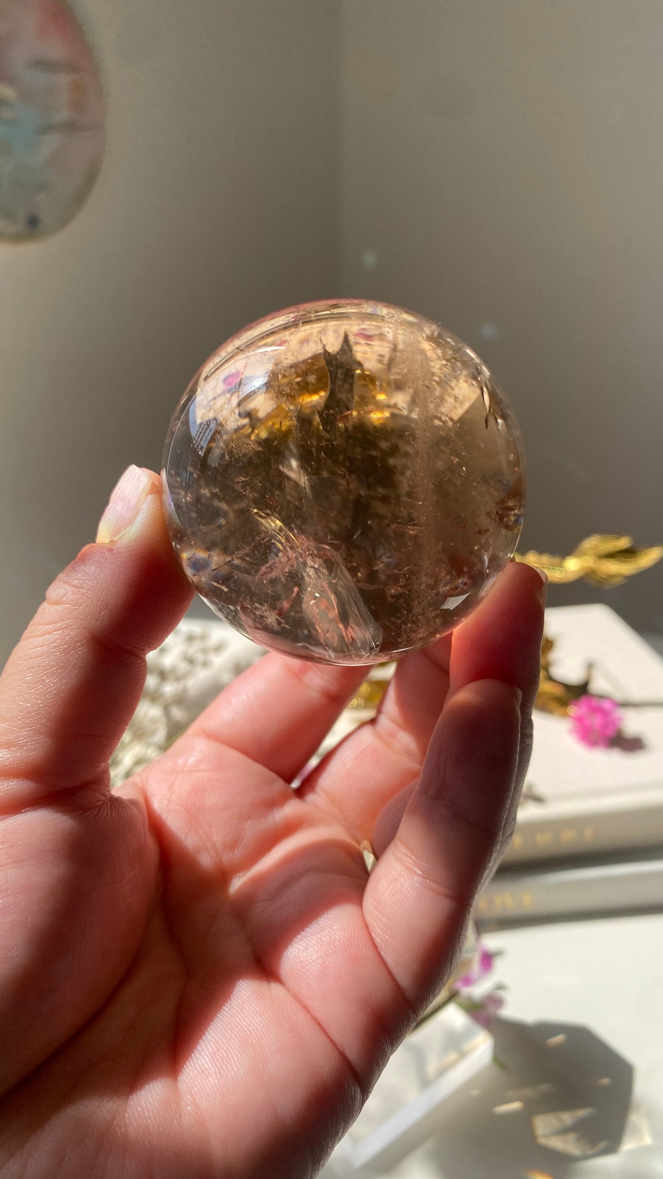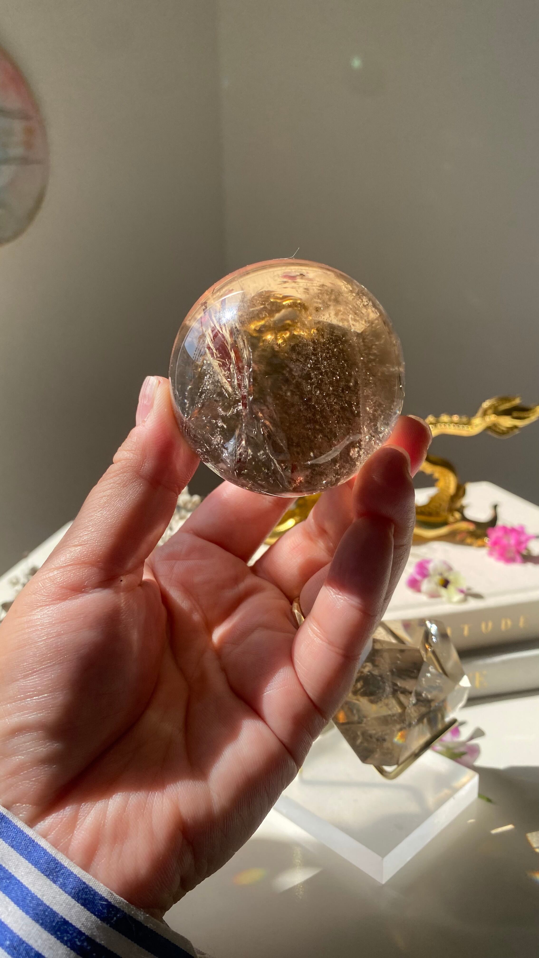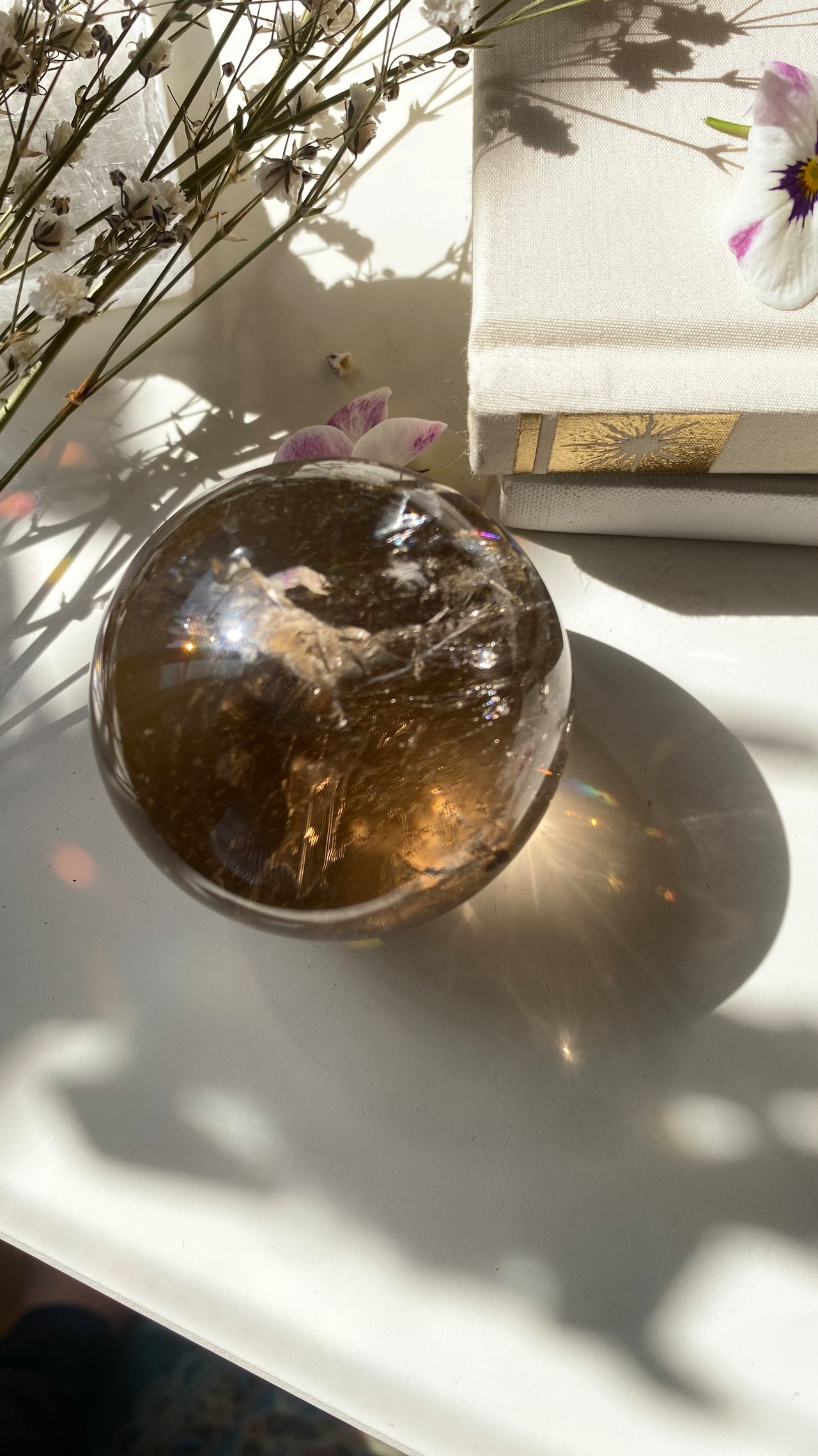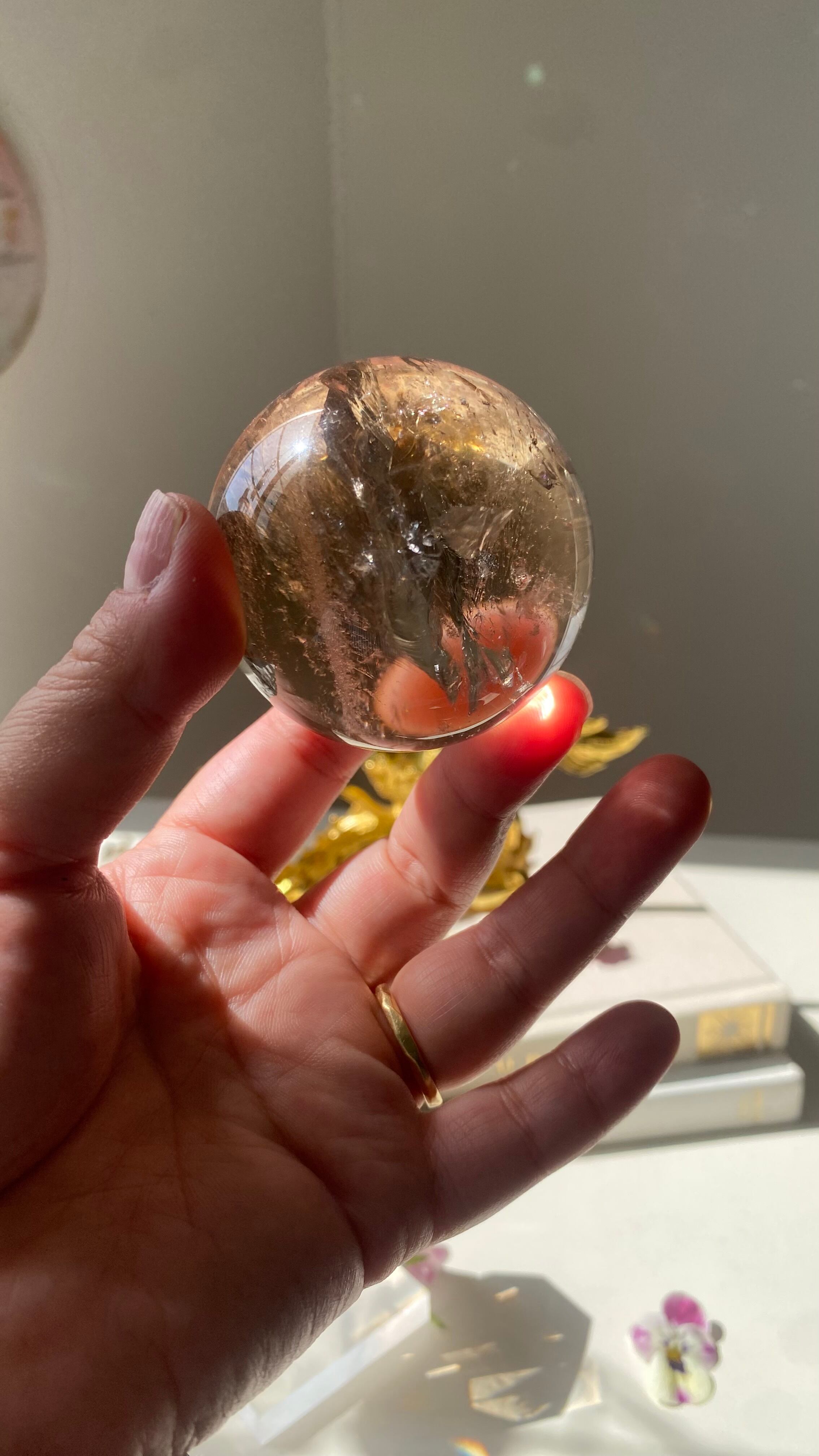 柔らかい光の中にそっと現れる虹のきらめきが宿っています。