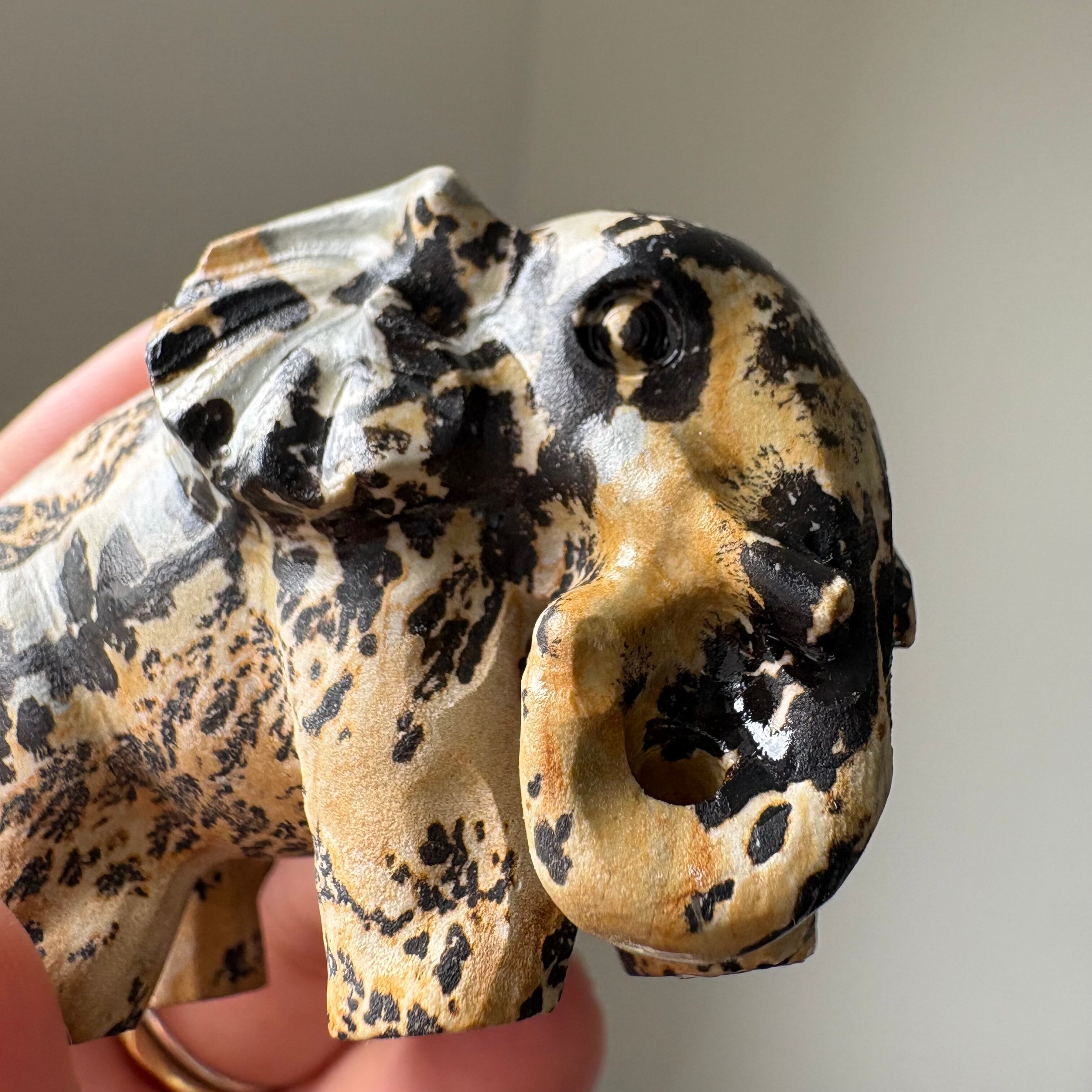 この小さなゾウは、地球とつながる力を宿した「ピクチャージャスパー」から彫り出された存在です。