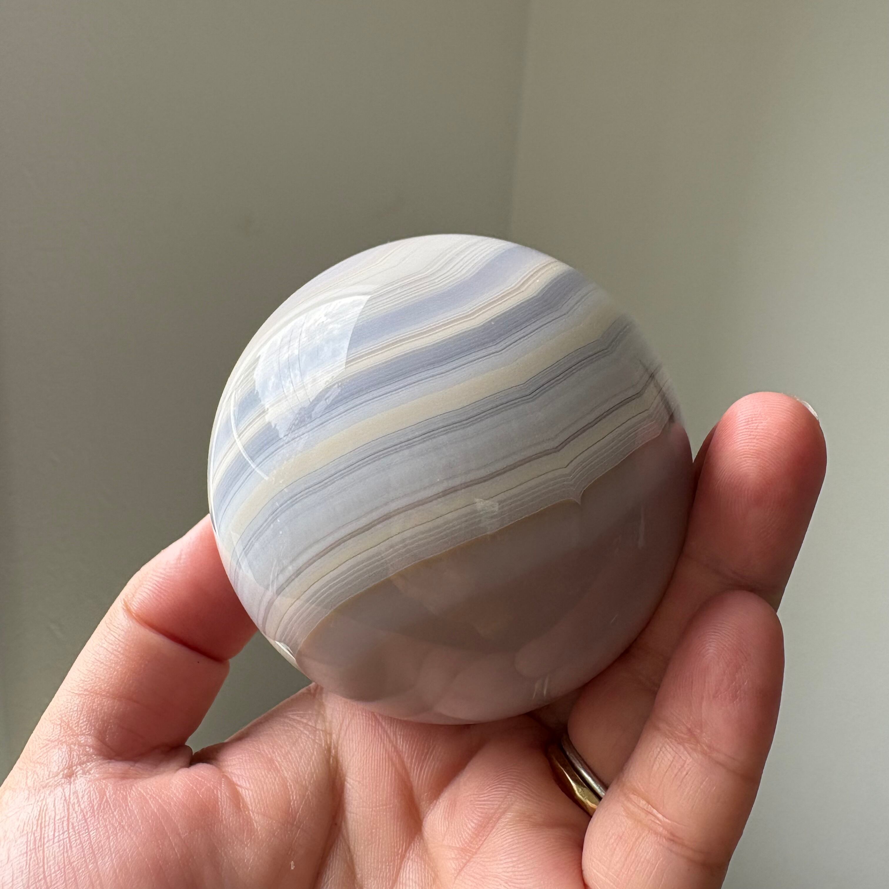 このブルーストライプめのうは、まるで星の軌道を描くような繊細な縞模様を持ち、心に穏やかな波を届けてくれる存在。