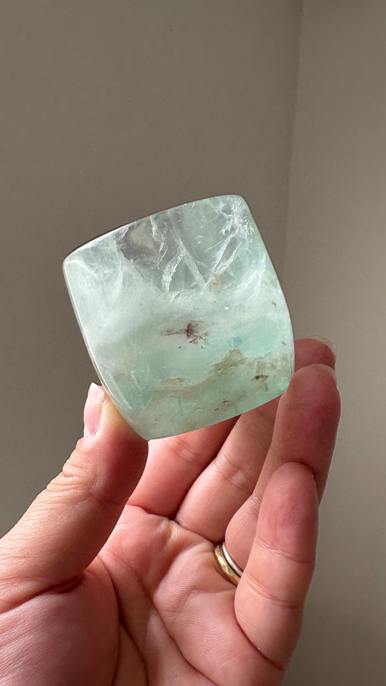 フローライトは「知性と直感をつなぐ石」とも言われ、心の混乱を鎮めて、明晰な思考へと導くサポーター。見ているだけでも静かな安らぎをもたらします。