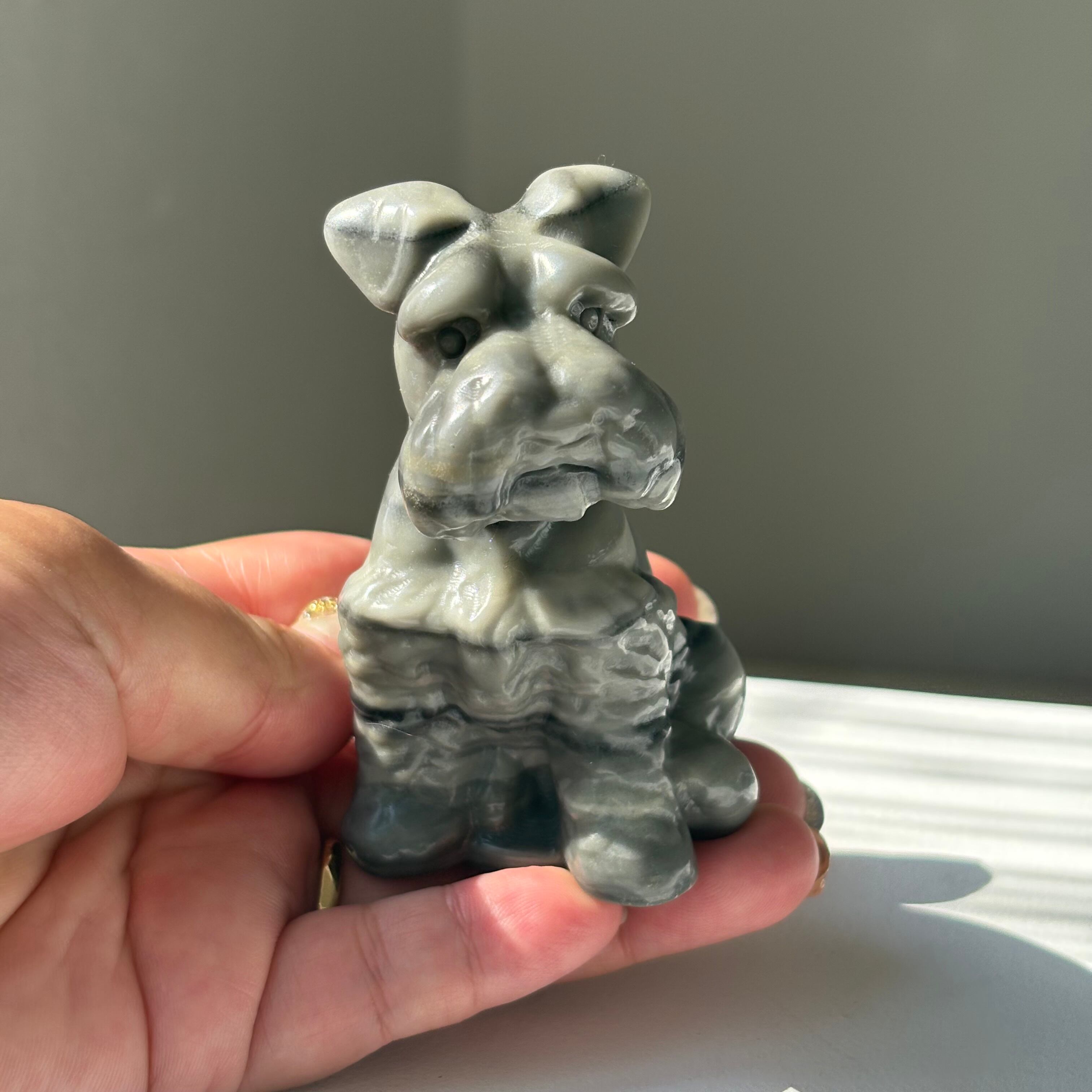 シュナウザーの姿を借りたこの彫刻は、
