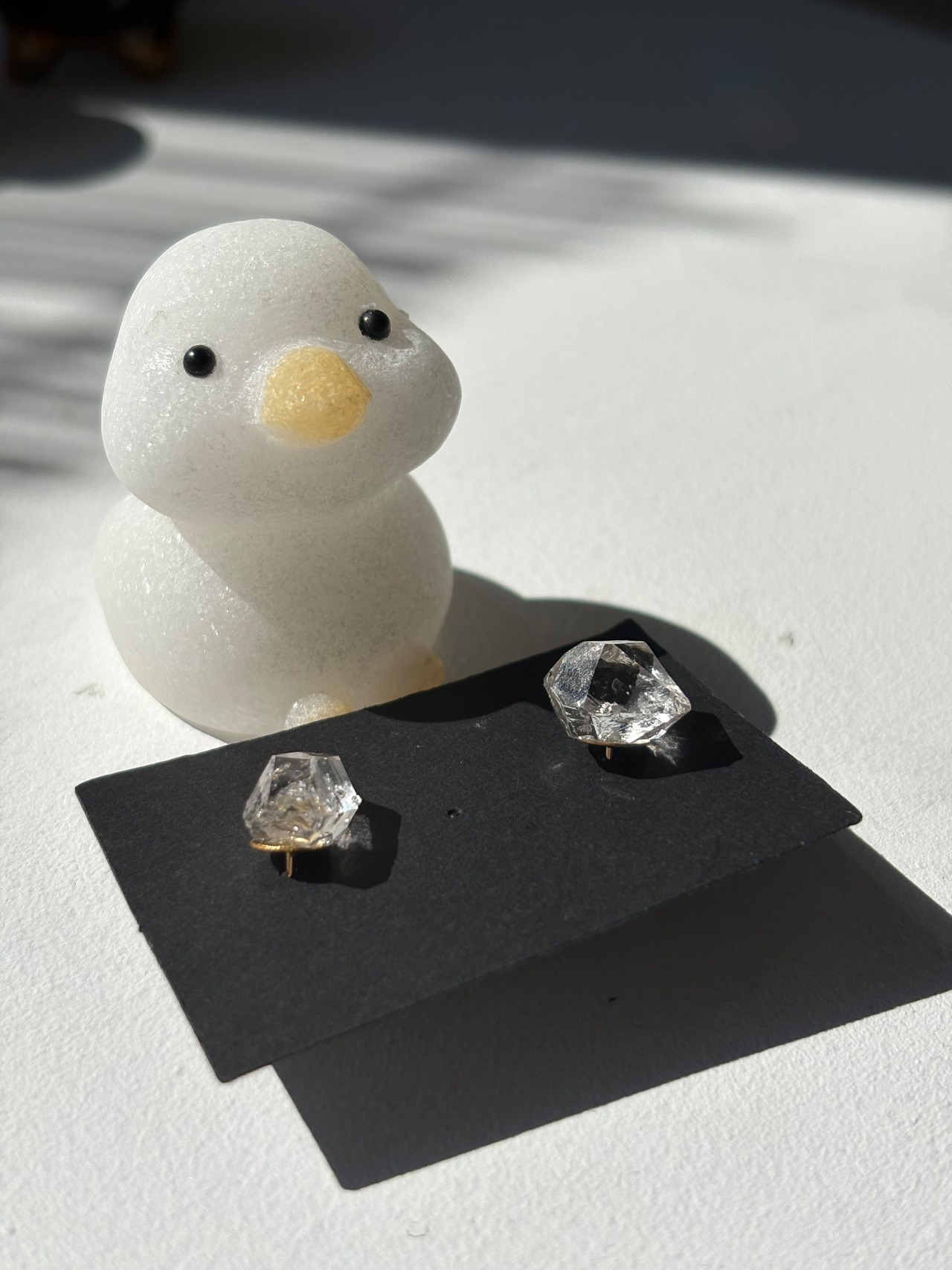 ハーキマーダイヤモンド原石そのままの輝きを活かした、シンプルな片耳ピアスです。