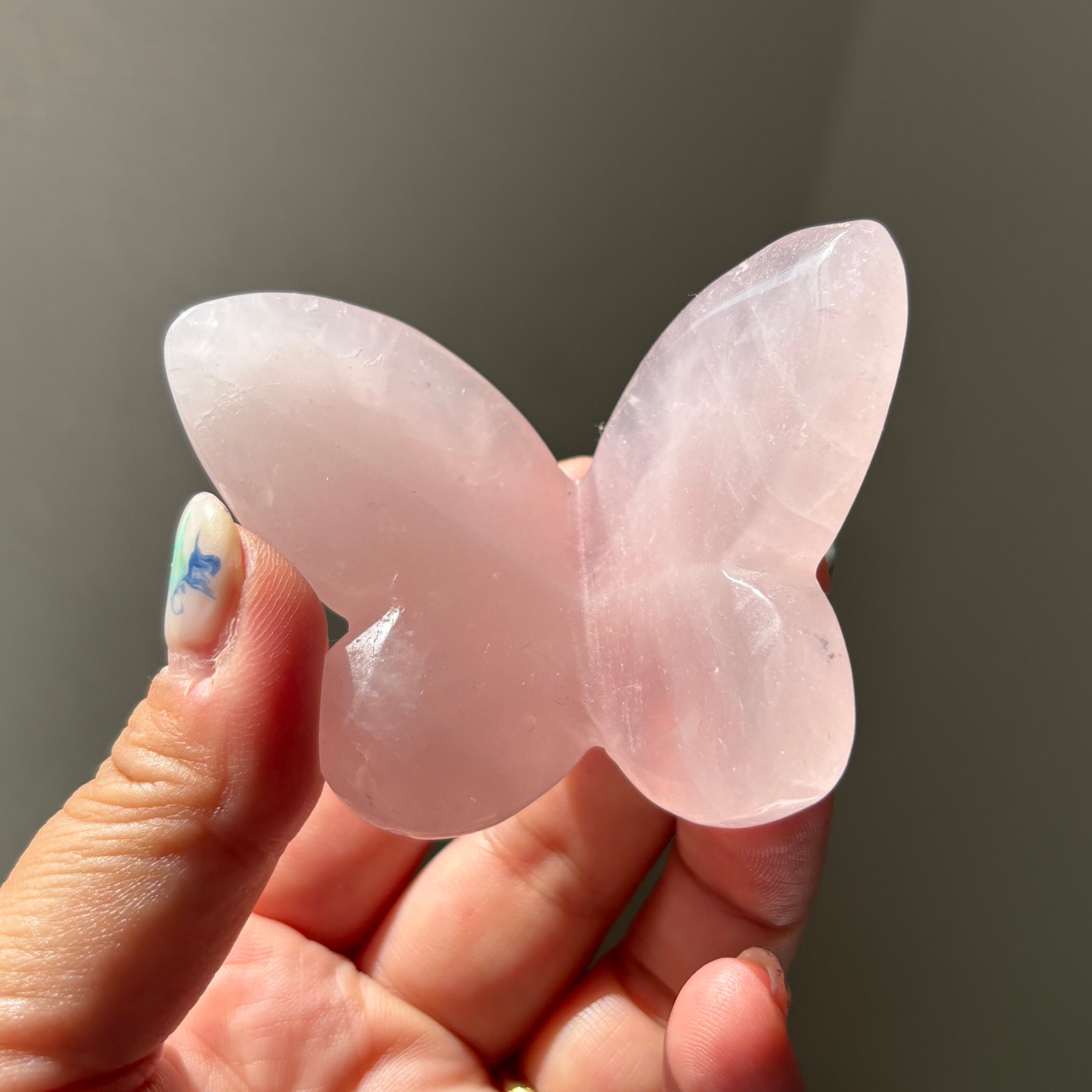 【ランダム発送】ローズクォーツ 蝶 バタフライ 立体