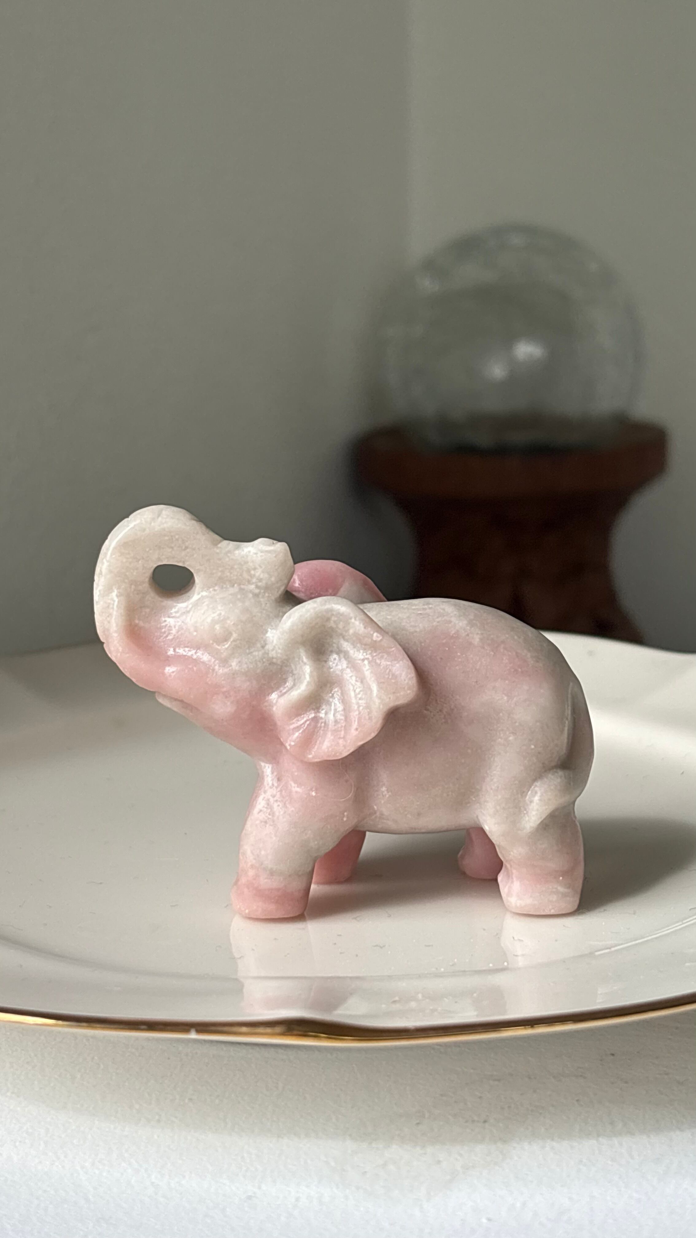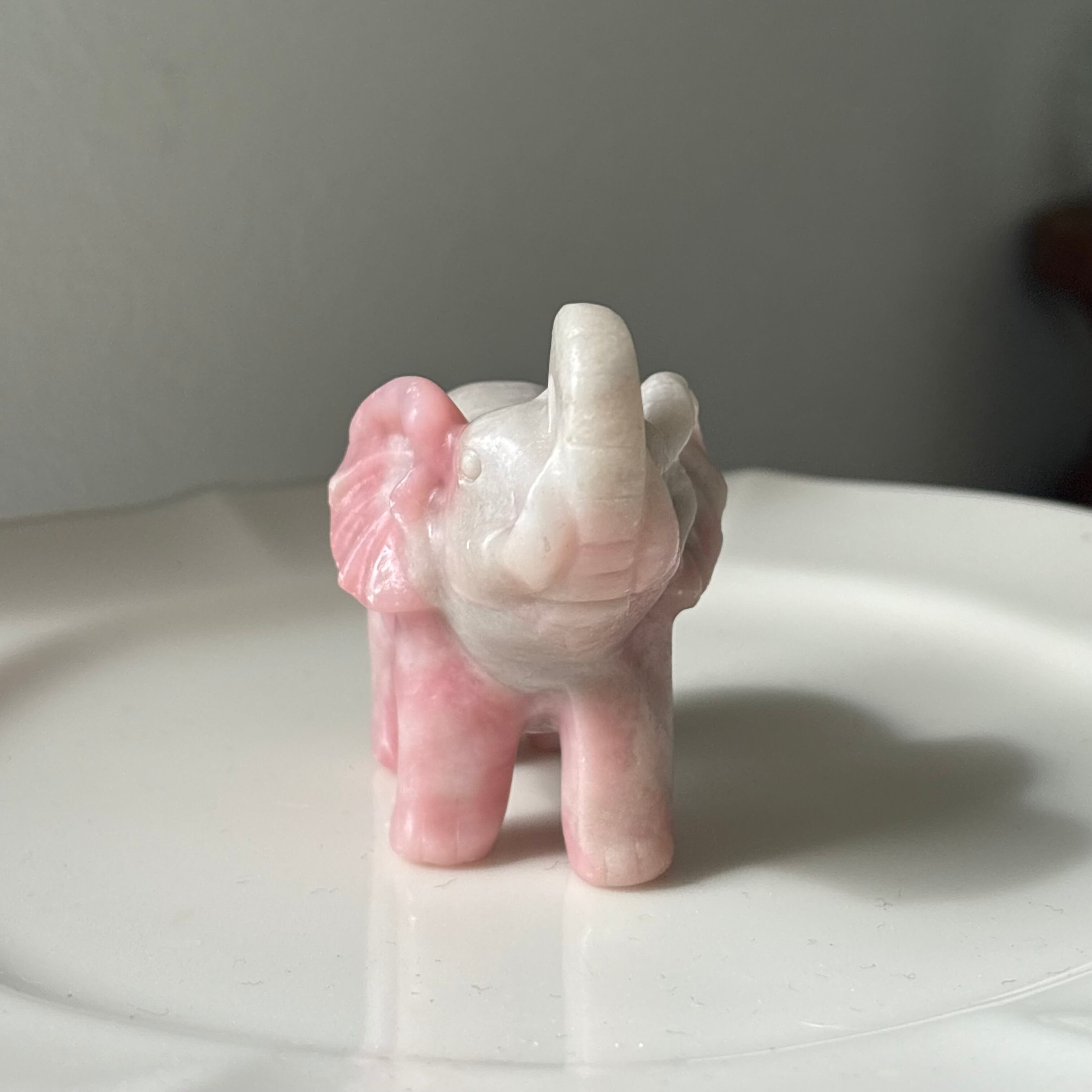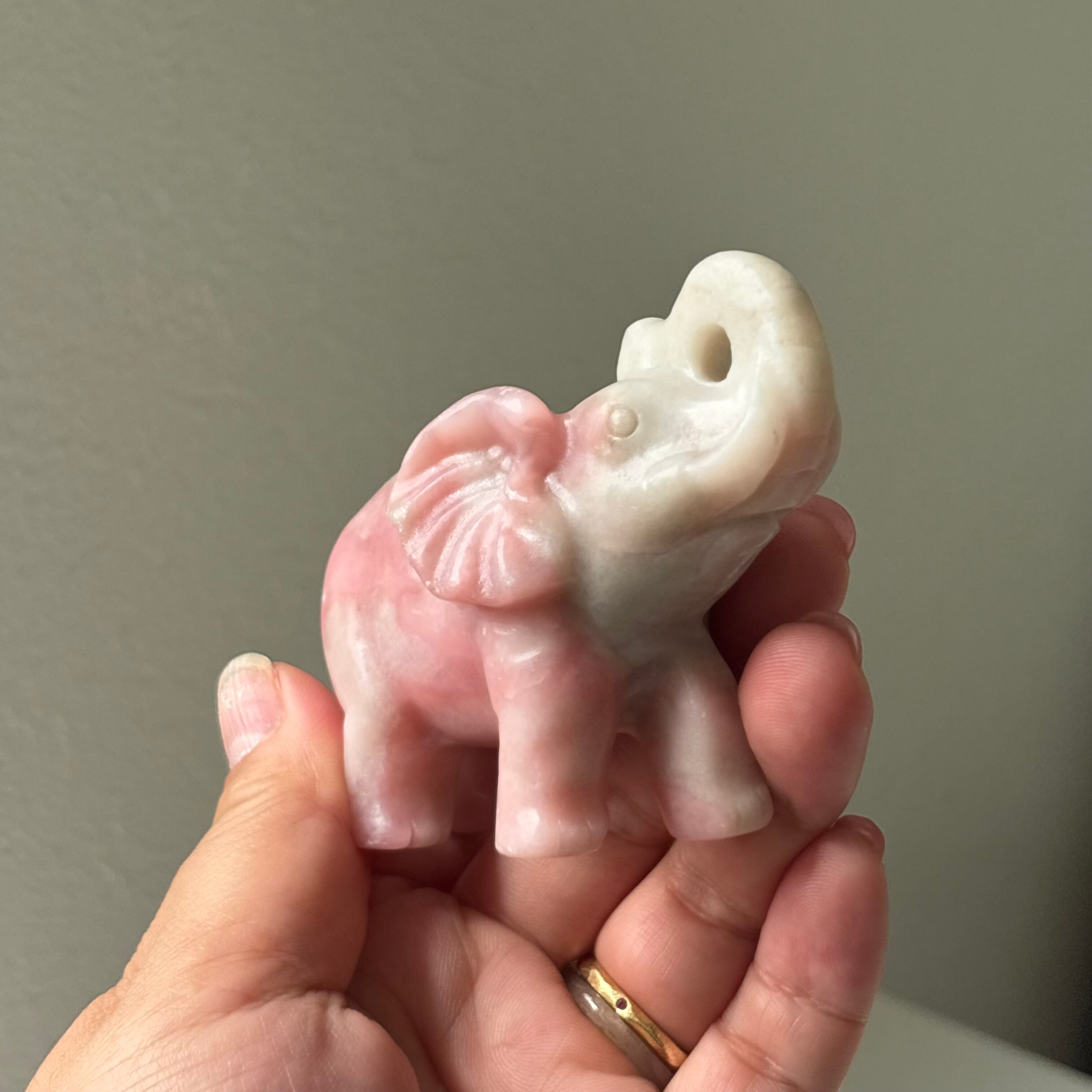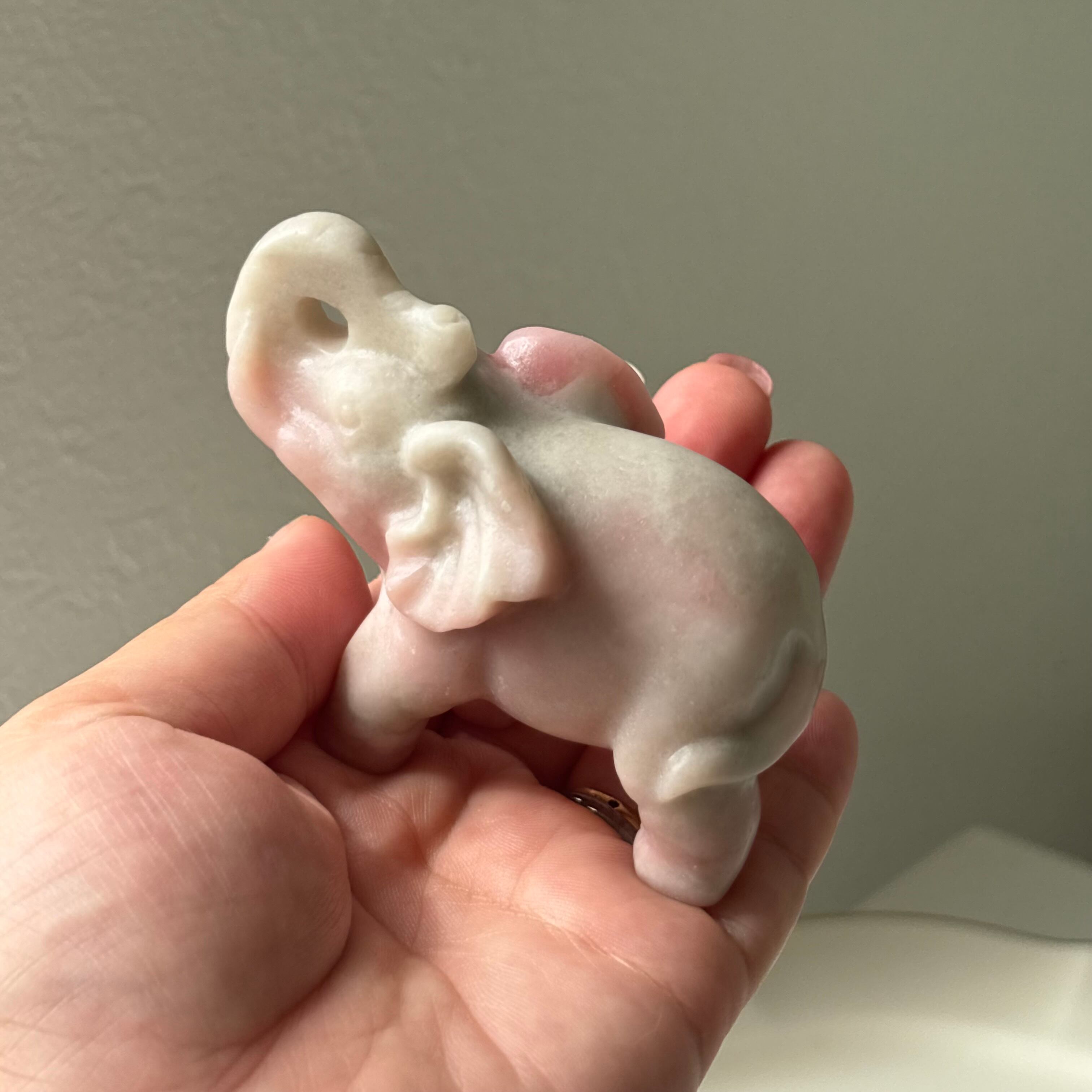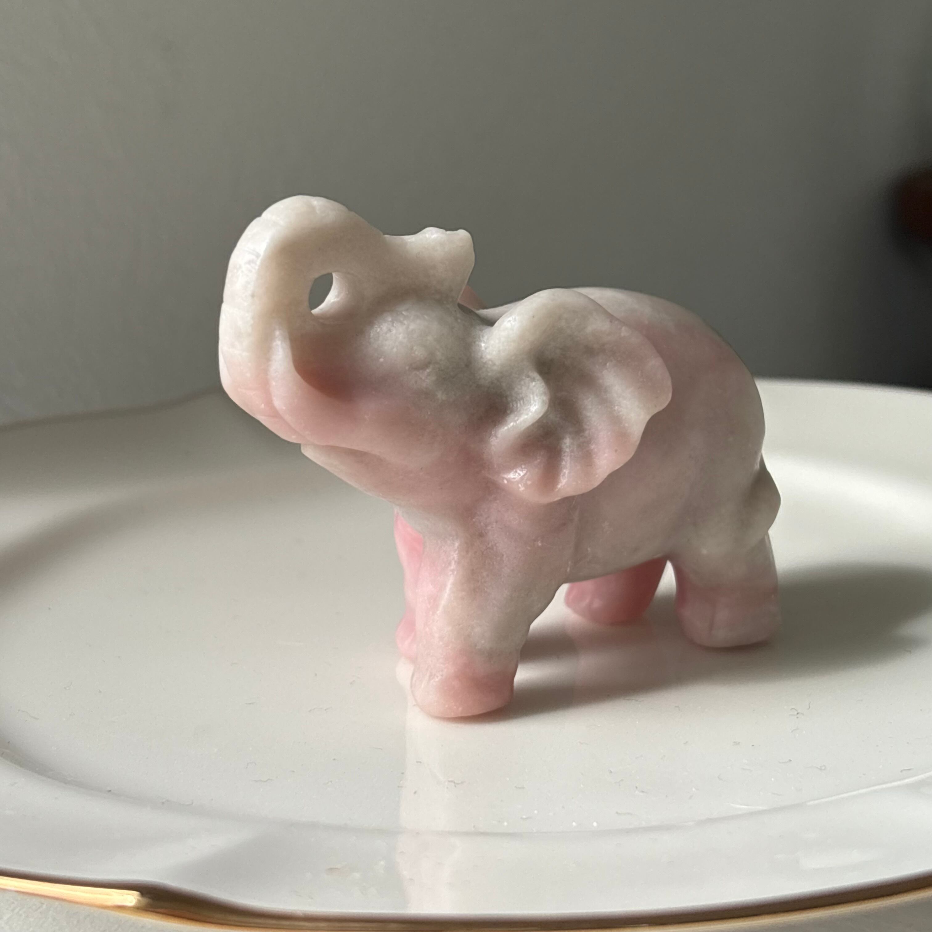 ほんのり桜色を帯びたピンクオパールのゾウは、見ているだけで心がほどける癒しの存在。