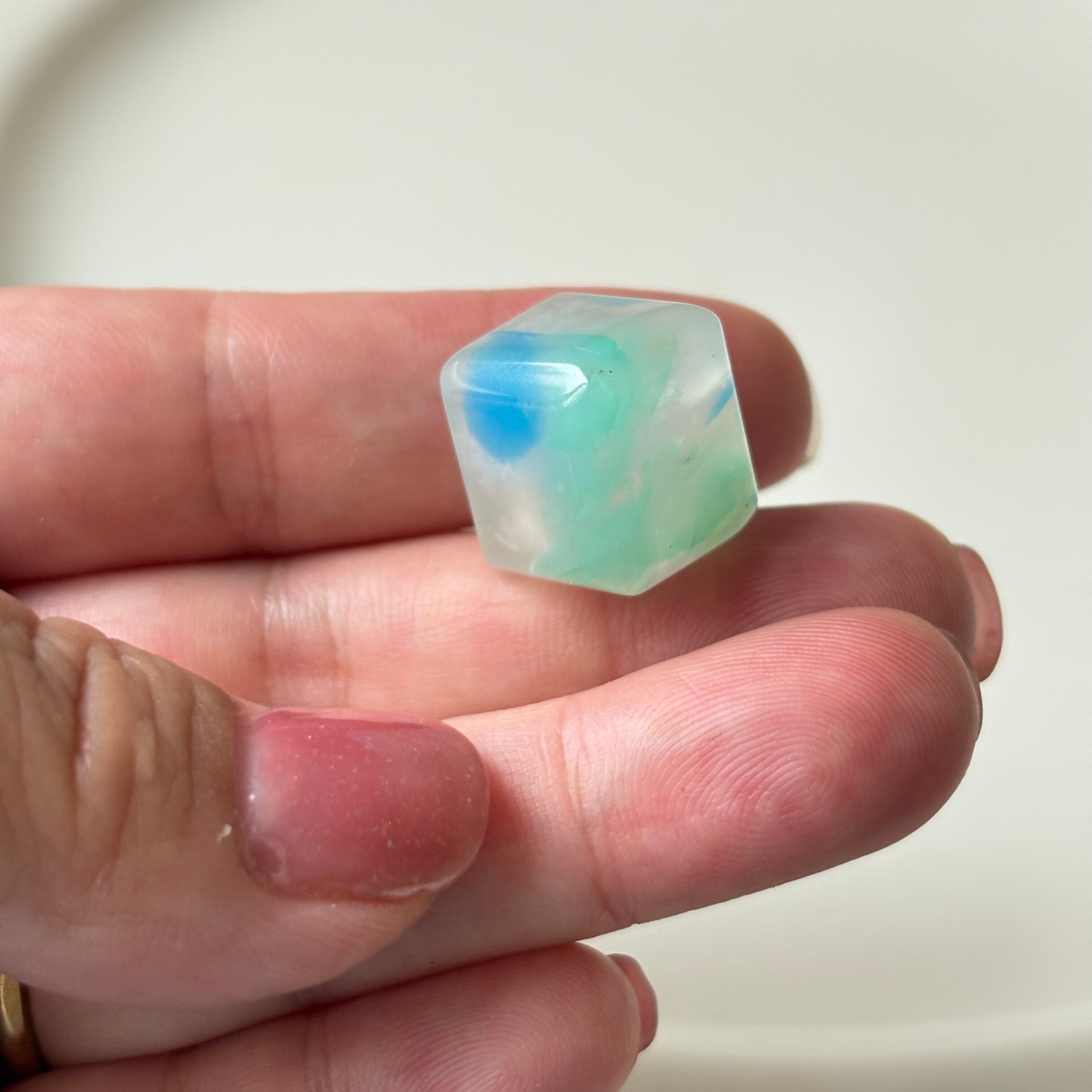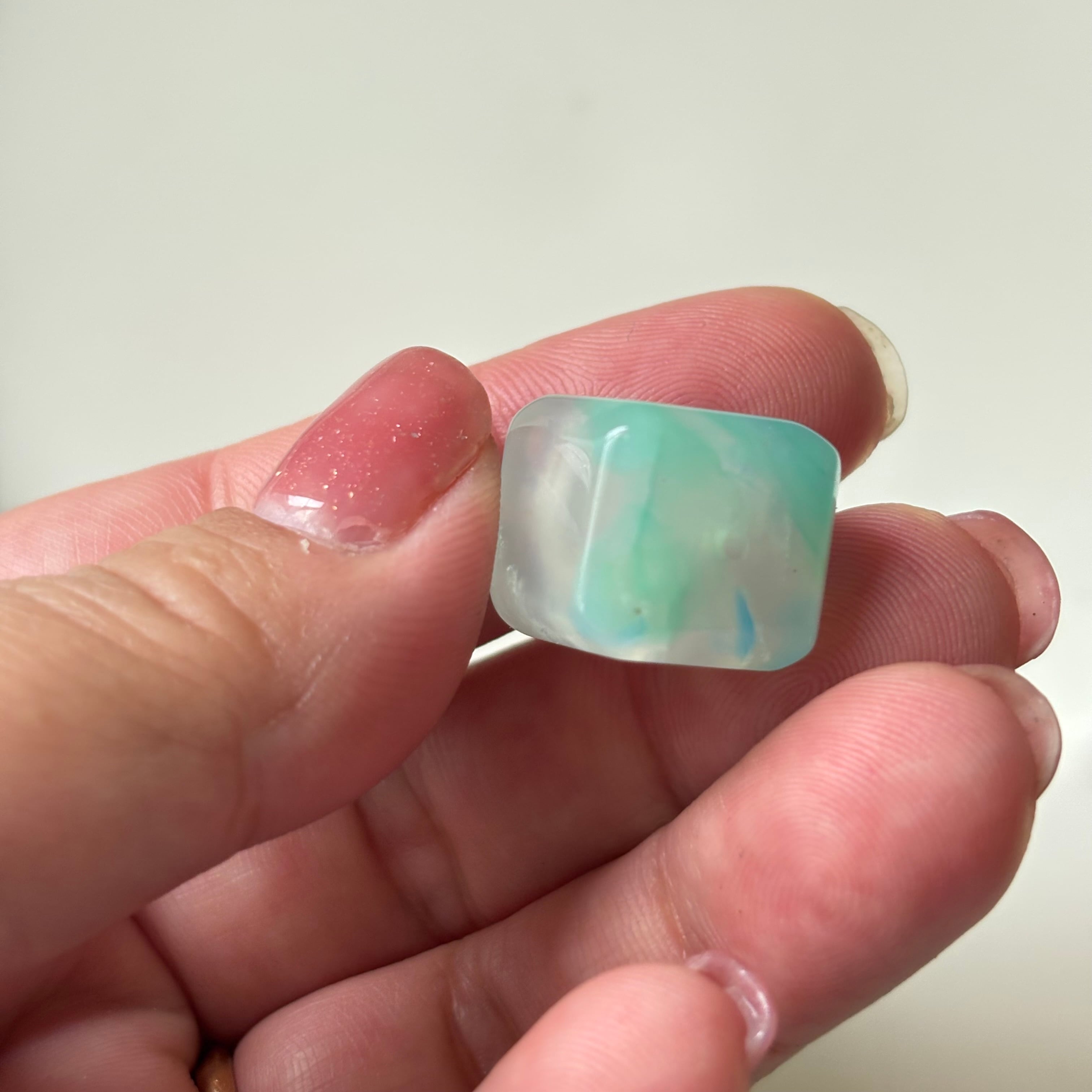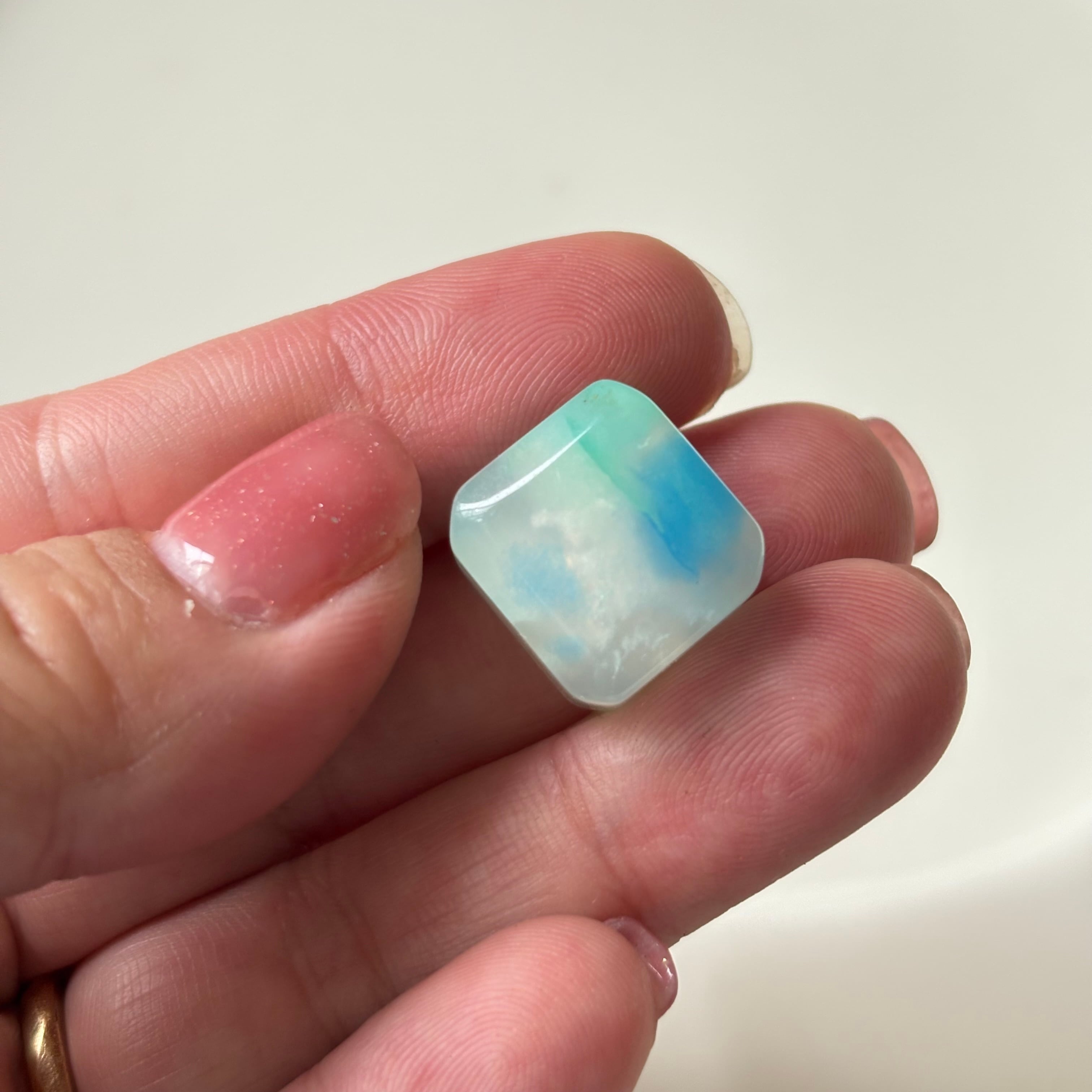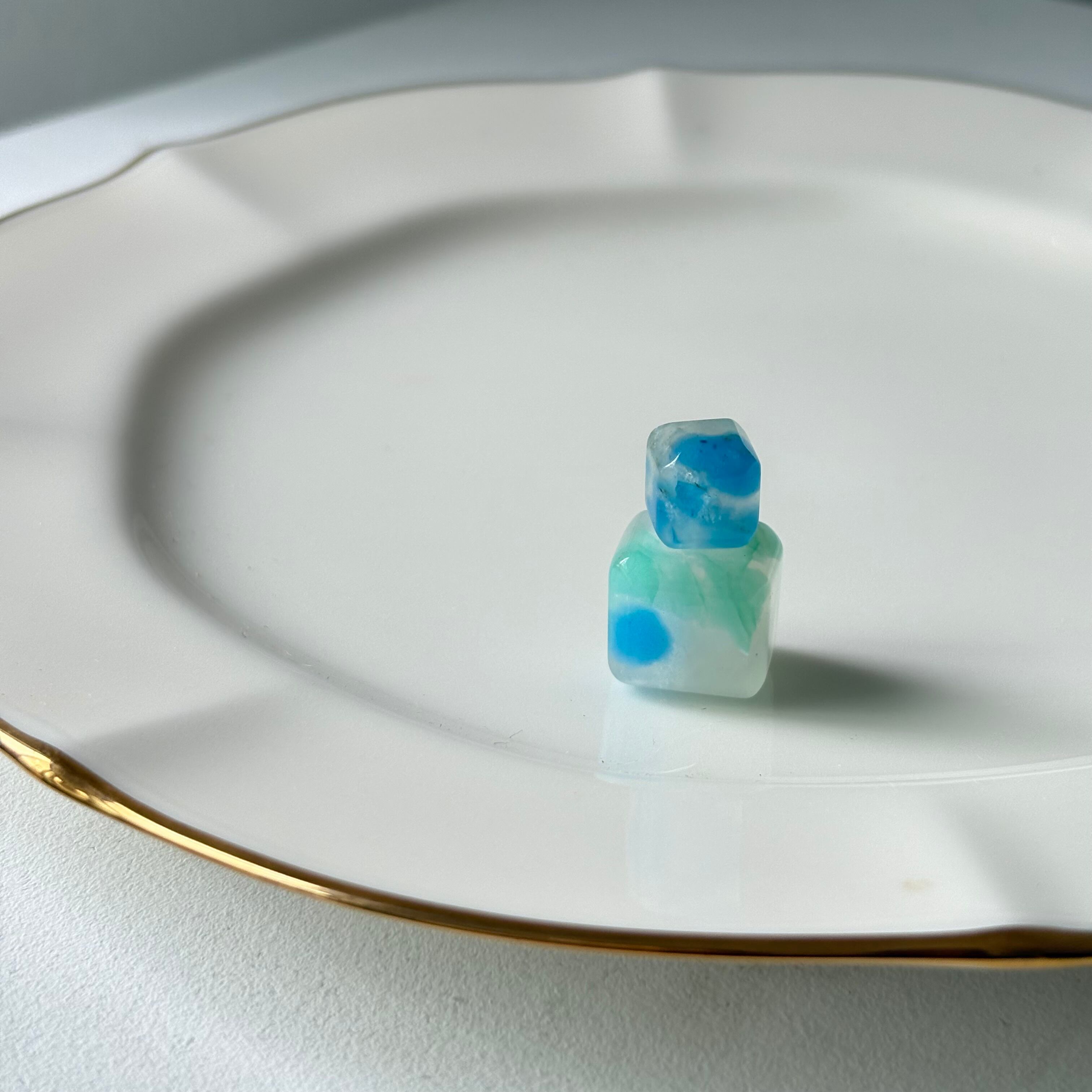 深いブルーと淡いミントグリーンが溶け合う、美しいアズライトジェムシリカ。