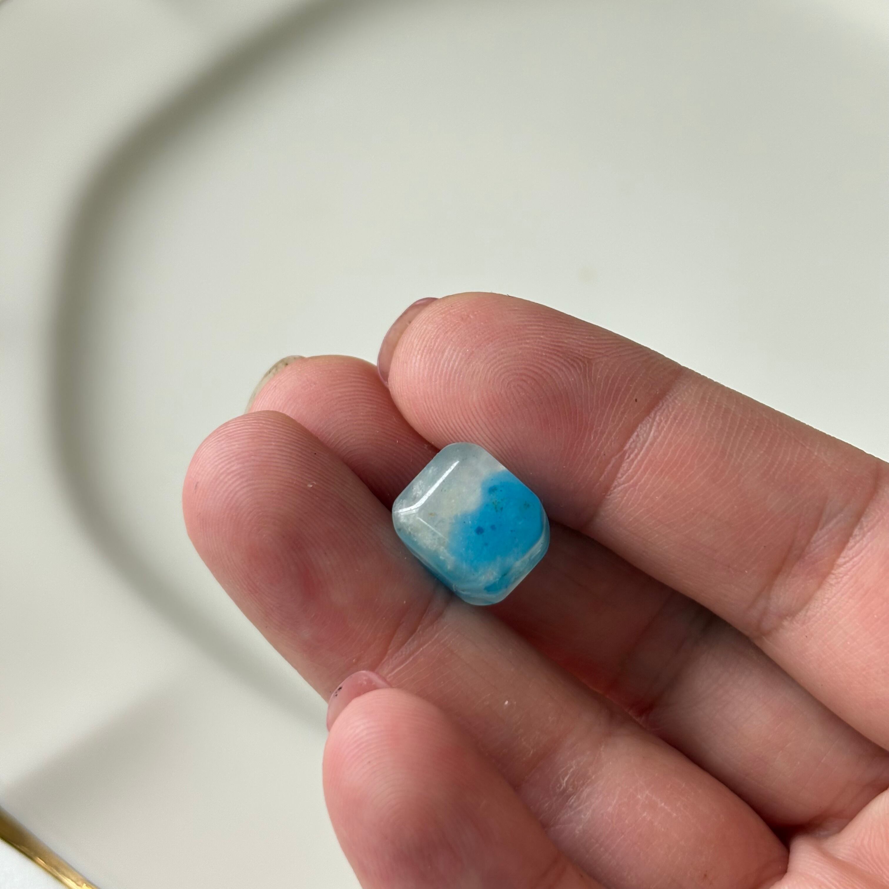 【穴あり】アズライトジェムシリカ キューブ ビーズ