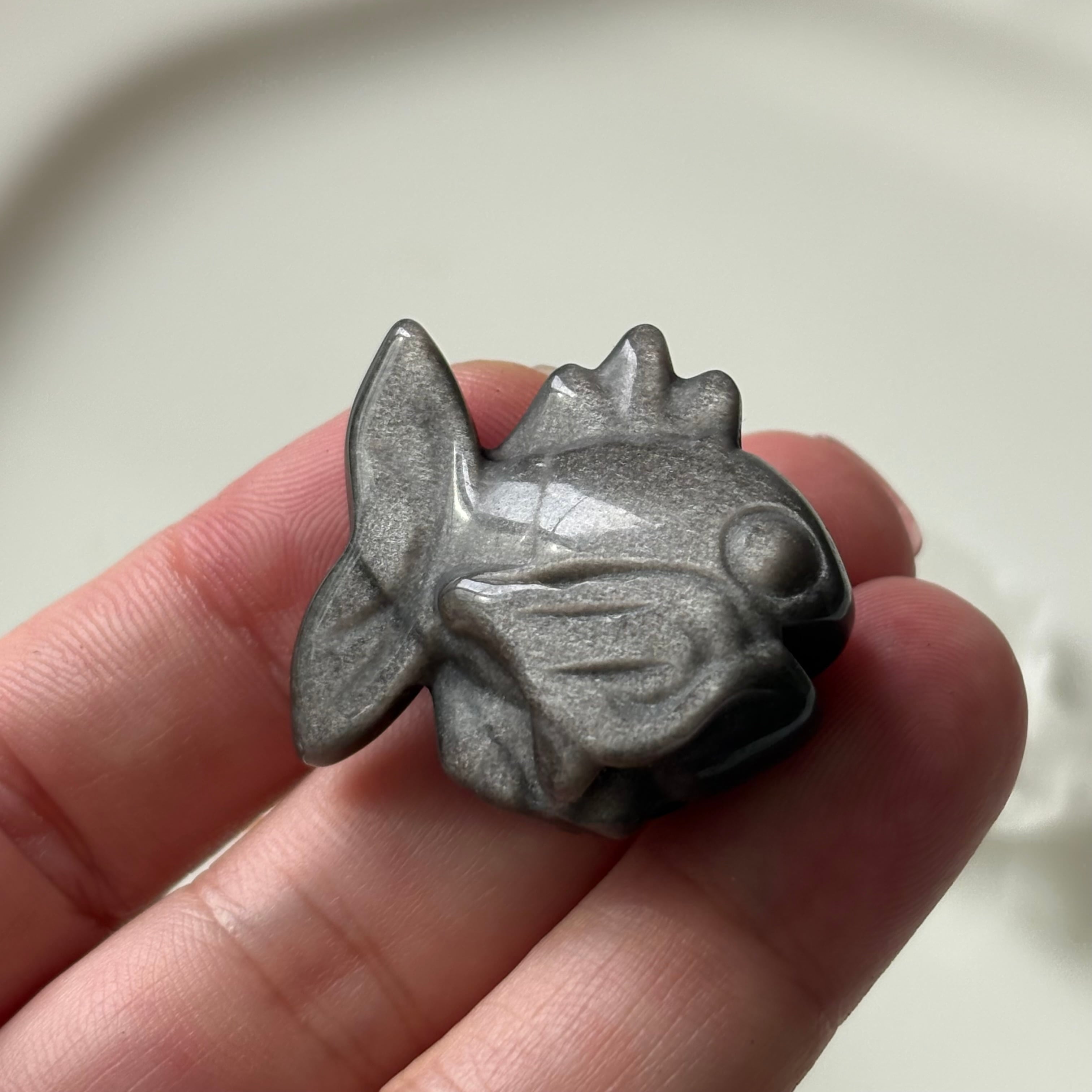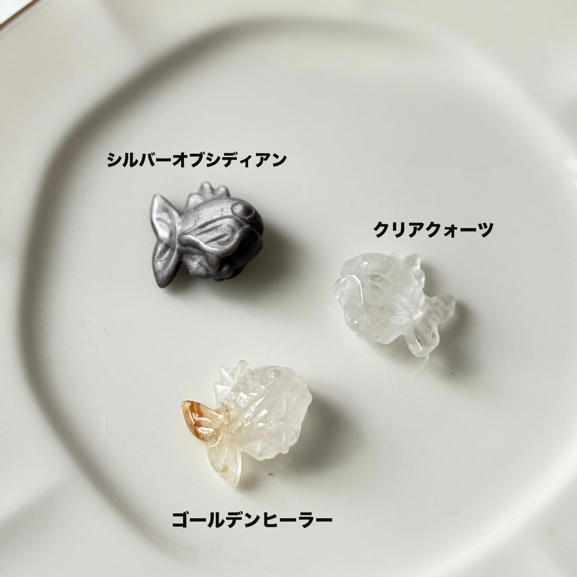 お魚 クリスタルカービング クリアクオーツ シルバーオブシディアン ゴールデンヒーラー