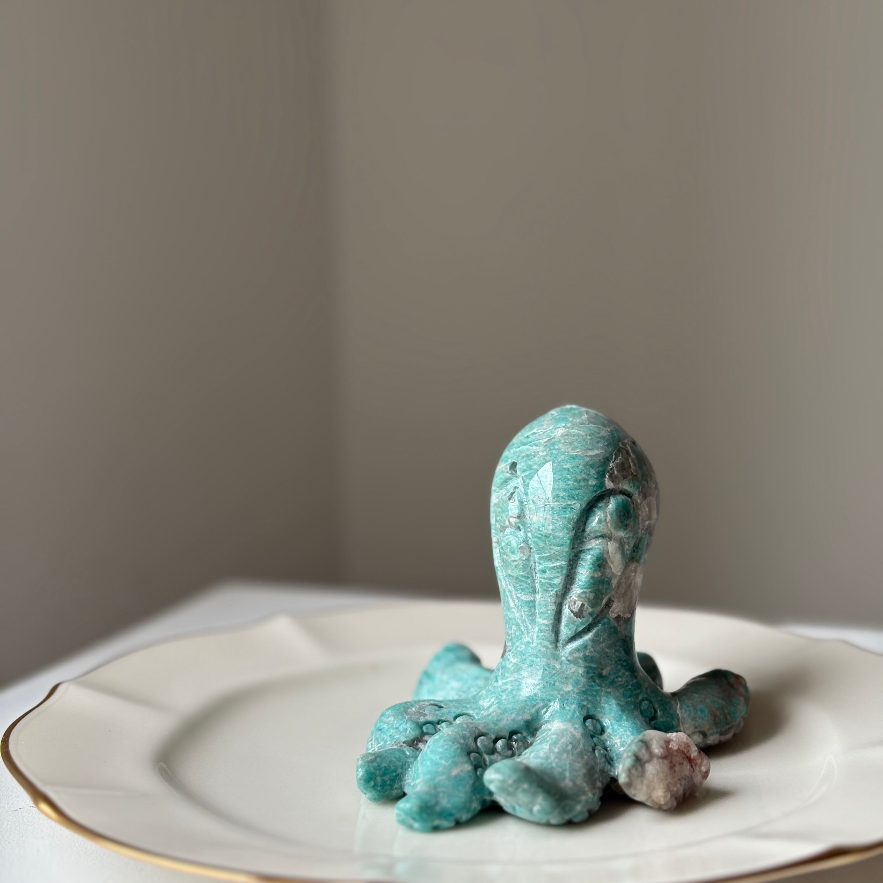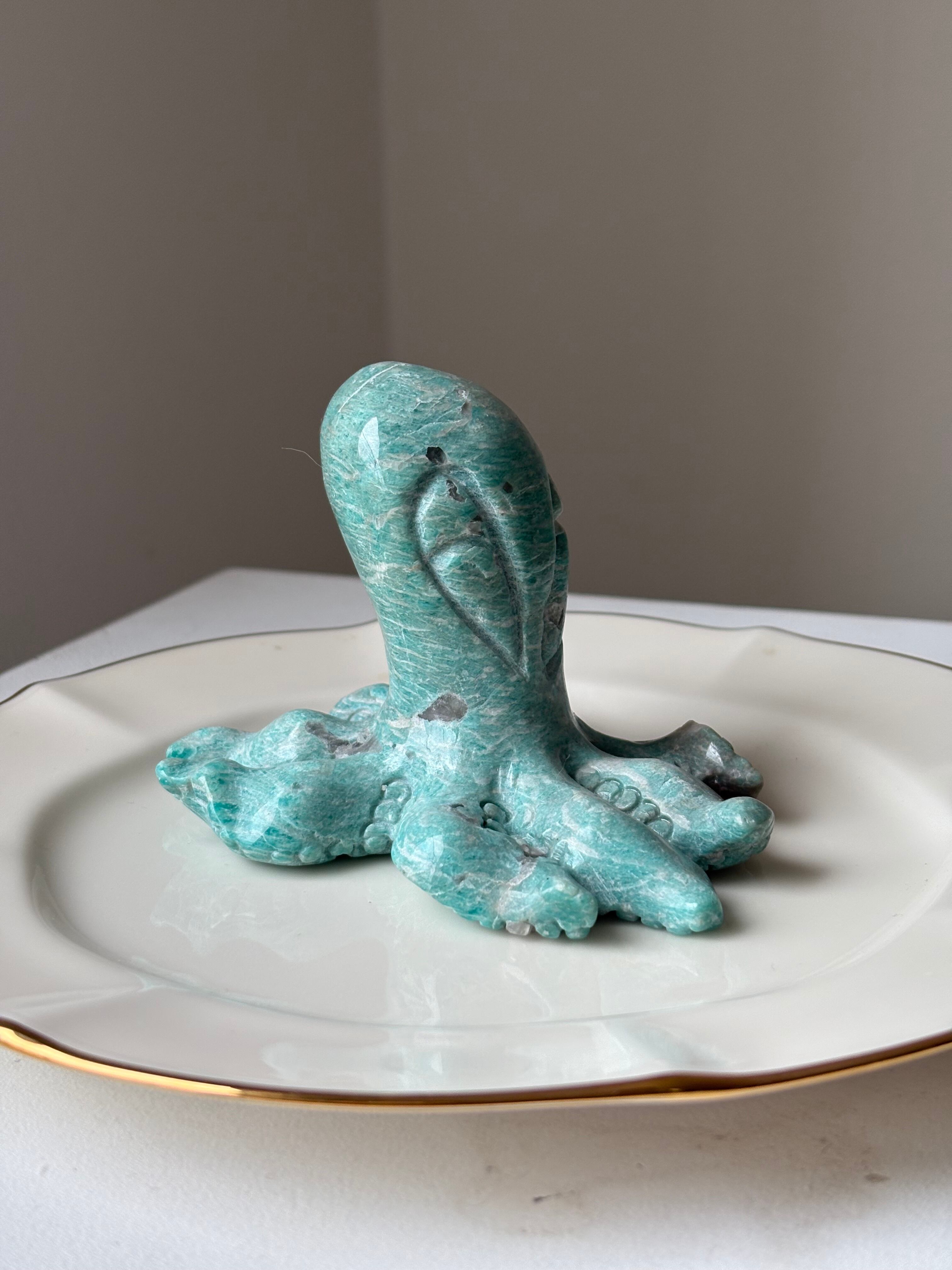 アマゾナイト × スモーキークォーツ タコ カービング アマゾナイト タコさん カービング