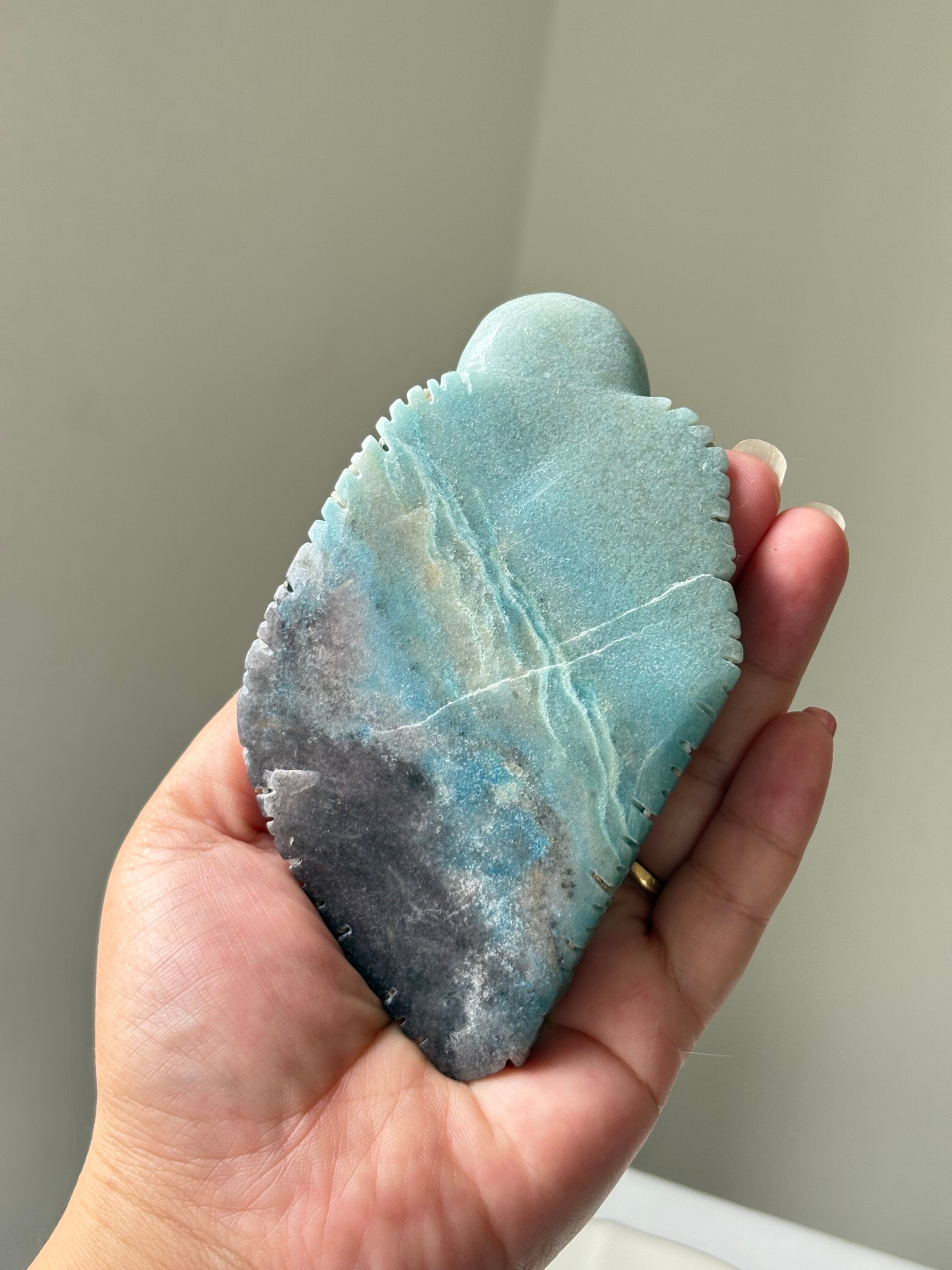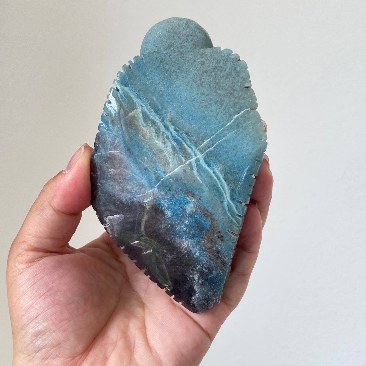 ブラジル産のトロレアイトインクオーツという石を彫刻して作ったヒトデです。