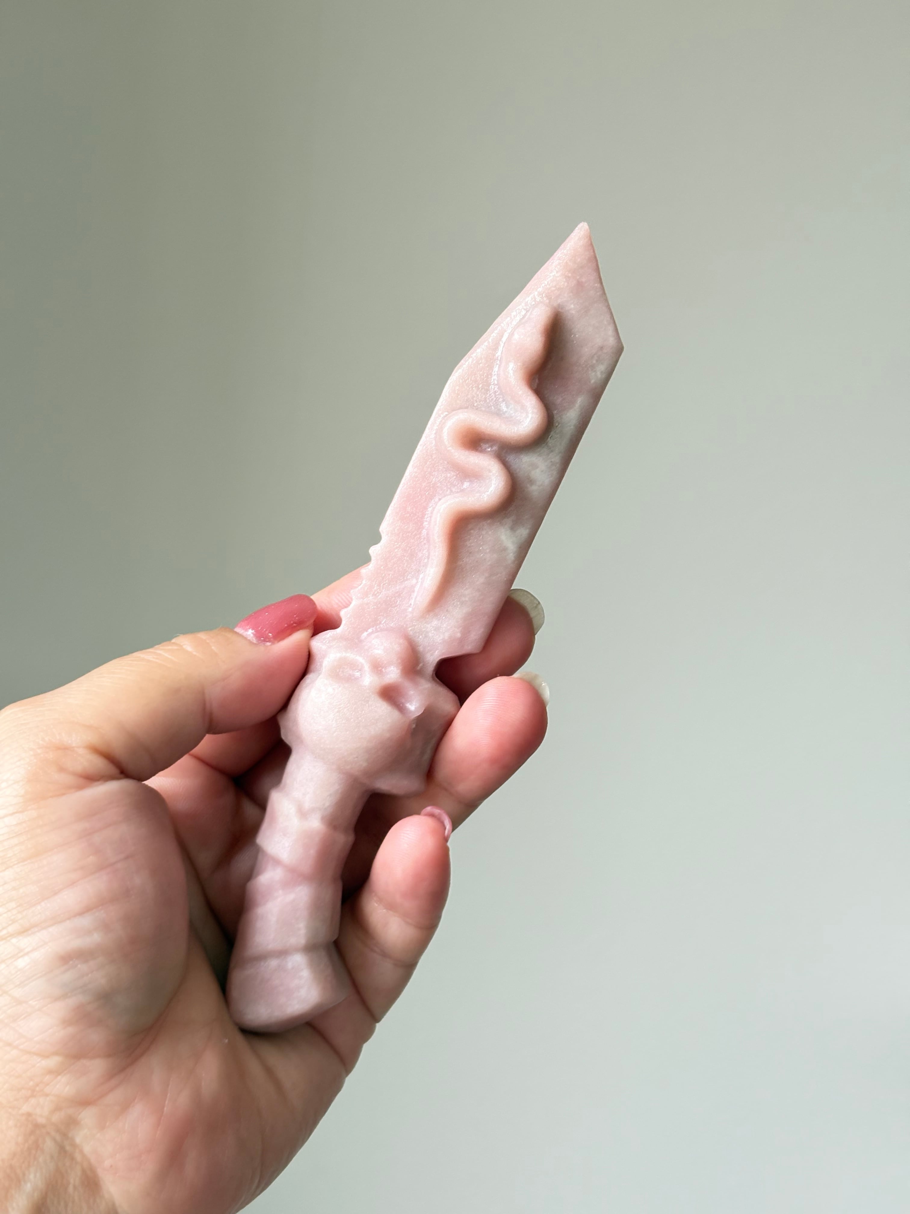 優しさの波動を持つピンクオパールで彫られた、儀式用の特別なナイフ。