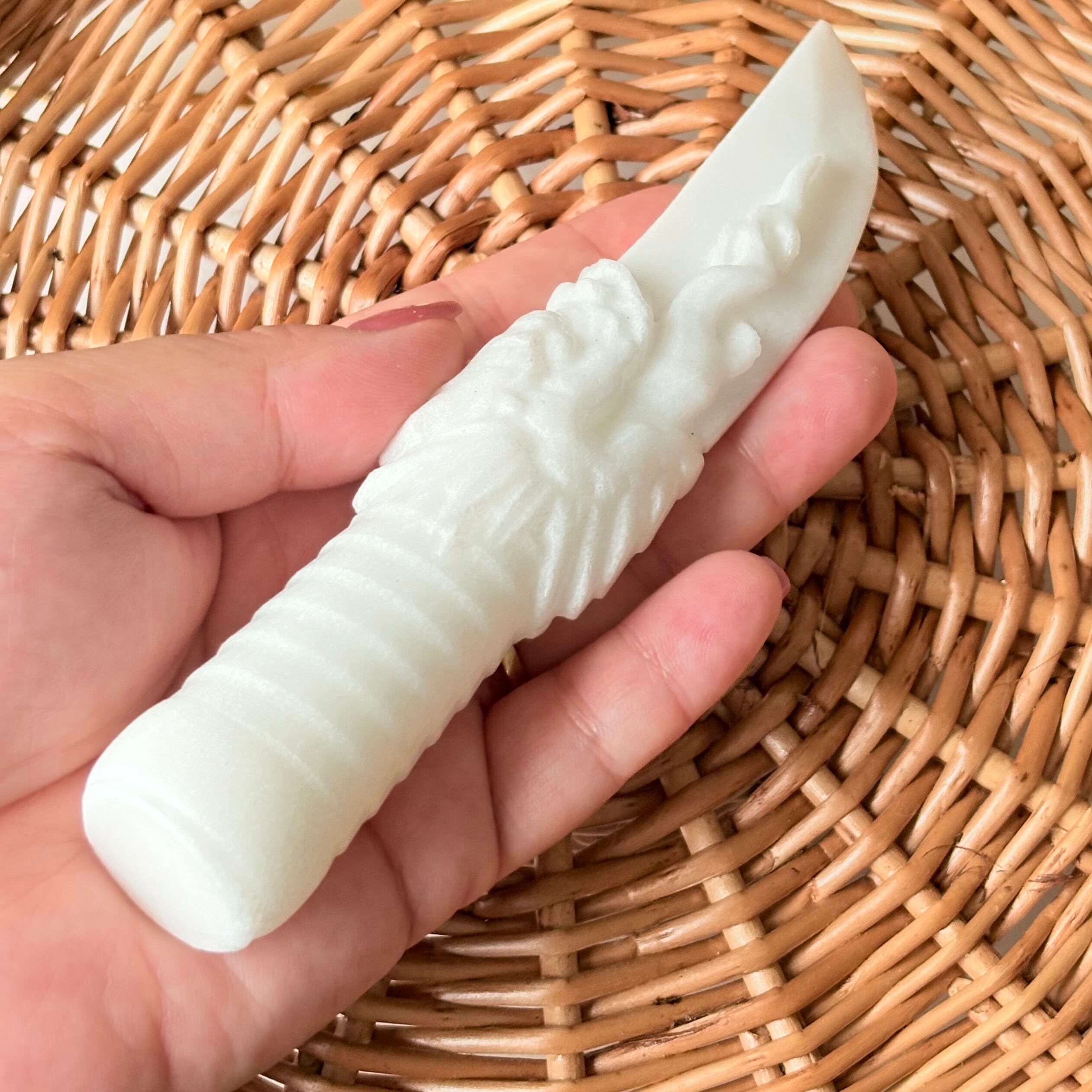 ホワイトアラバスター ナイフ カービング ドラゴン 天然石