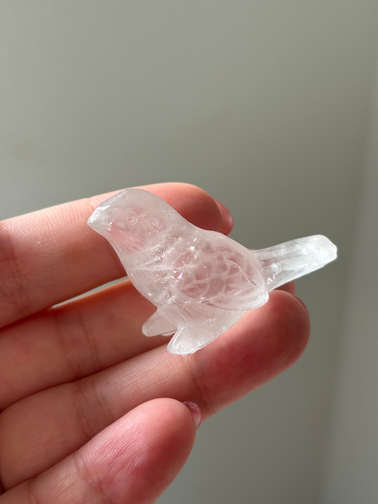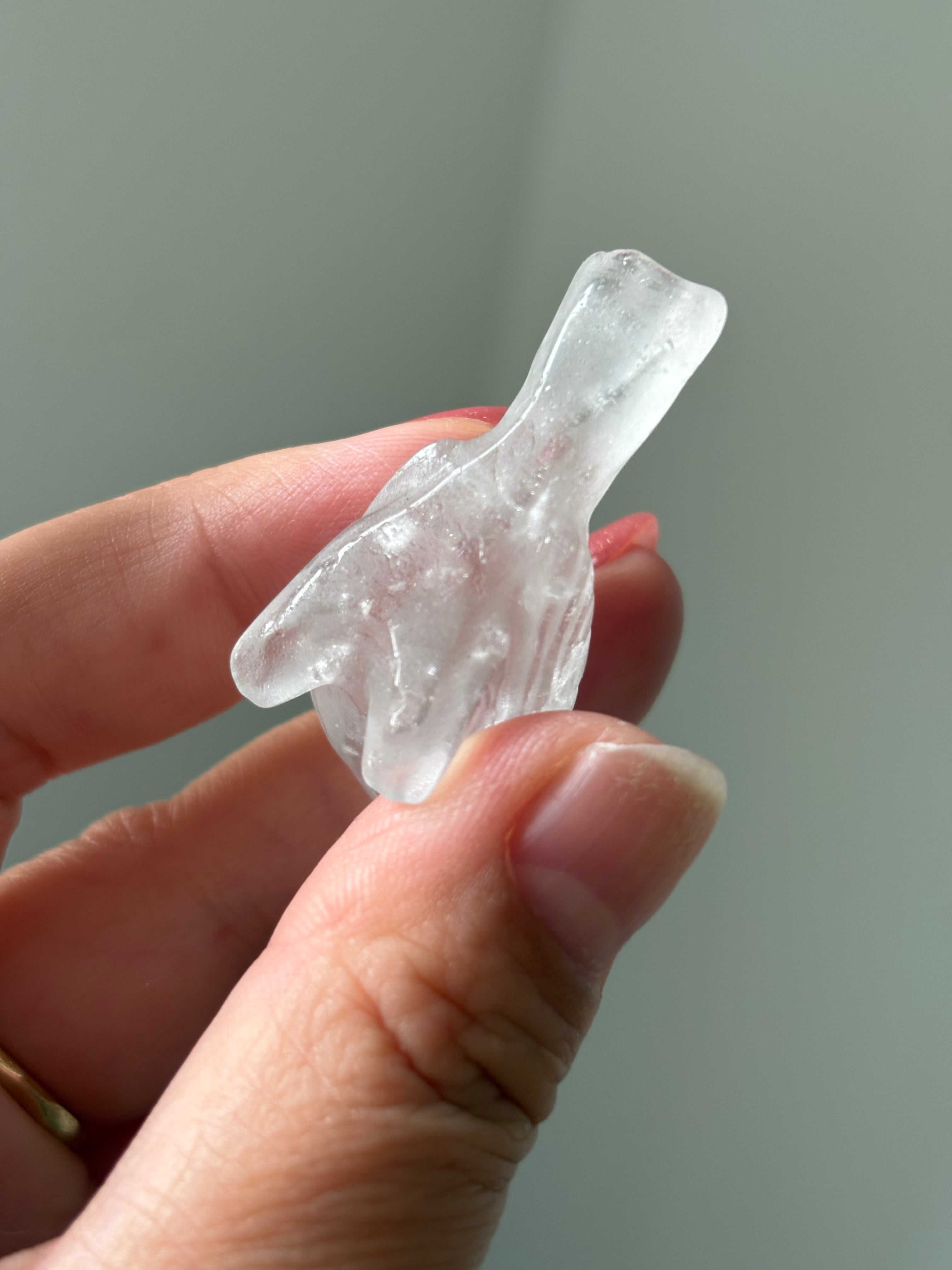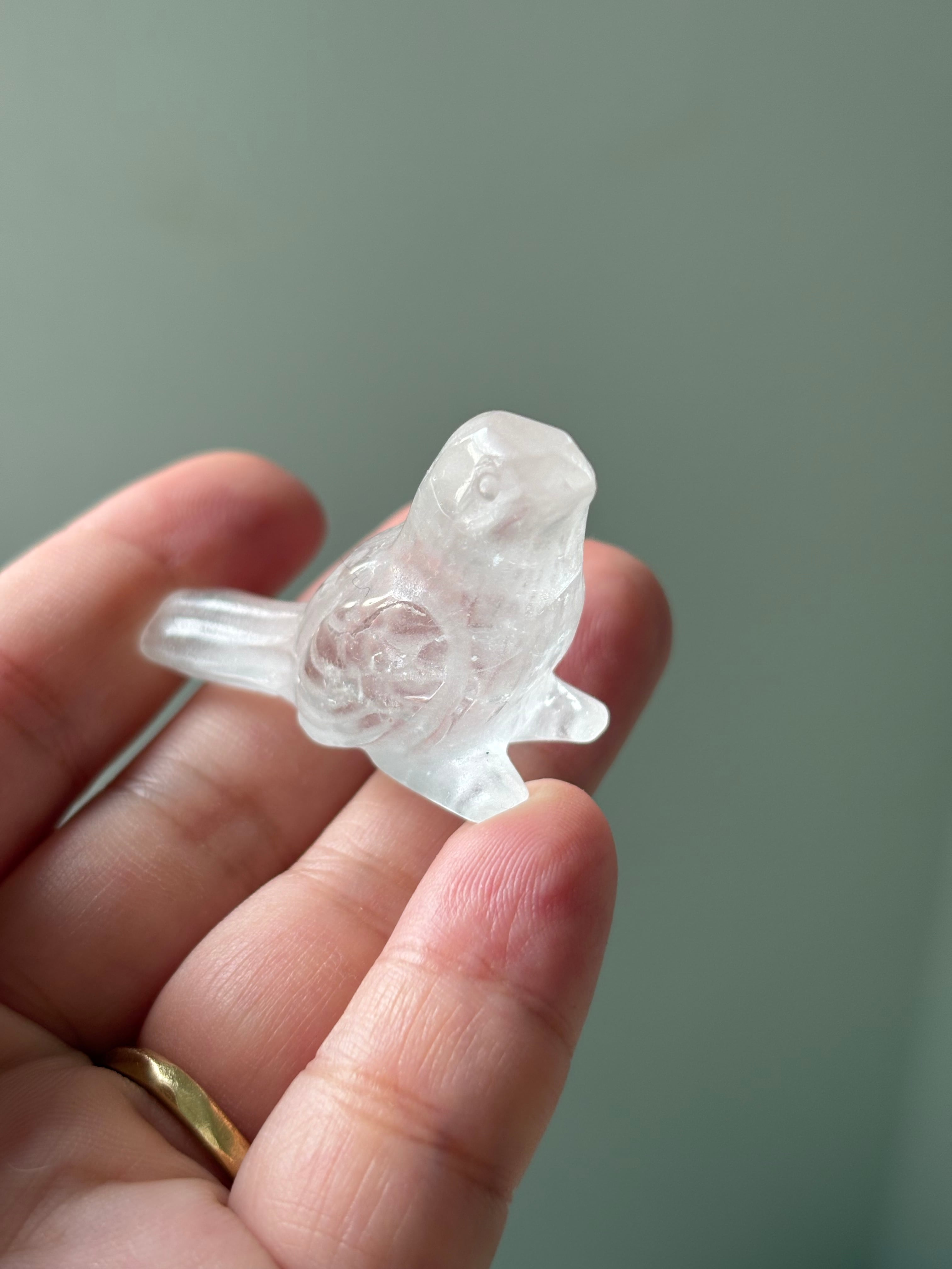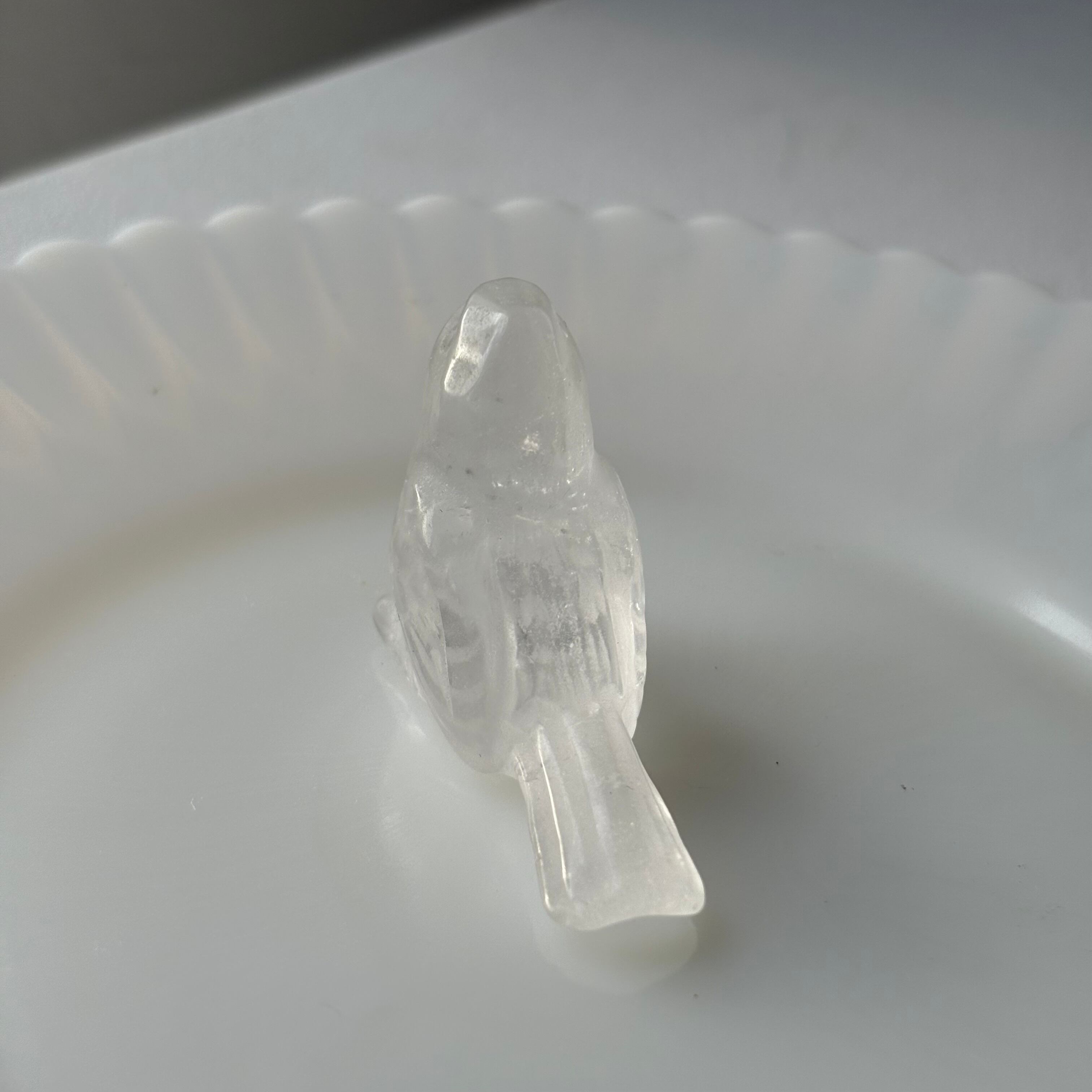 空気のように軽やかな佇まいの、クリアクォーツで彫られた小さな鳥のカービングです。