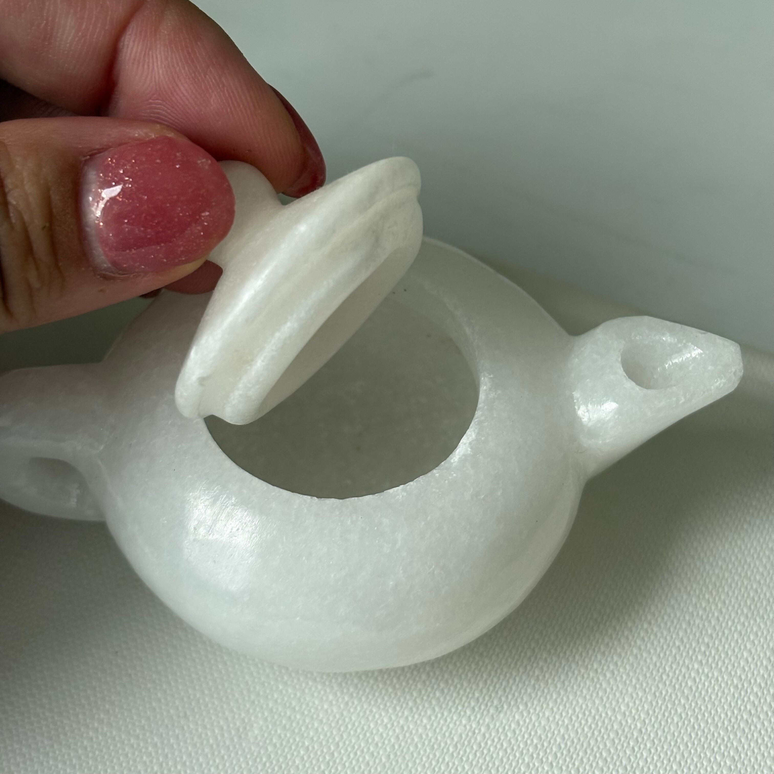 ホワイトジェイド ティーポット カービング ホワイトアラバスター