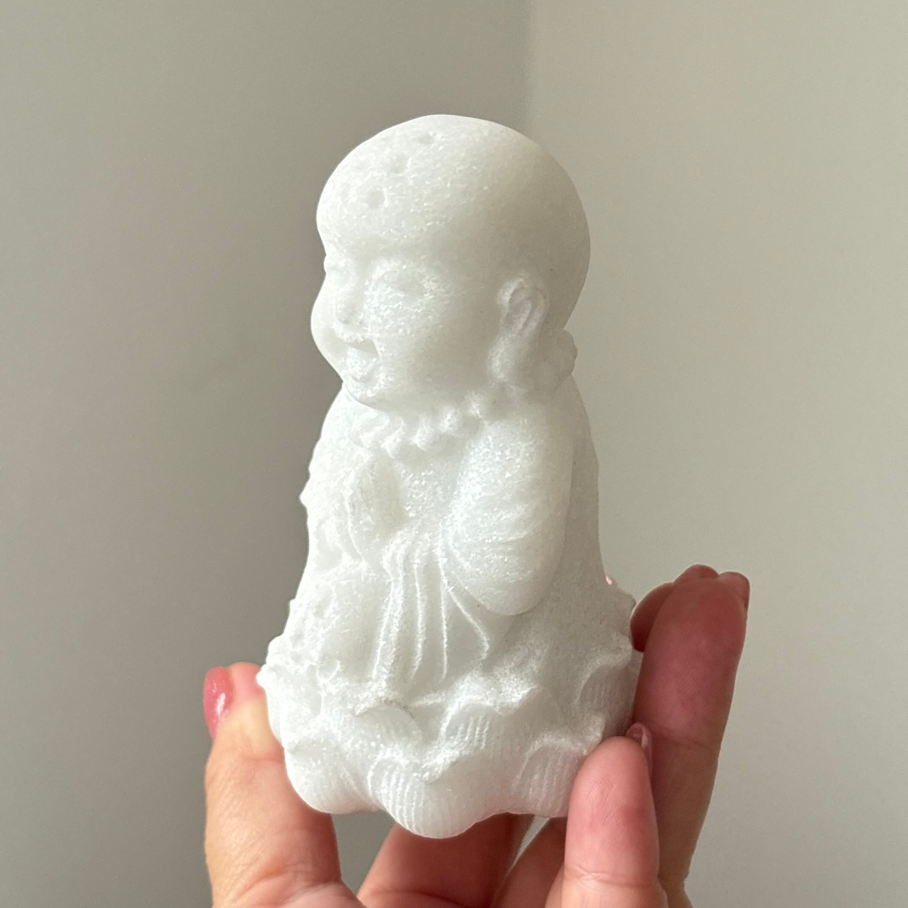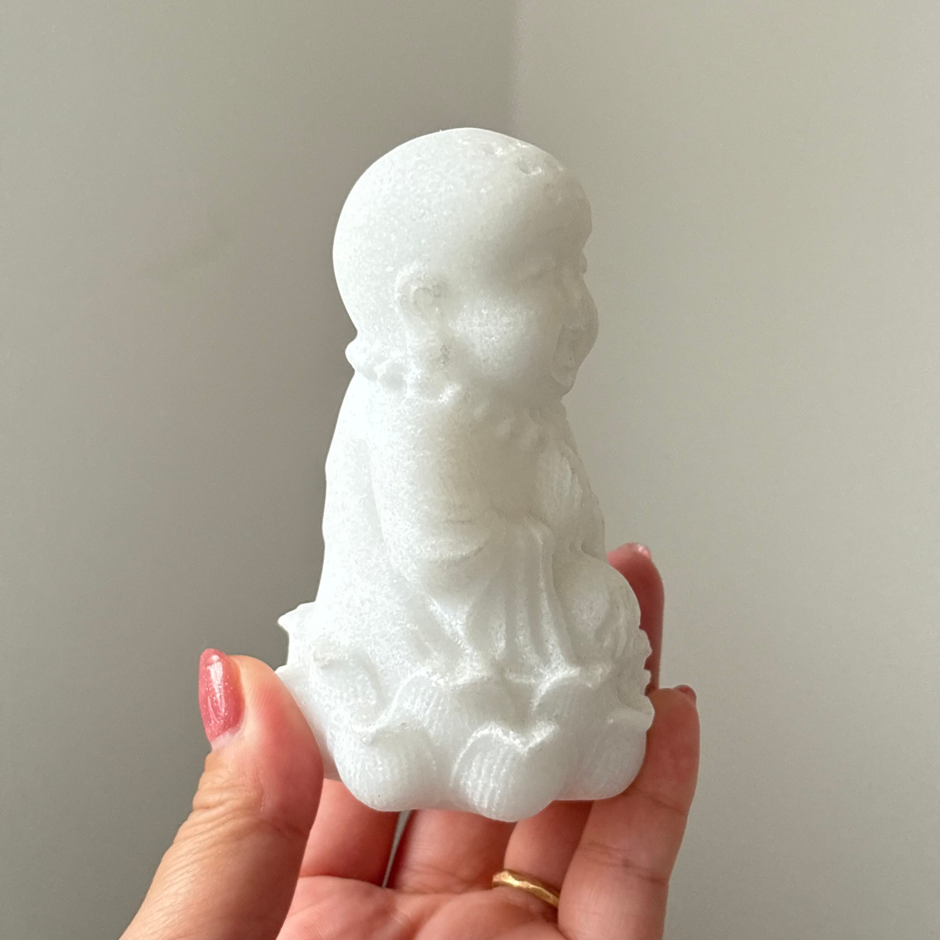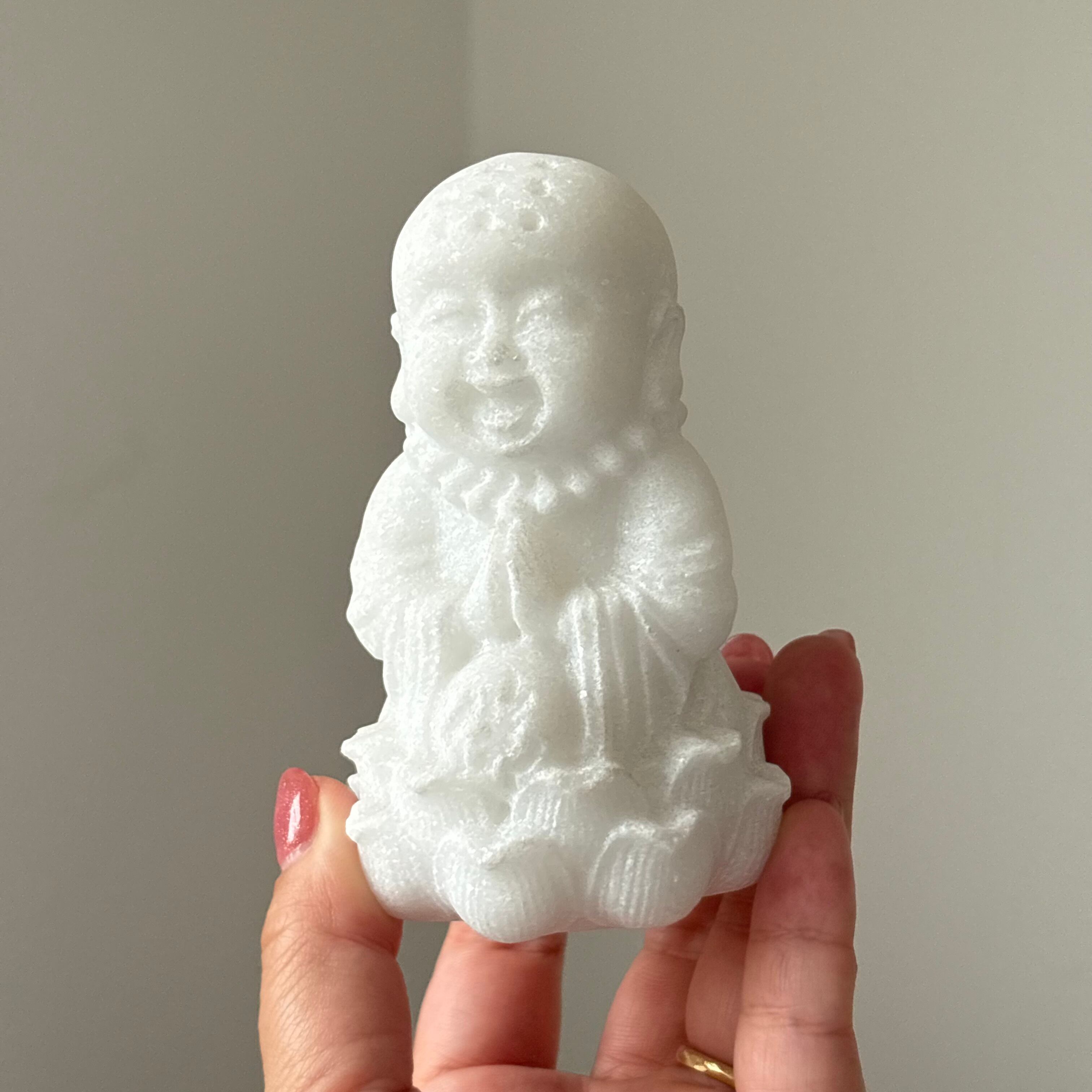蓮の上に座る姿には「浄化」「安心」「癒し」のエネルギーが宿るともいわれ、空間の守り石としてもおすすめです。