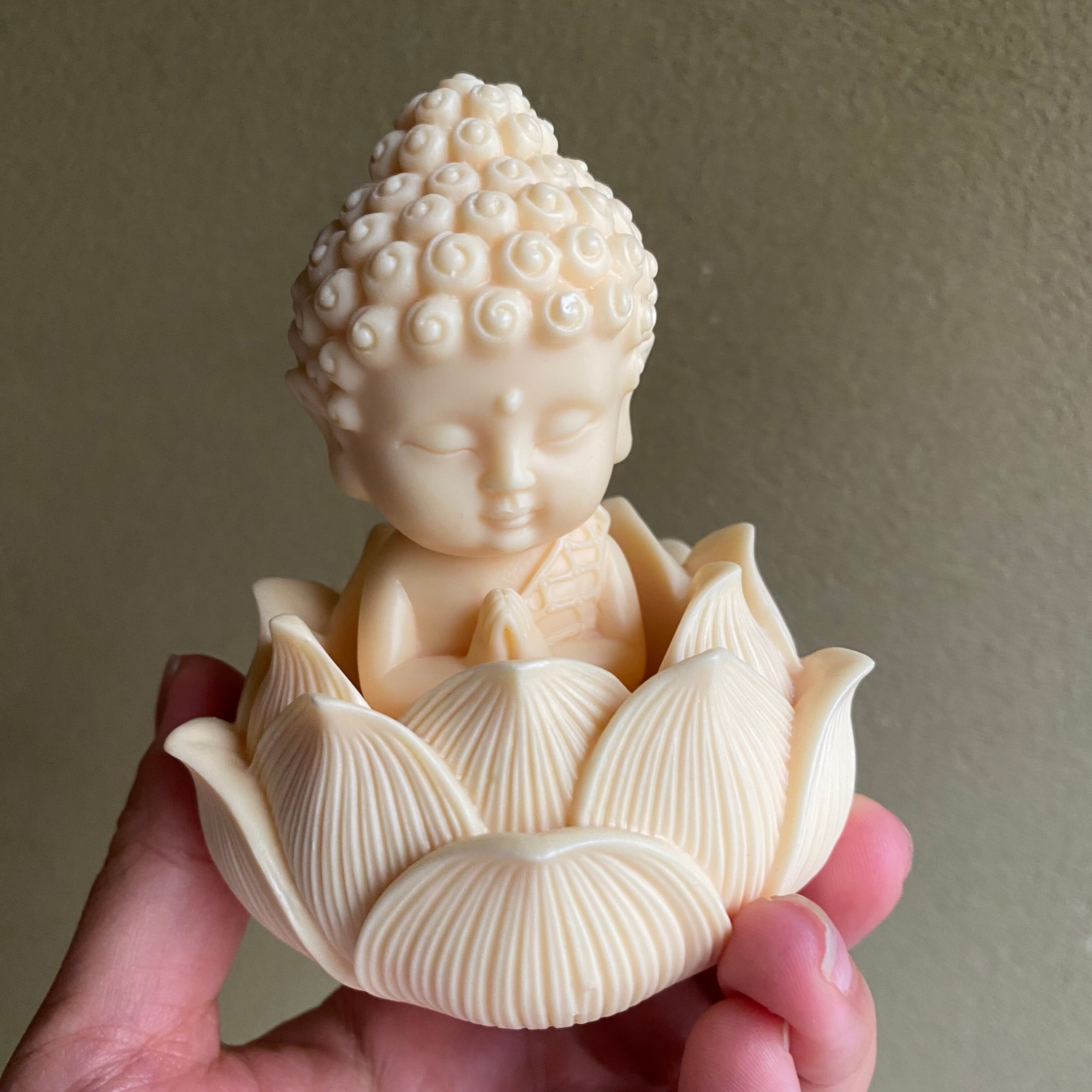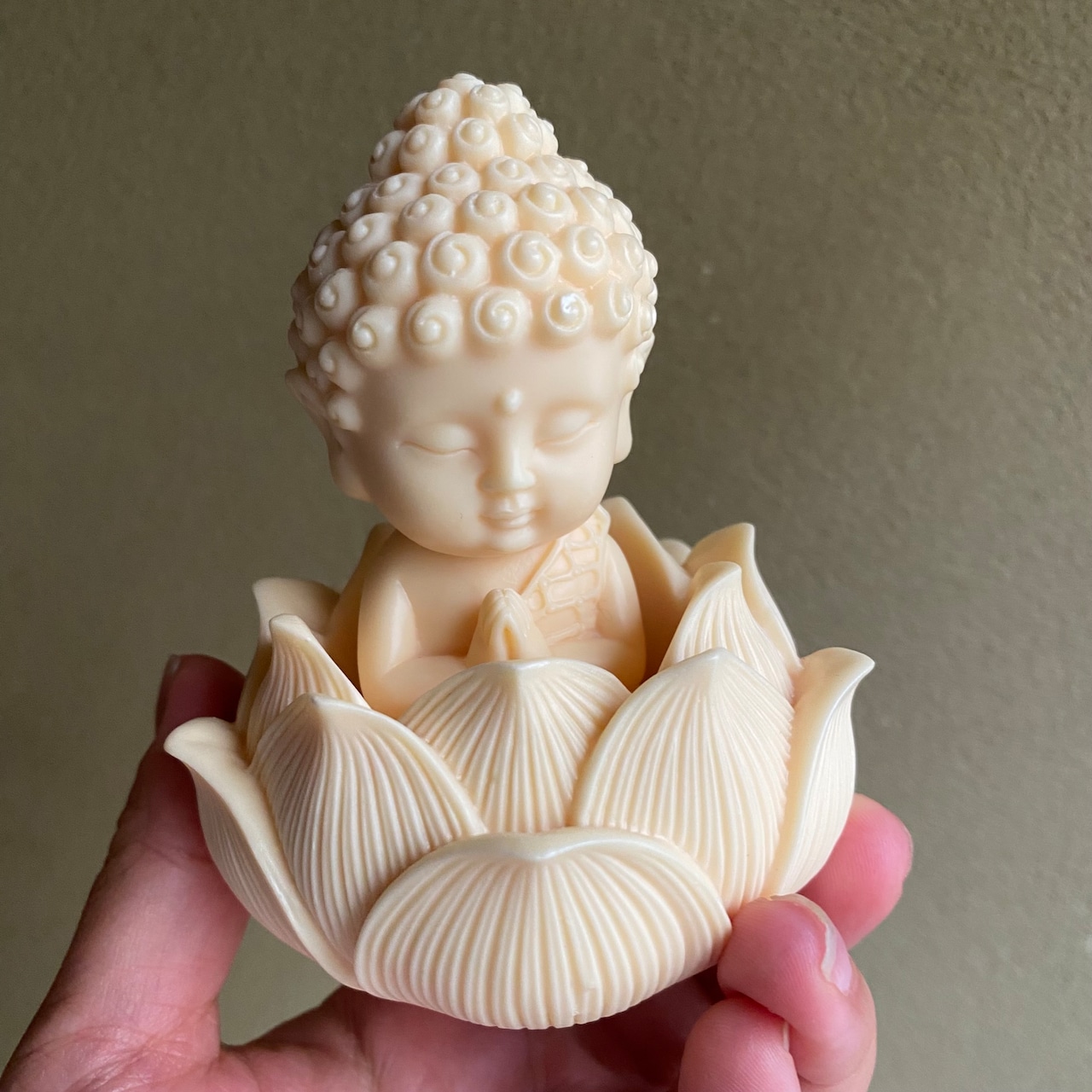 蓮の上にそっと座る姿は、まるであなたの空間を静かに見守るよう。仏様に宿る穏やかな気配と、蓮の持つ再生や純粋性の象徴が、あなたの暮らしに優しいエネルギーを届けてくれるでしょう。
