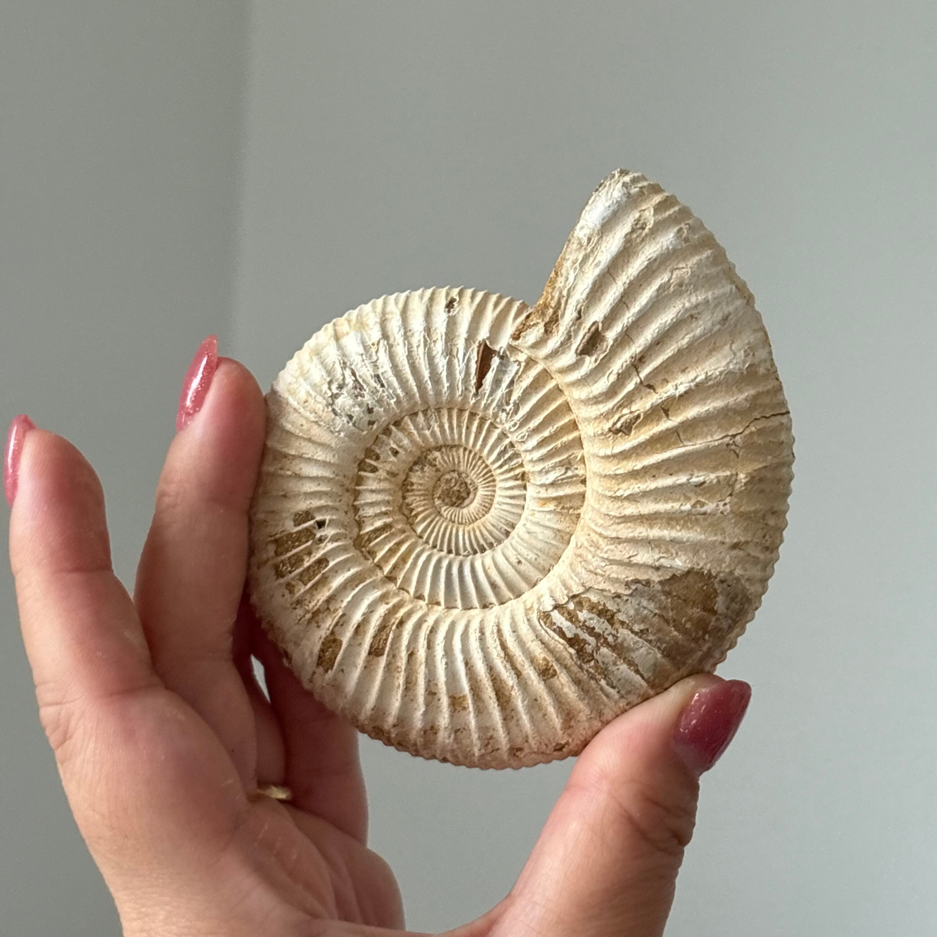 古来よりアンモナイトは「長寿」「再生」「叡智」の象徴とされ、地に足のついた安定や、スピリチュアルな洞察をもたらすお守りとしても愛されてきました。