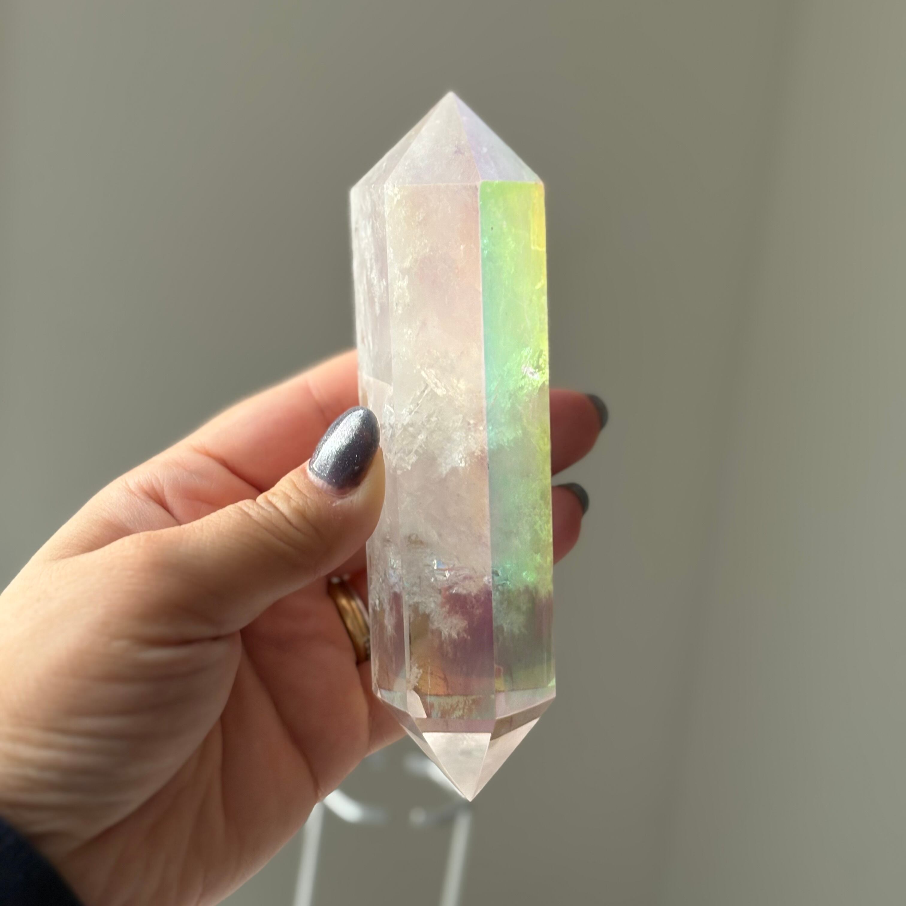 【レア】BIG エンジェルオーラクォーツ ダブルポイント 台座付き レア