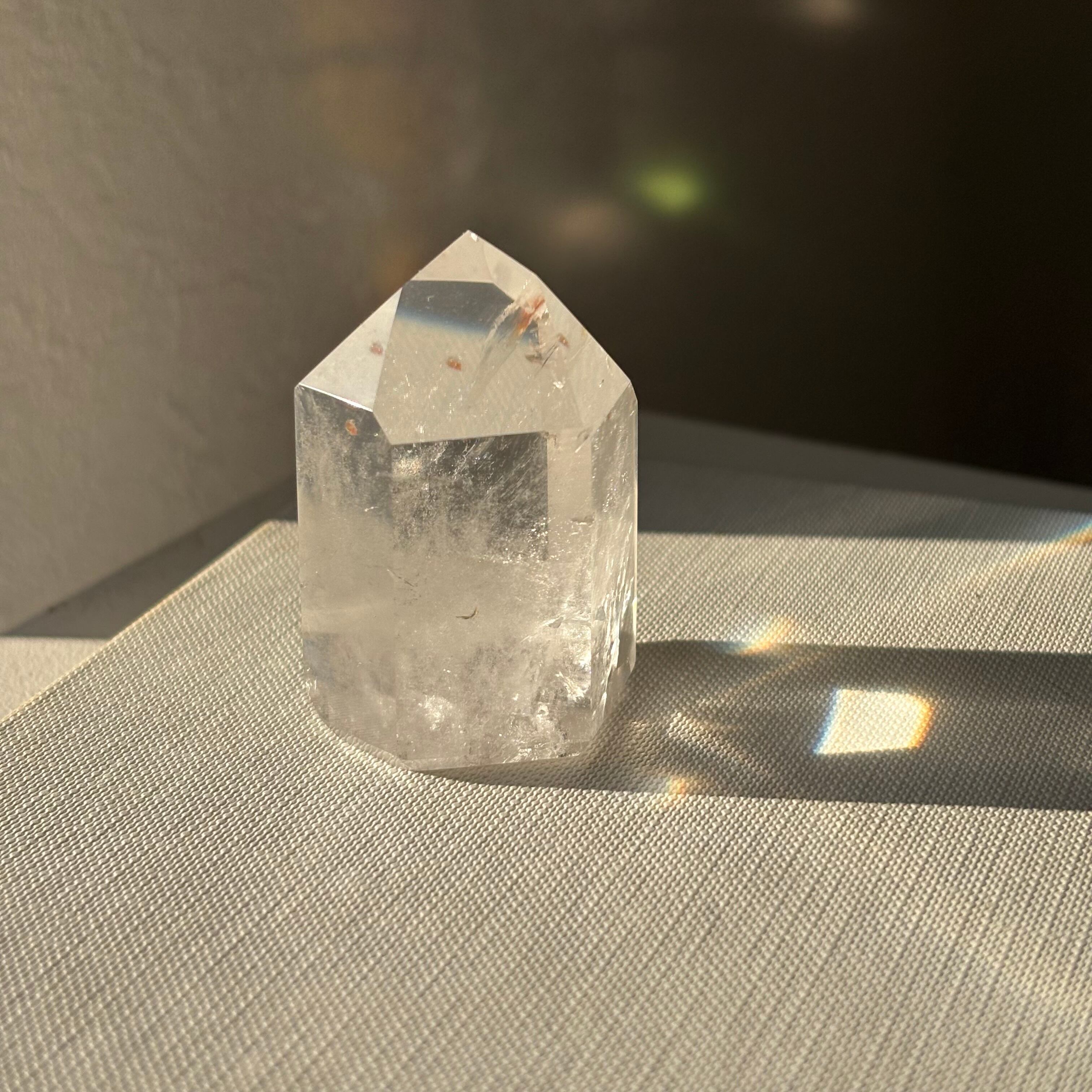 ブラジル・ミナスジェライス州コリント産の高品質クリアクォーツを使用した、小さなポイントタワーです。