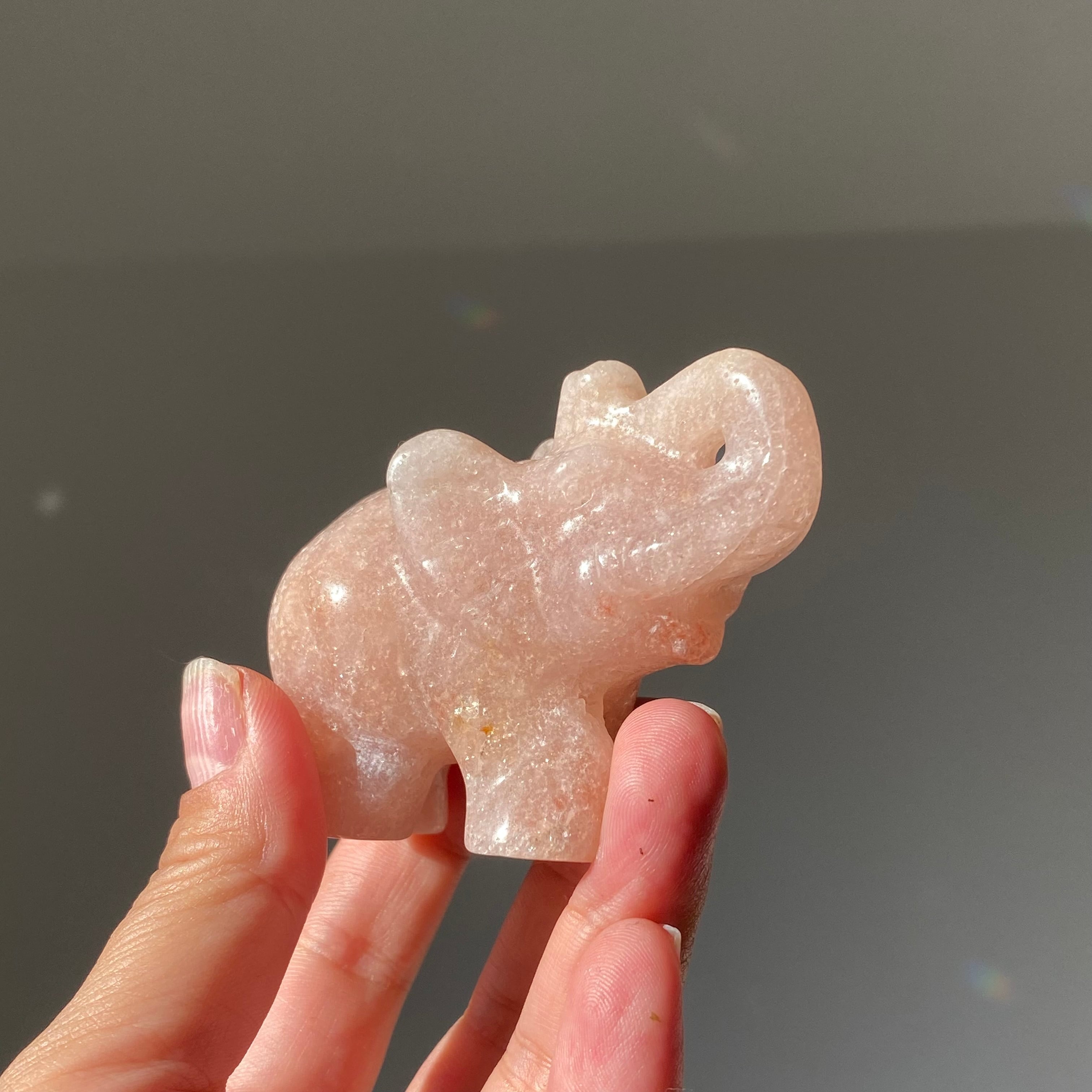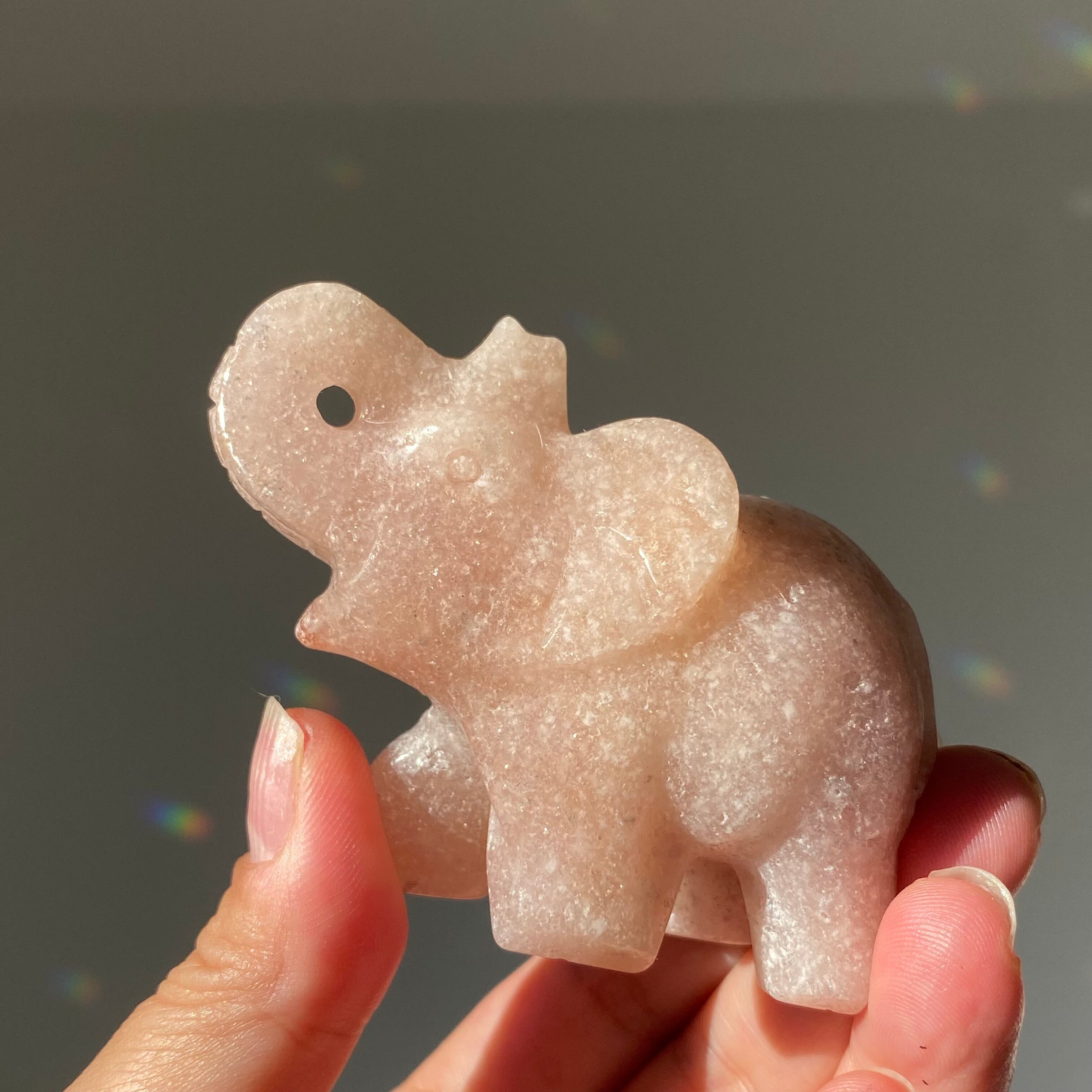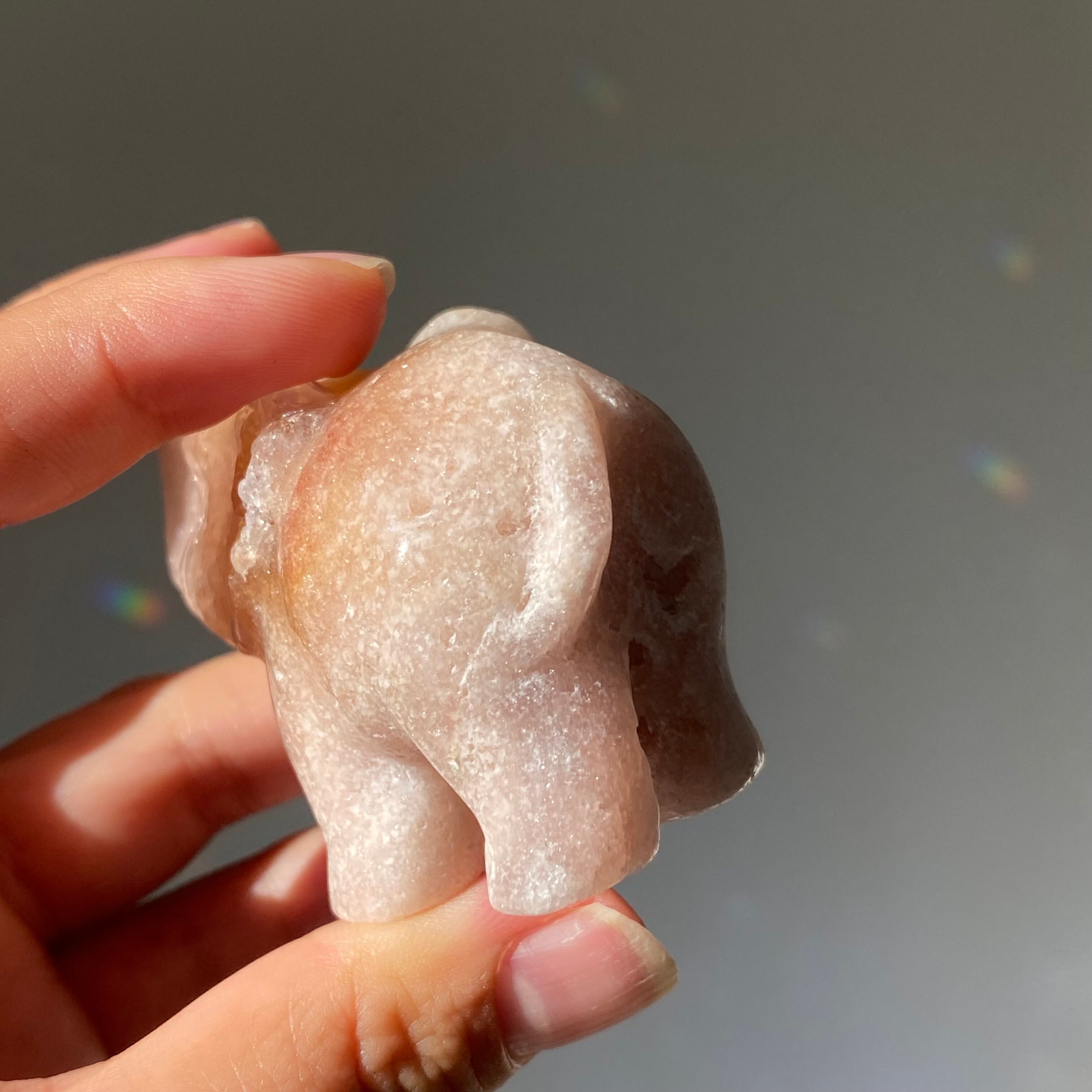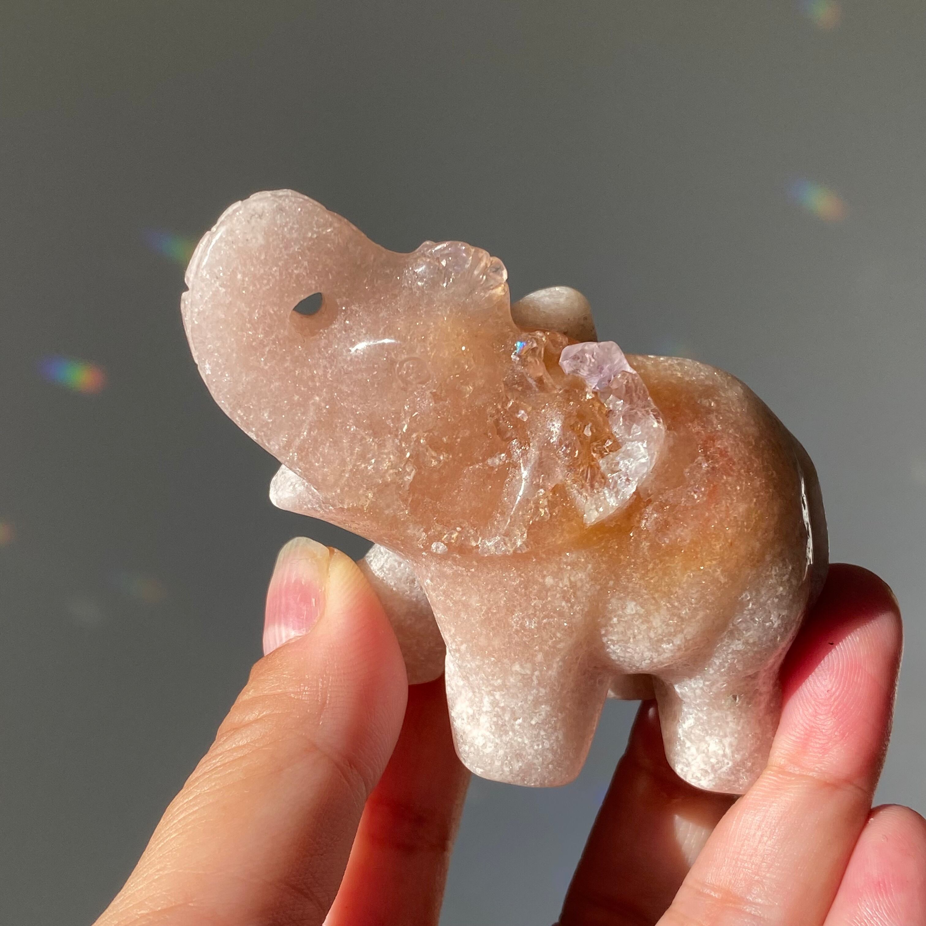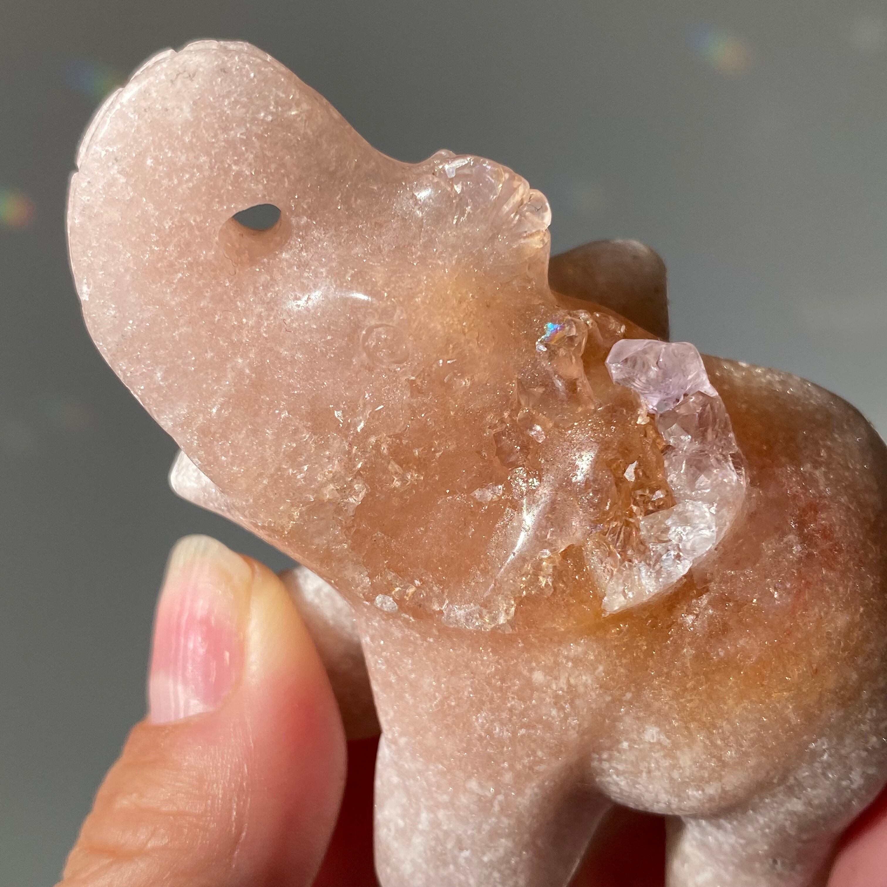 淡いピンクの結晶で丁寧に彫られた、ピンクアメジストのゾウのペアです。