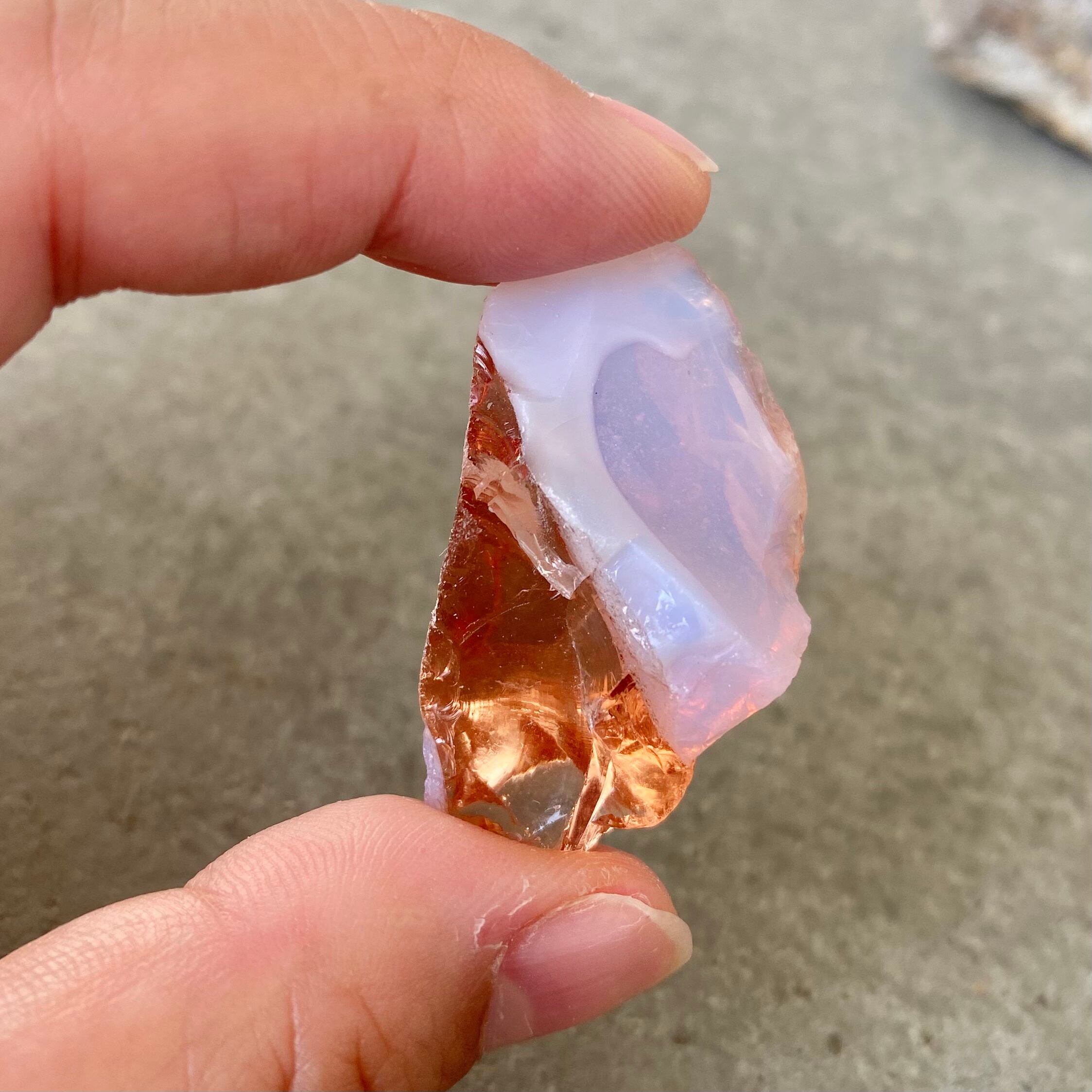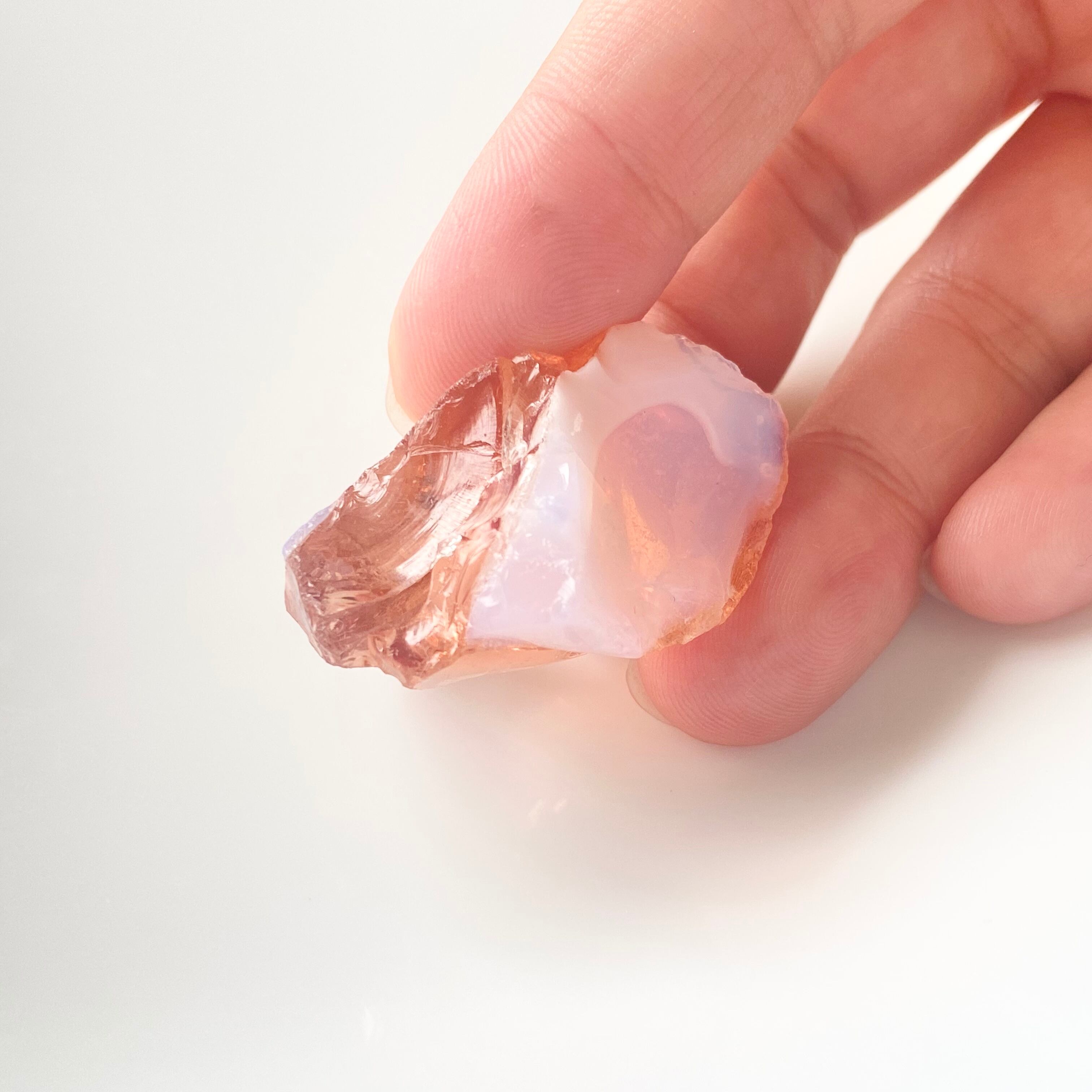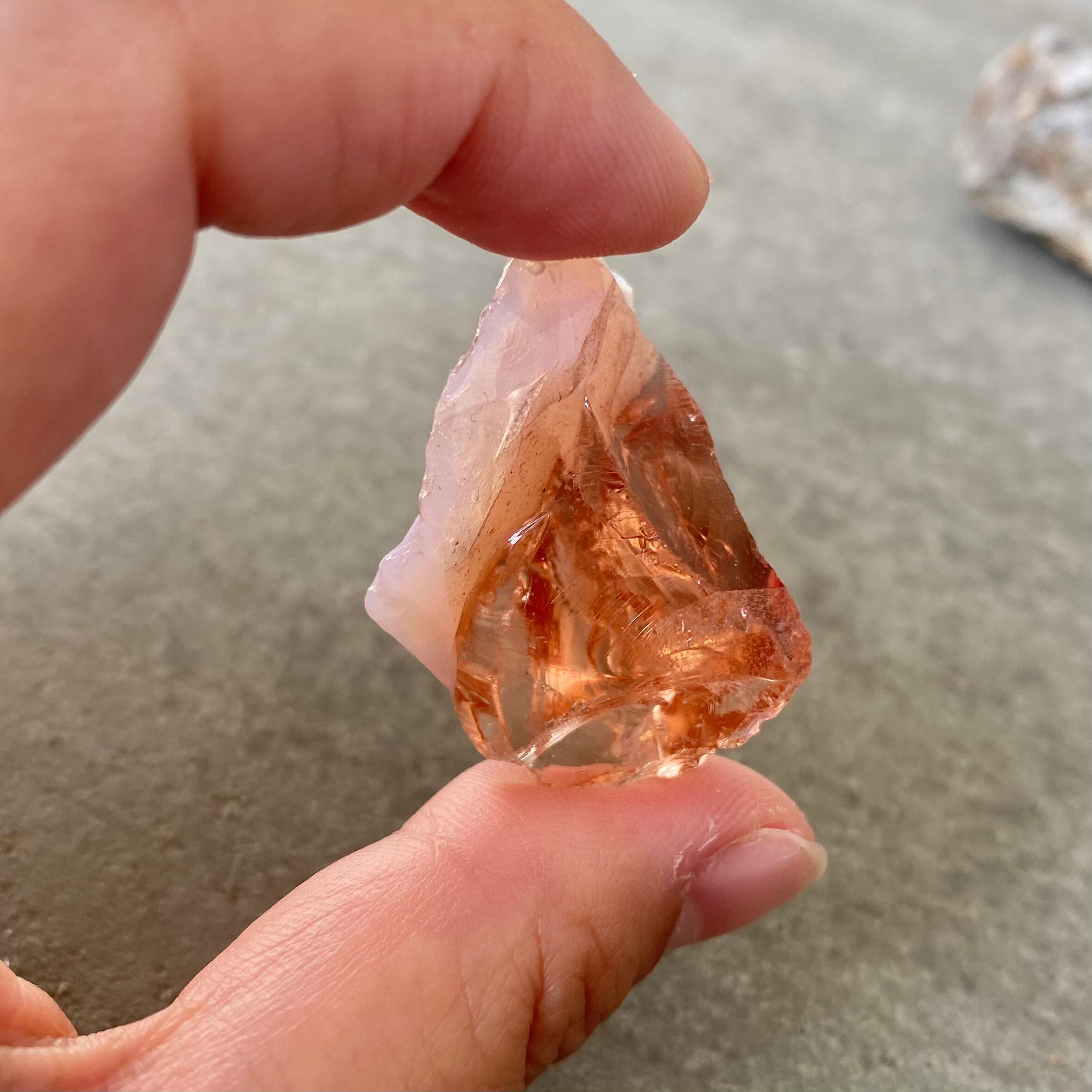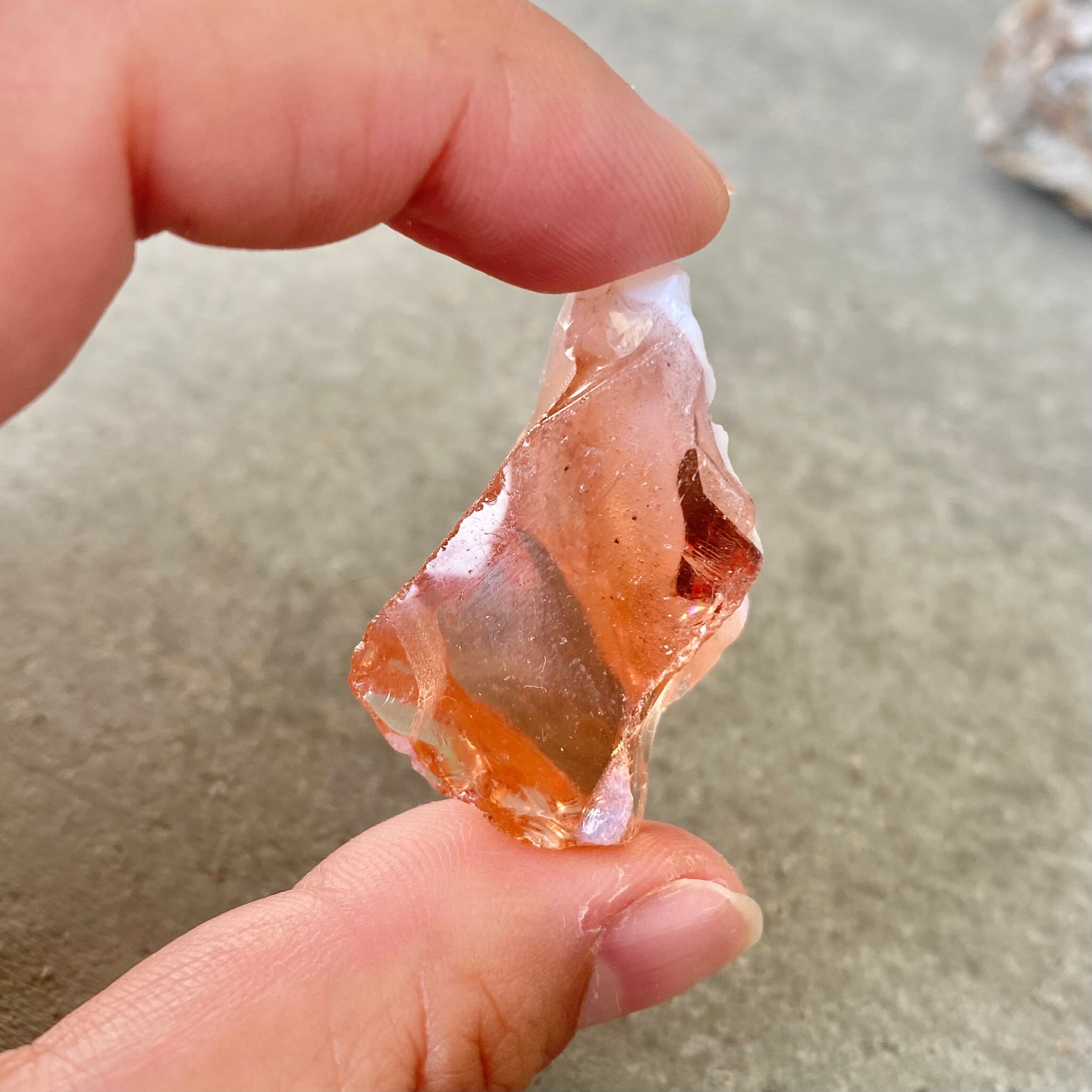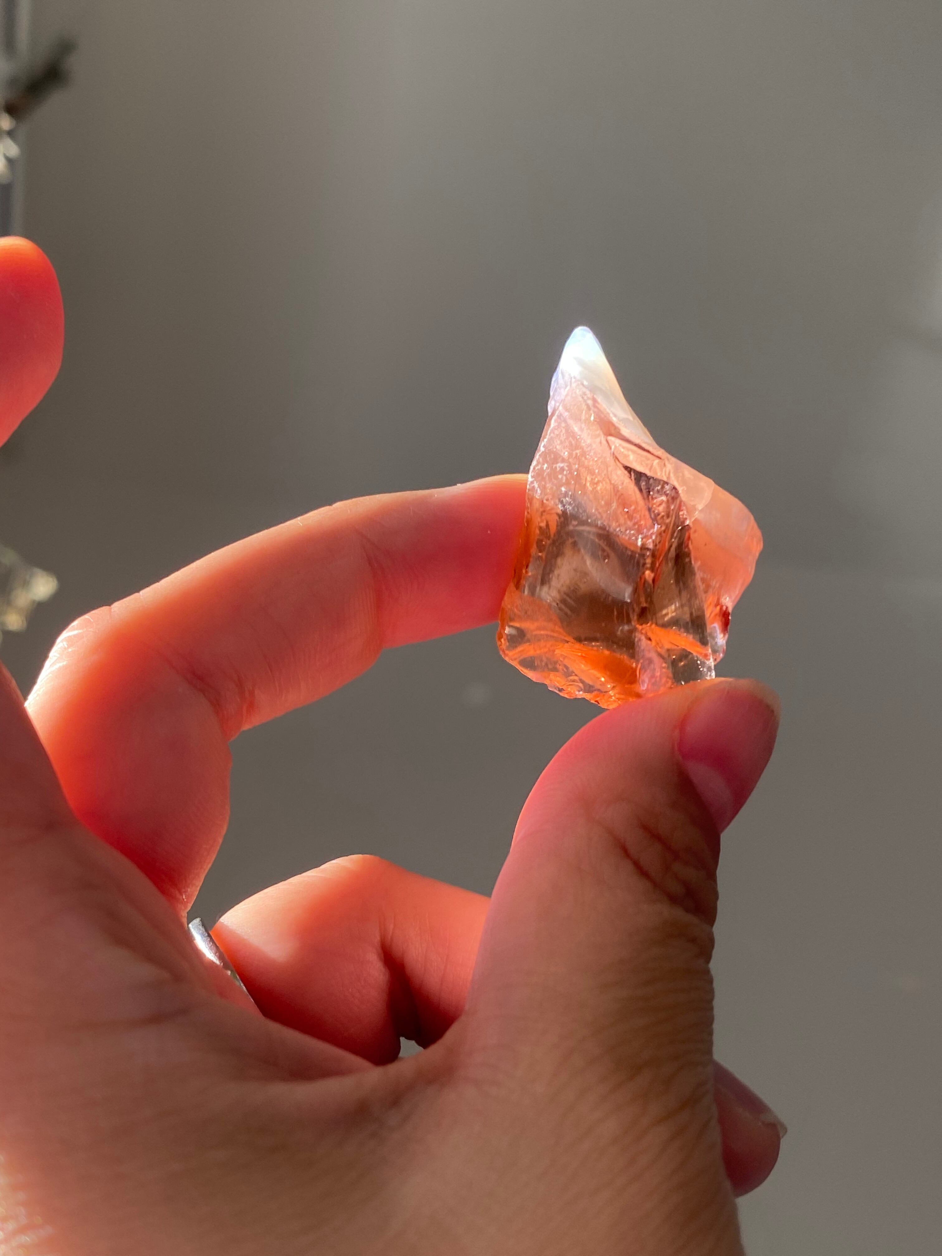アメリカ・シェラネバダの大地から届いた、柔らかなオレンジピンクに光るアンダラクリスタル。