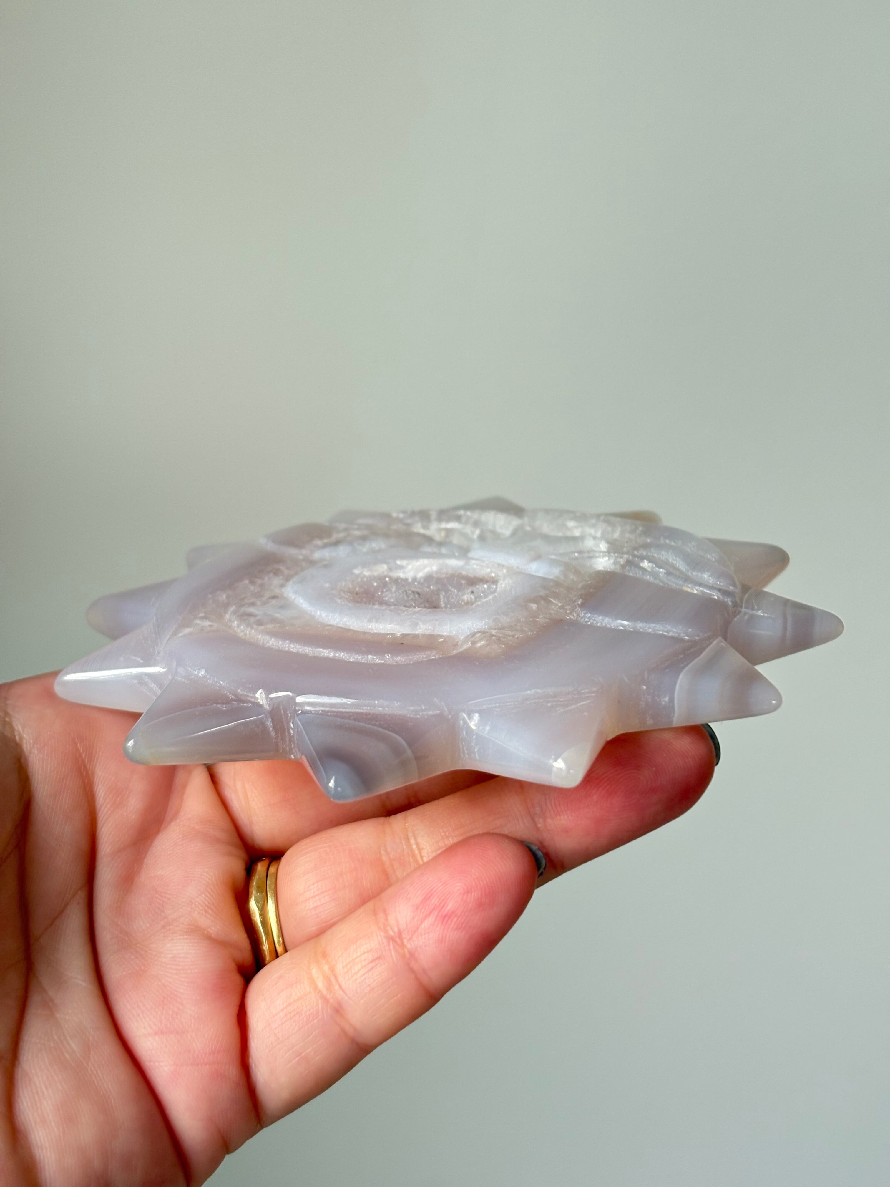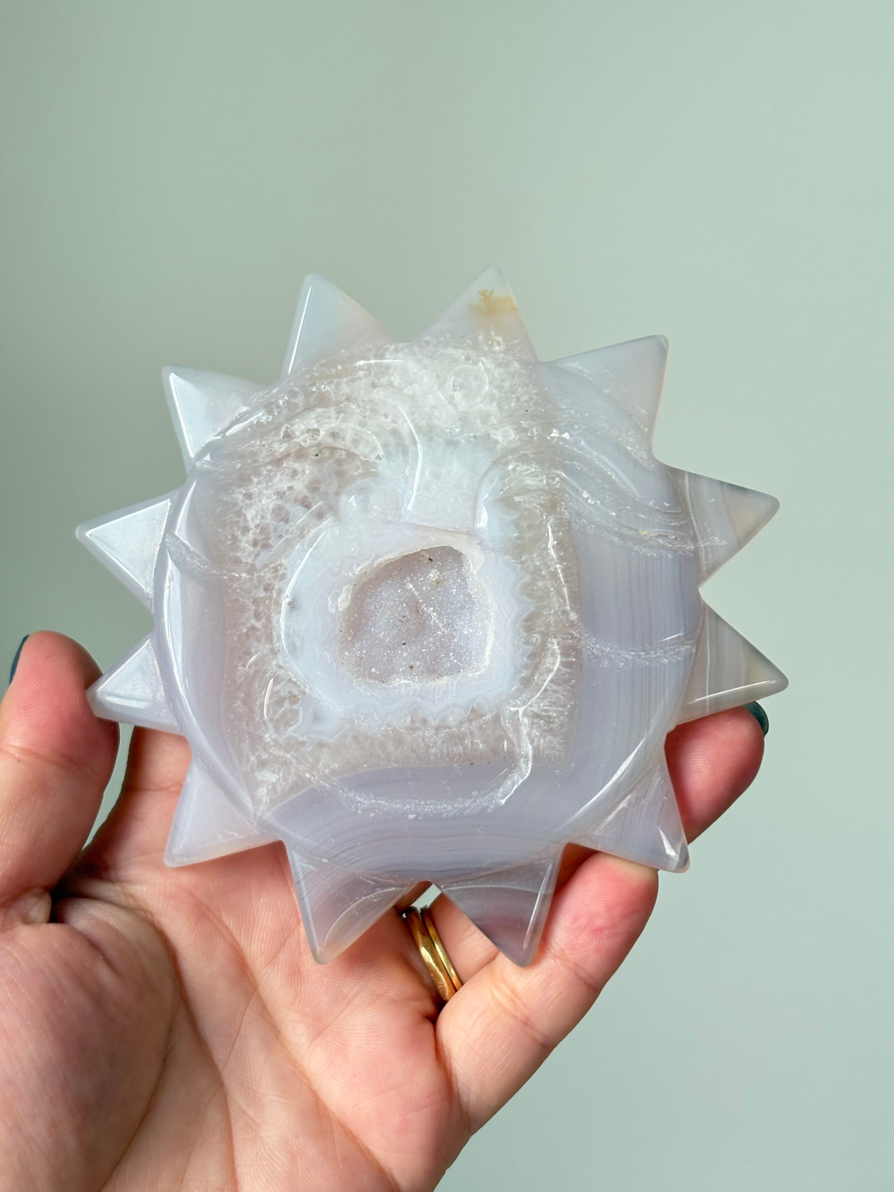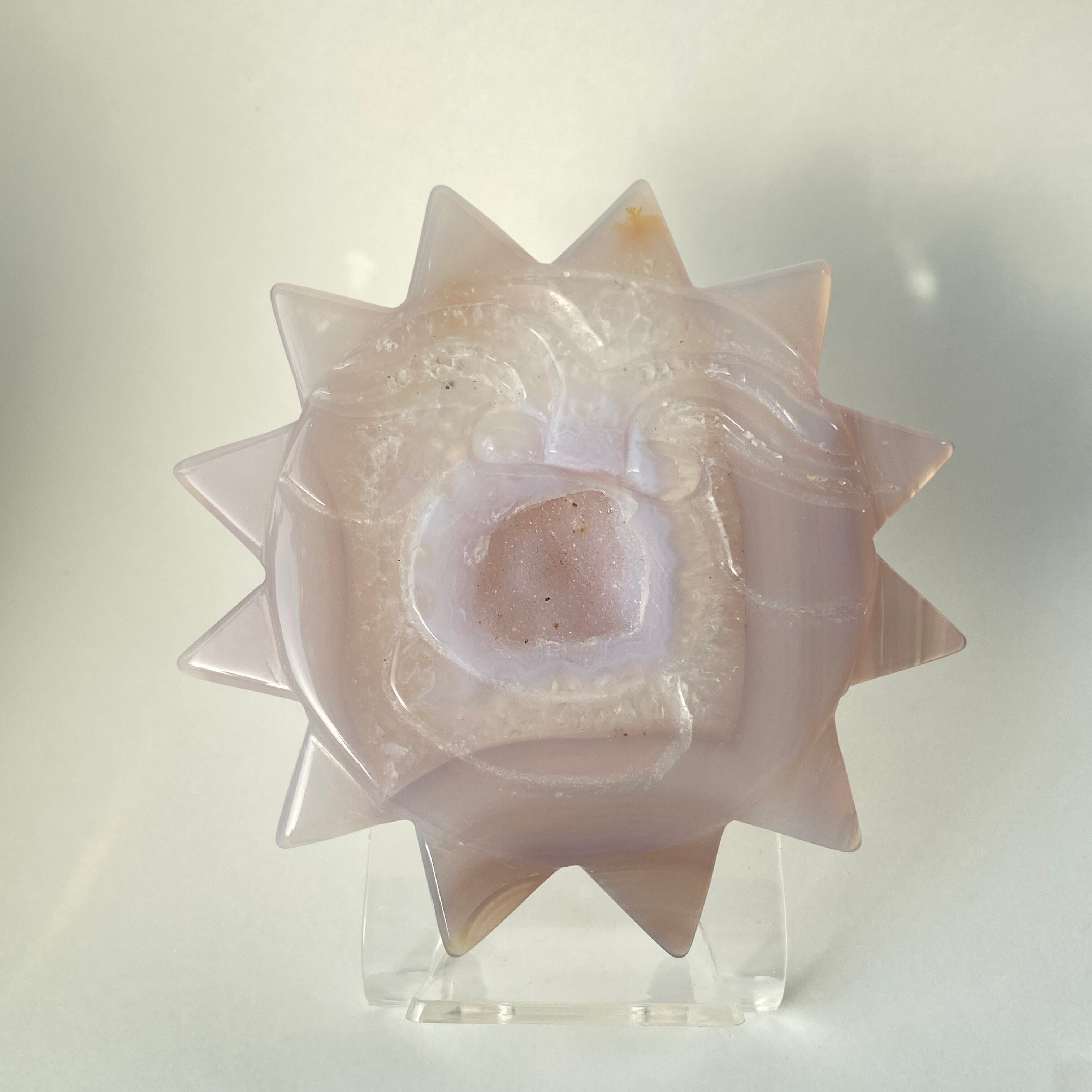 ピンクアゲート 太陽のドゥルージー】 ― やさしさと光をまとう、“微笑む太陽” ― アゲートスライス 太陽 笑顔 カービング ピンク ピンクドゥルージー