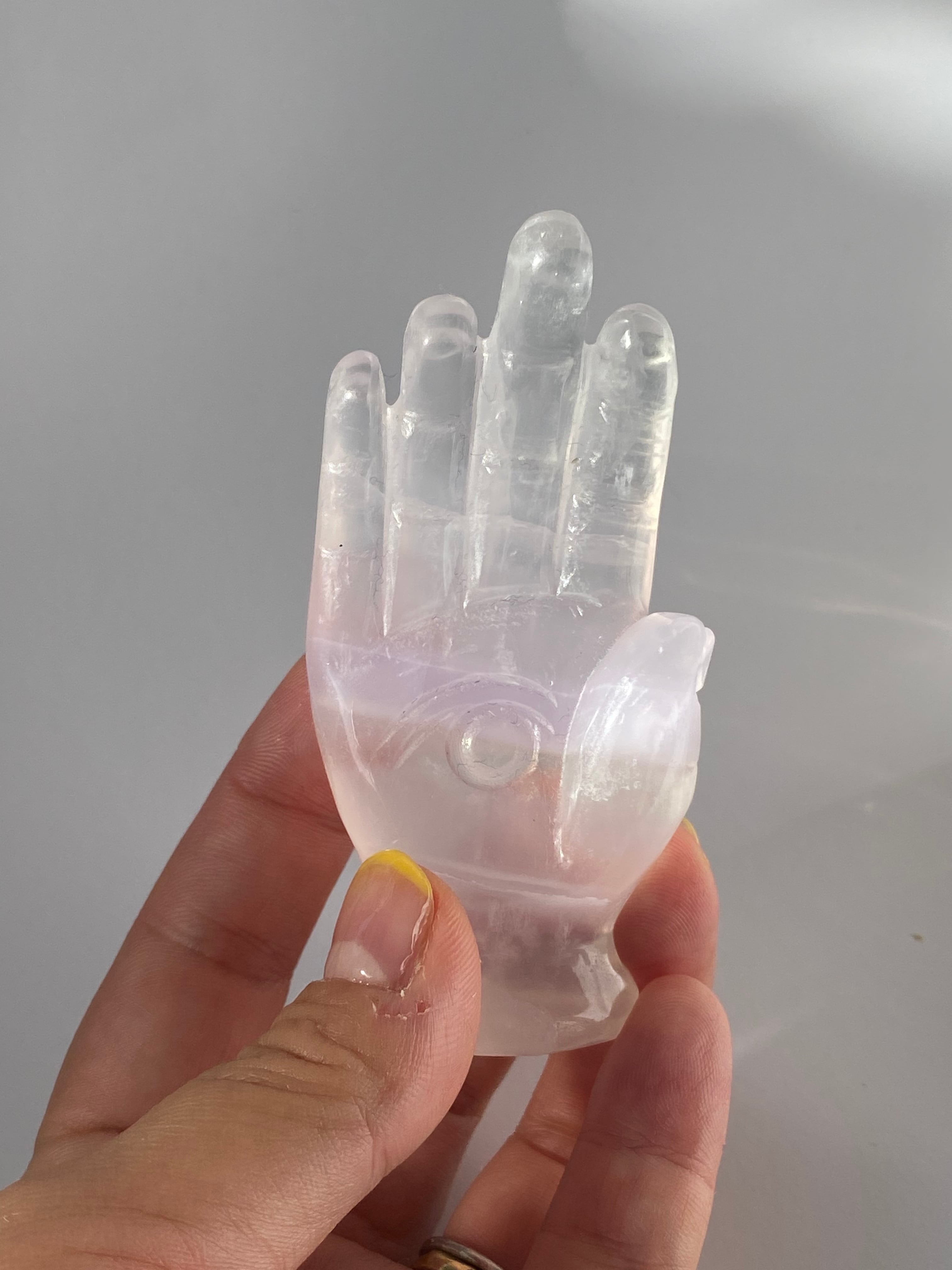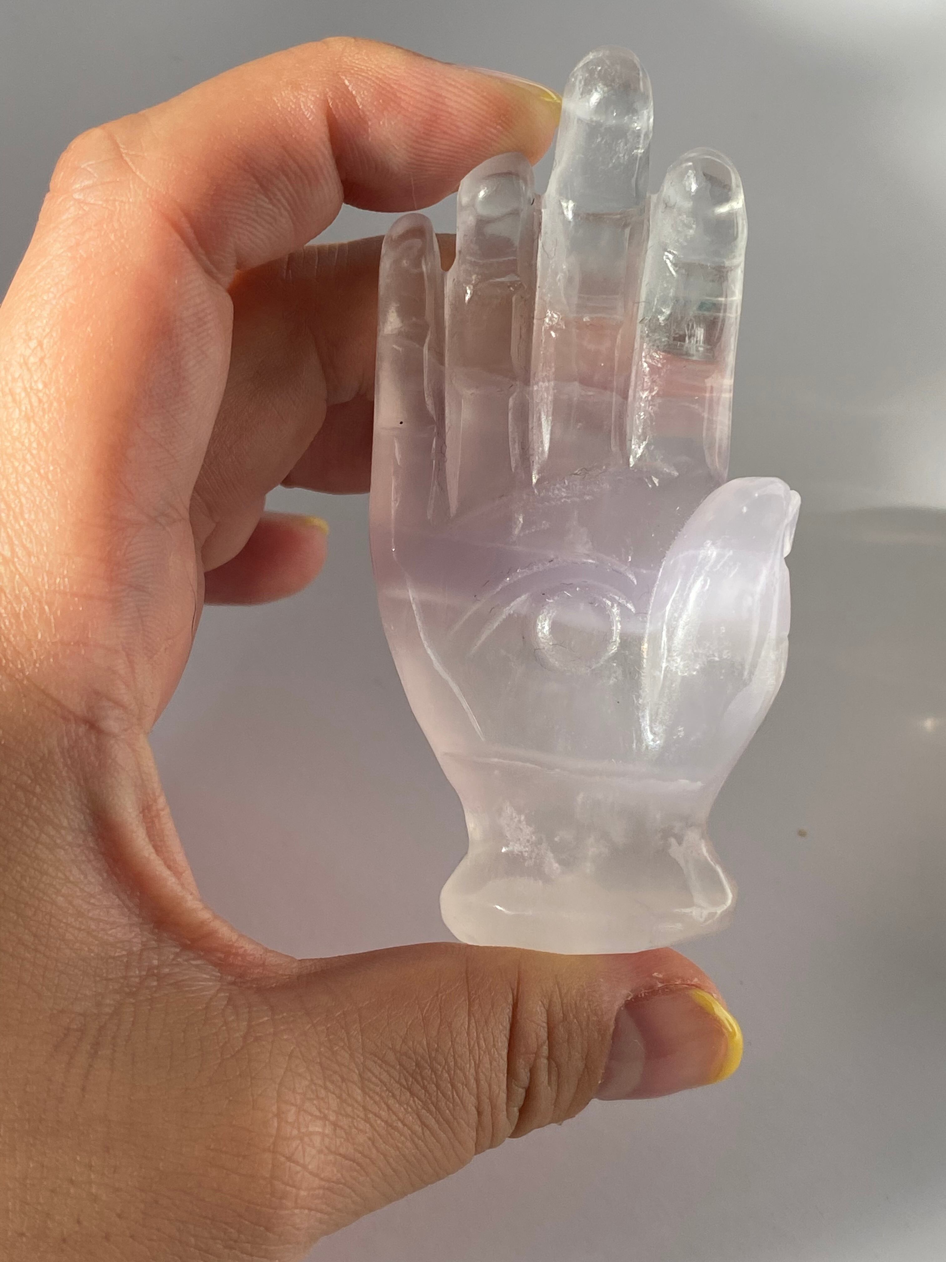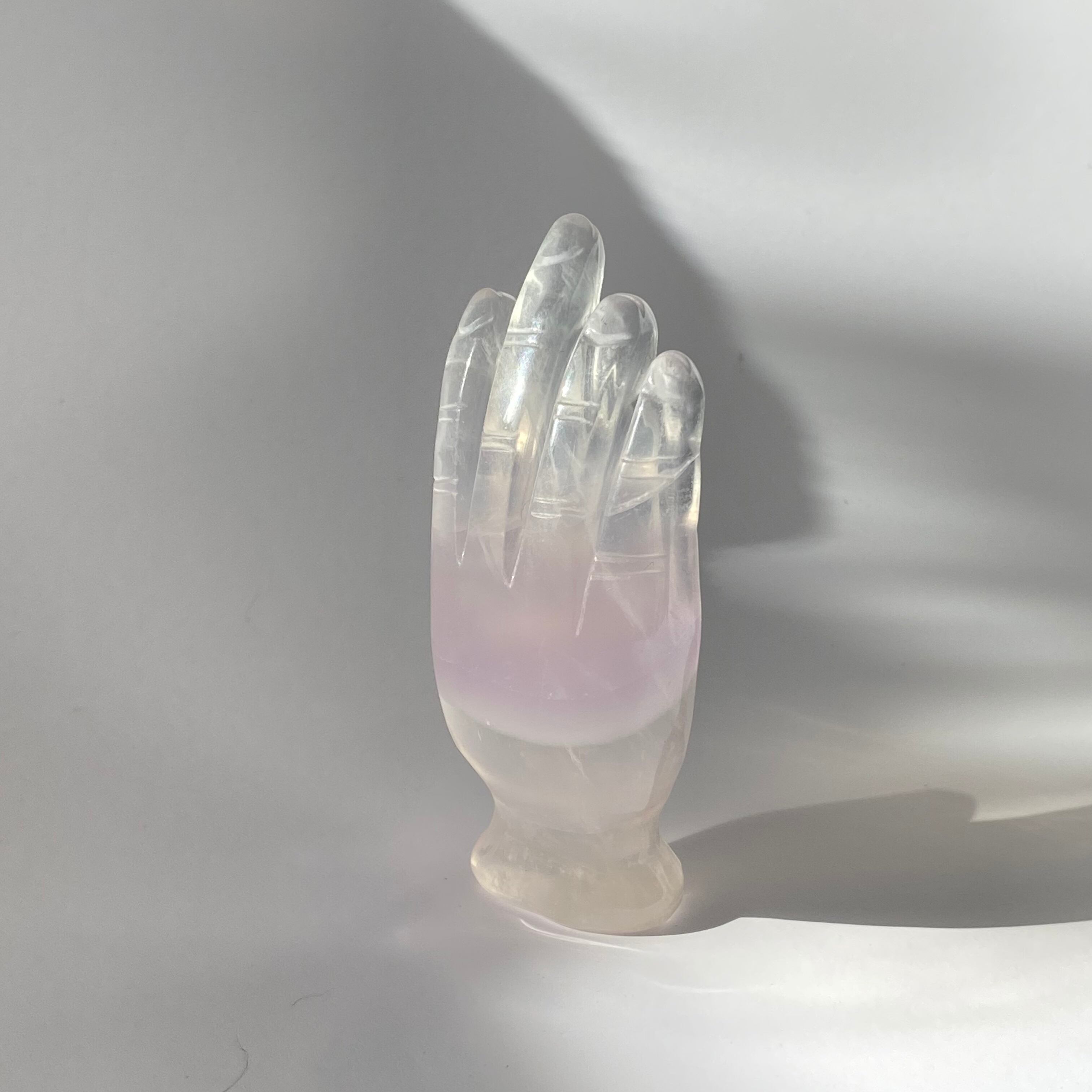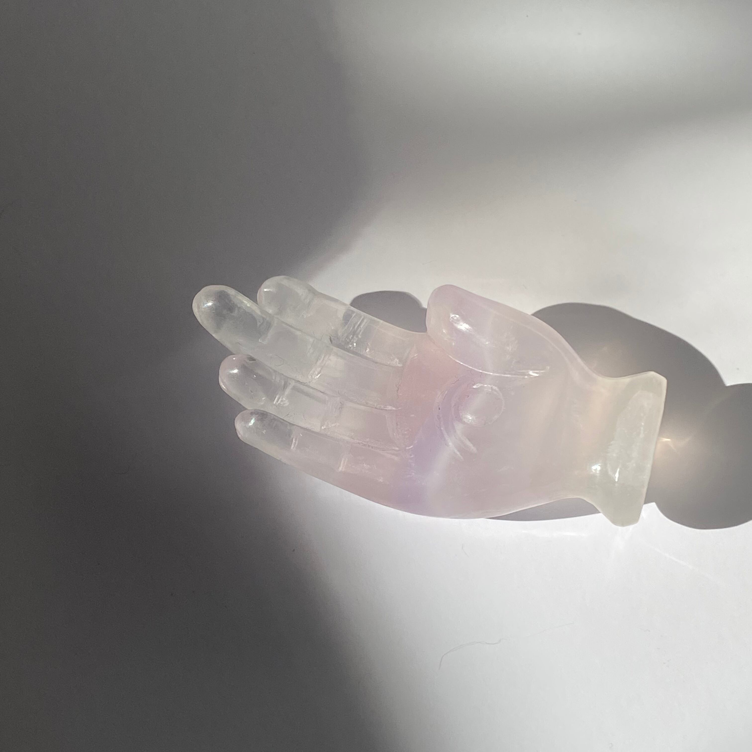 フローライトで丁寧に彫刻された、手のひらモチーフの可愛らしいオブジェです。