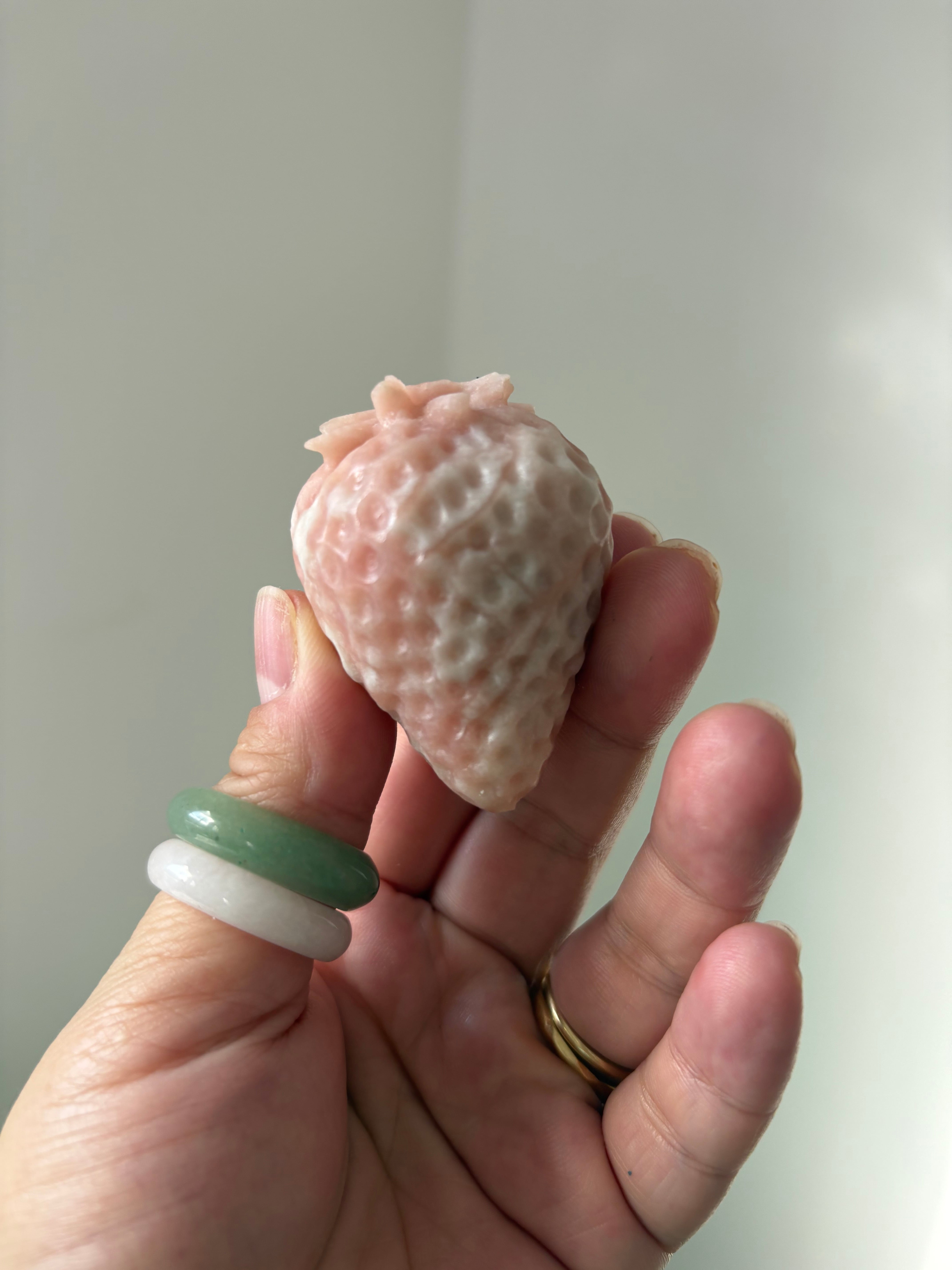 ピンクオパール いちご カービング 天然石 オパール 彫刻