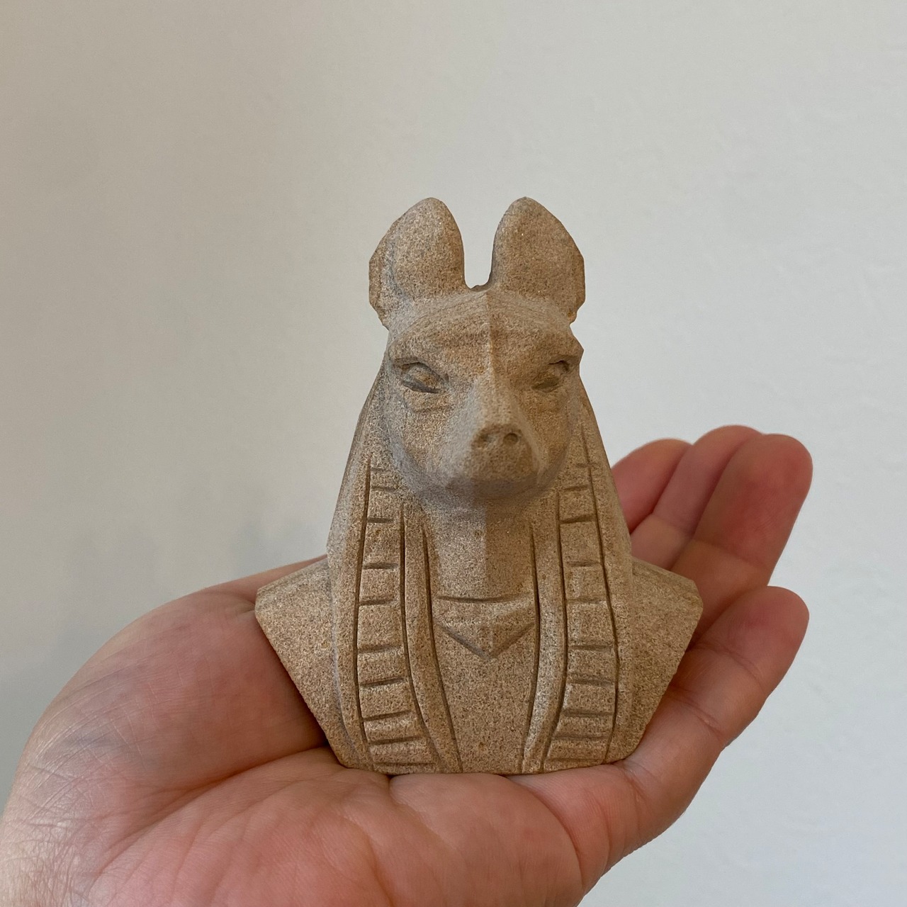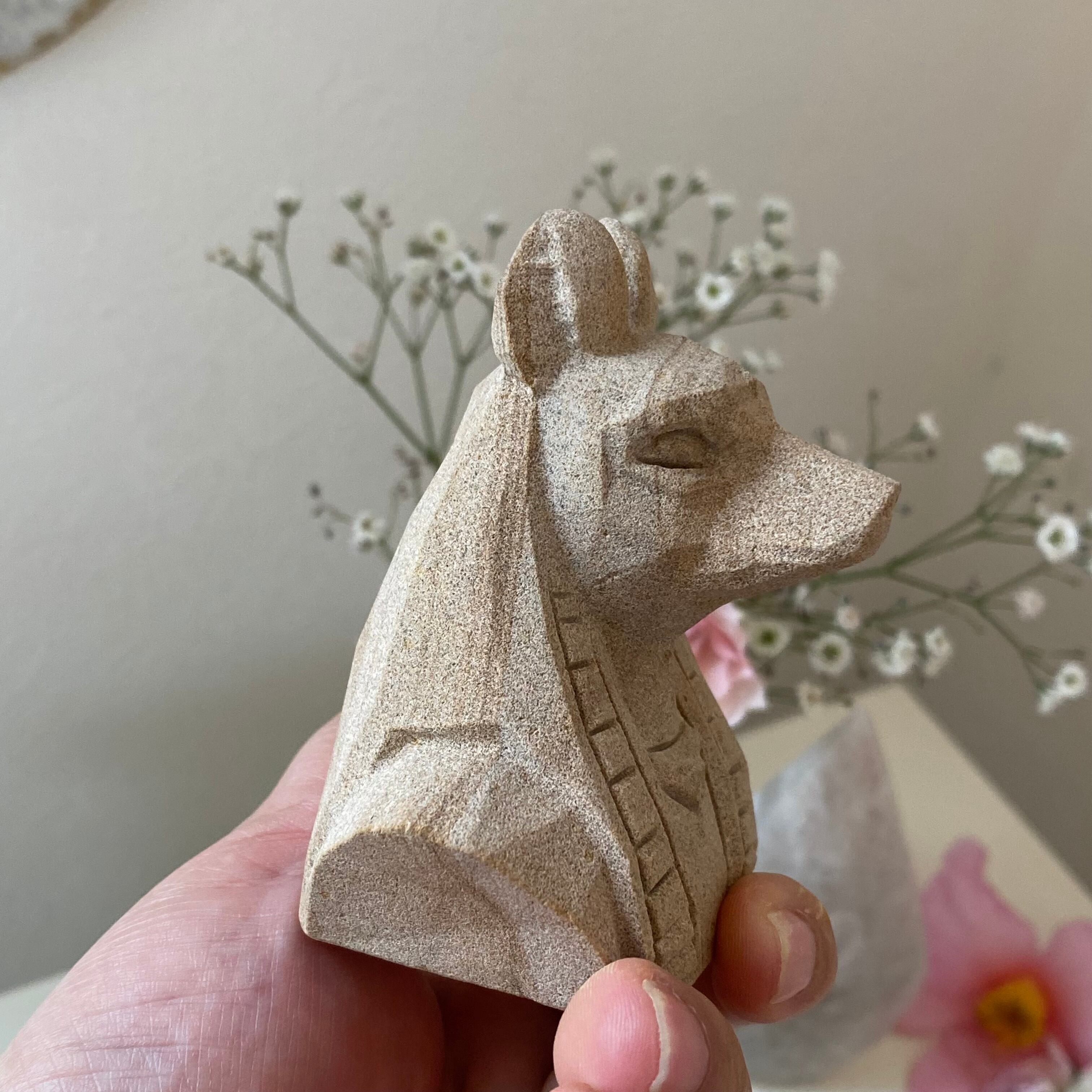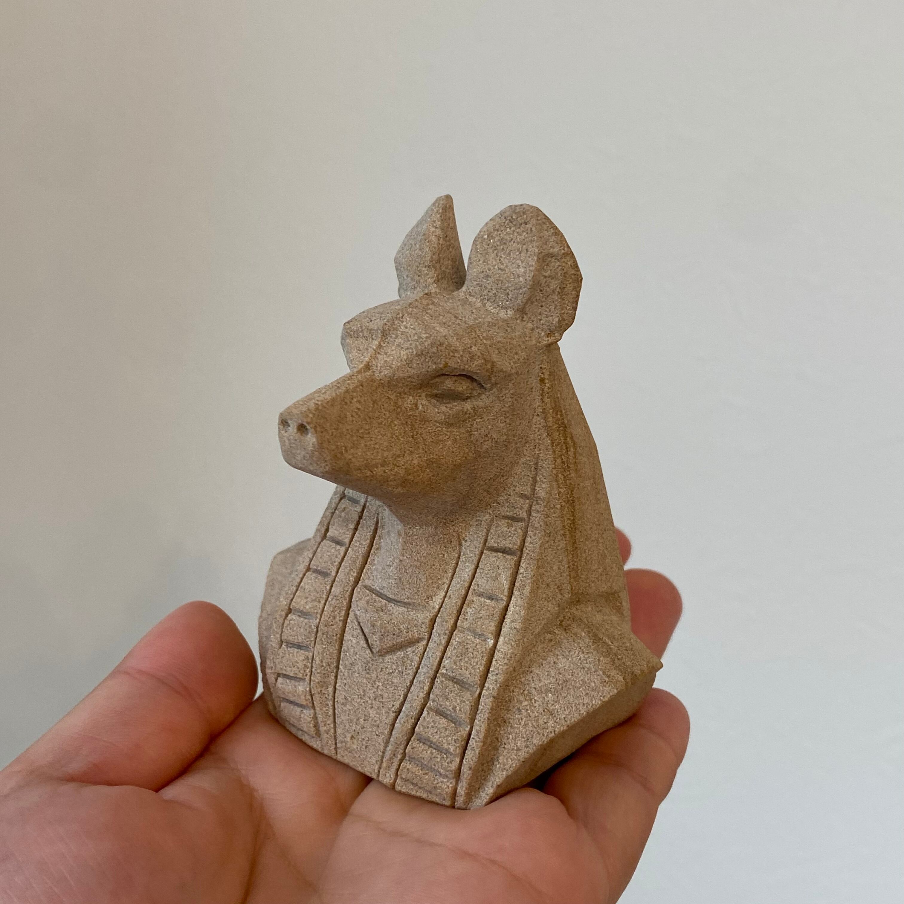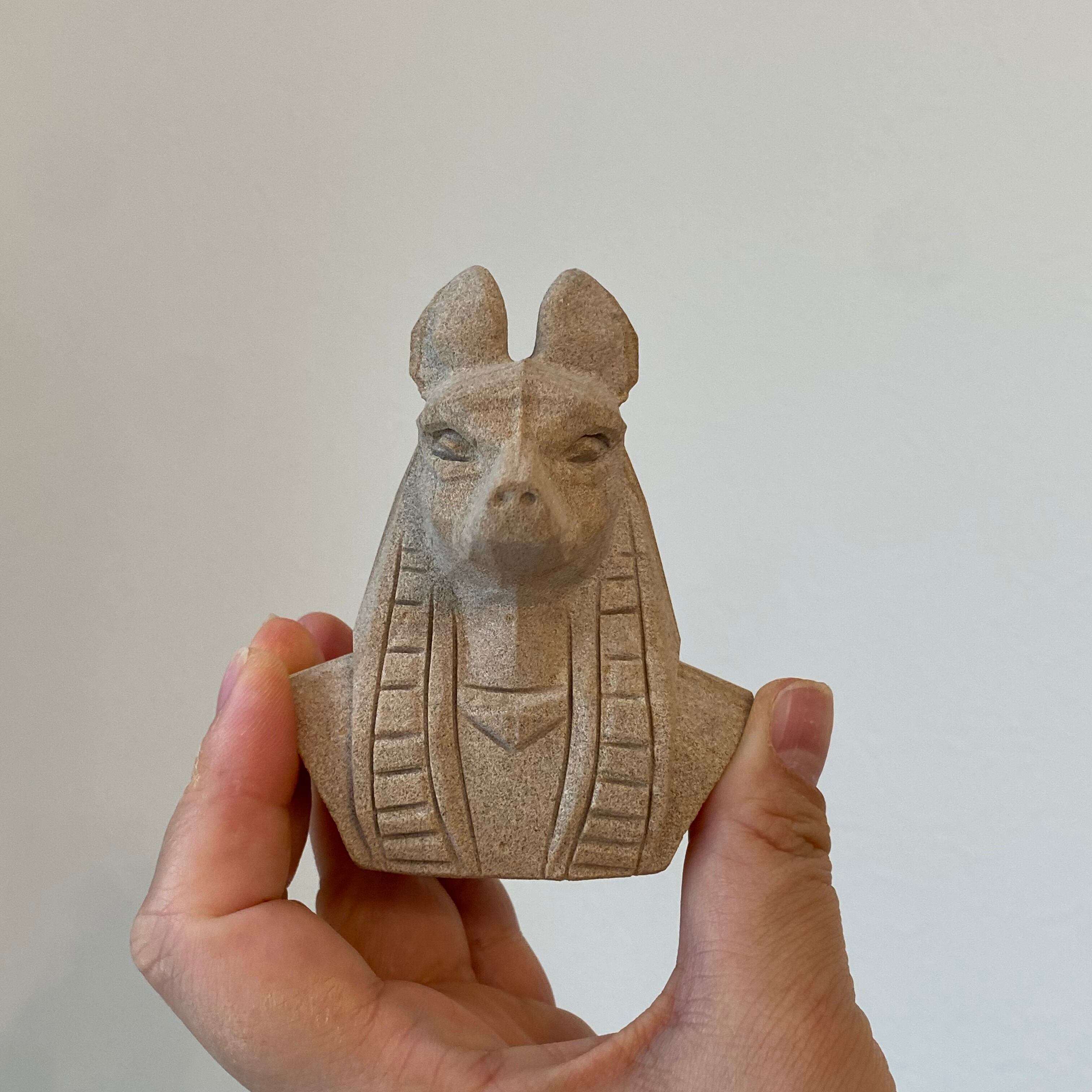 エジプトの神アヌビスをかたどったサンドストーンのカービングです。