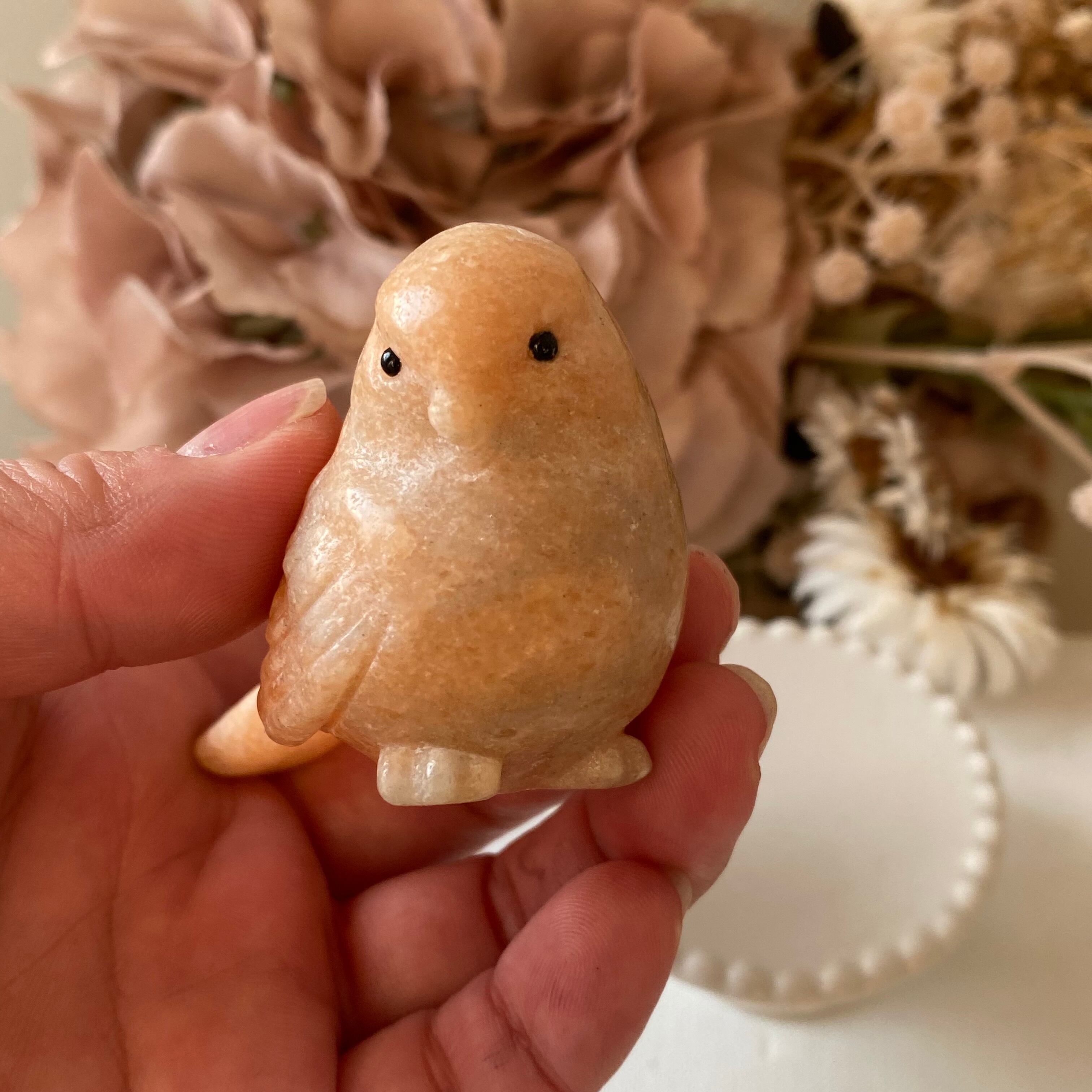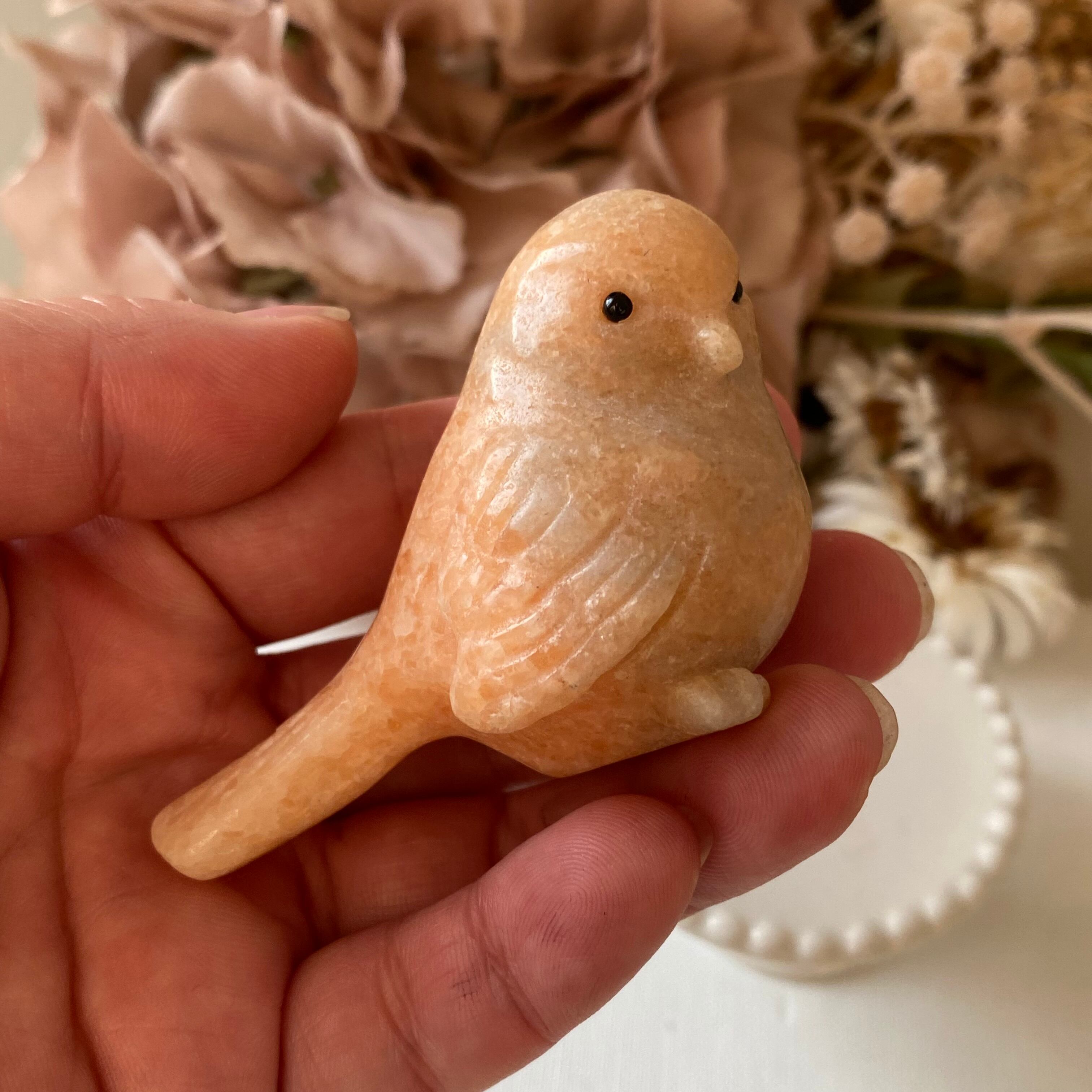 オレンジカルサイト 鳥 とりさん カービング 天然石 パワーストーン