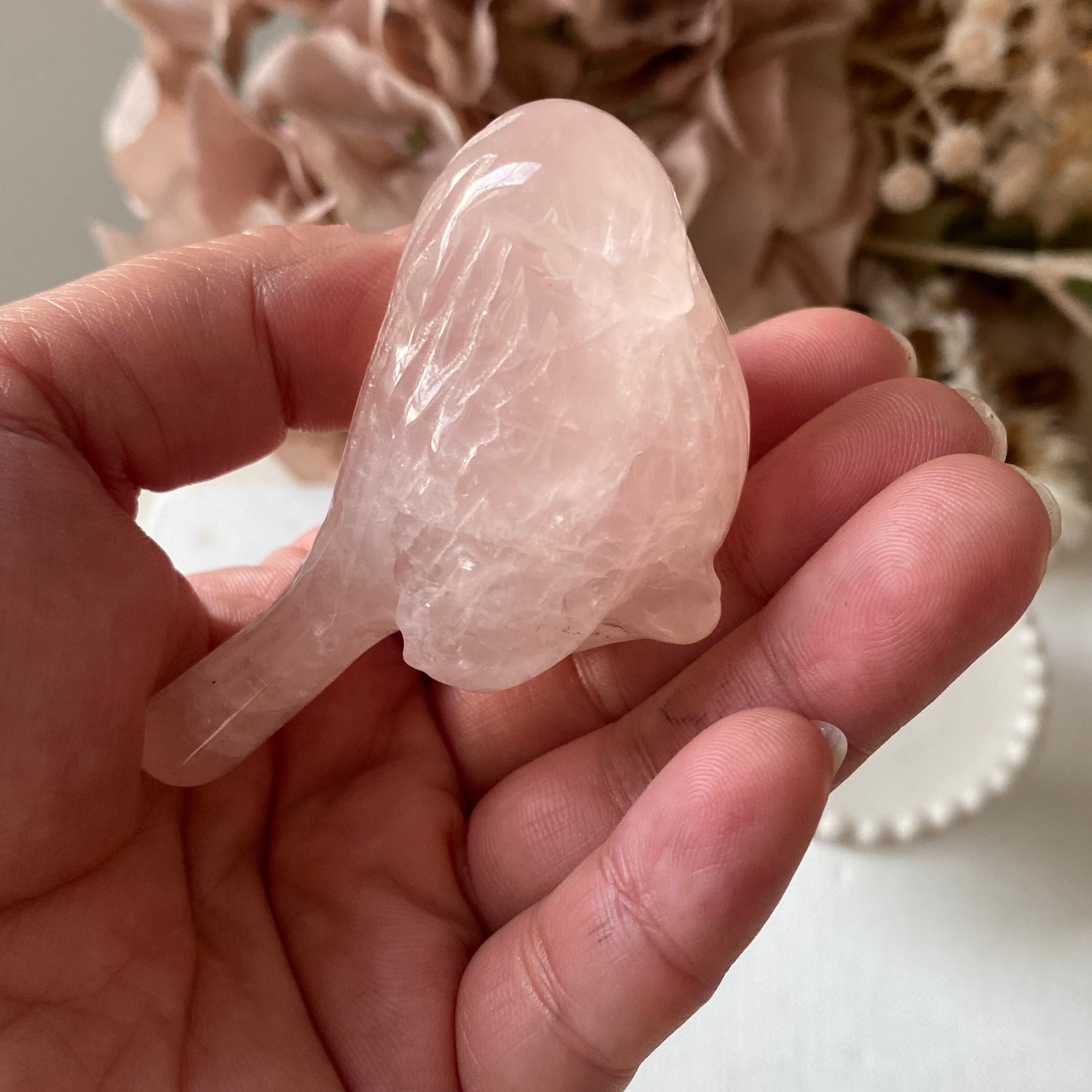 ローズクォーツの鳥カービングが、あなたの心にやさしい愛と癒しを運んでくれるように。
