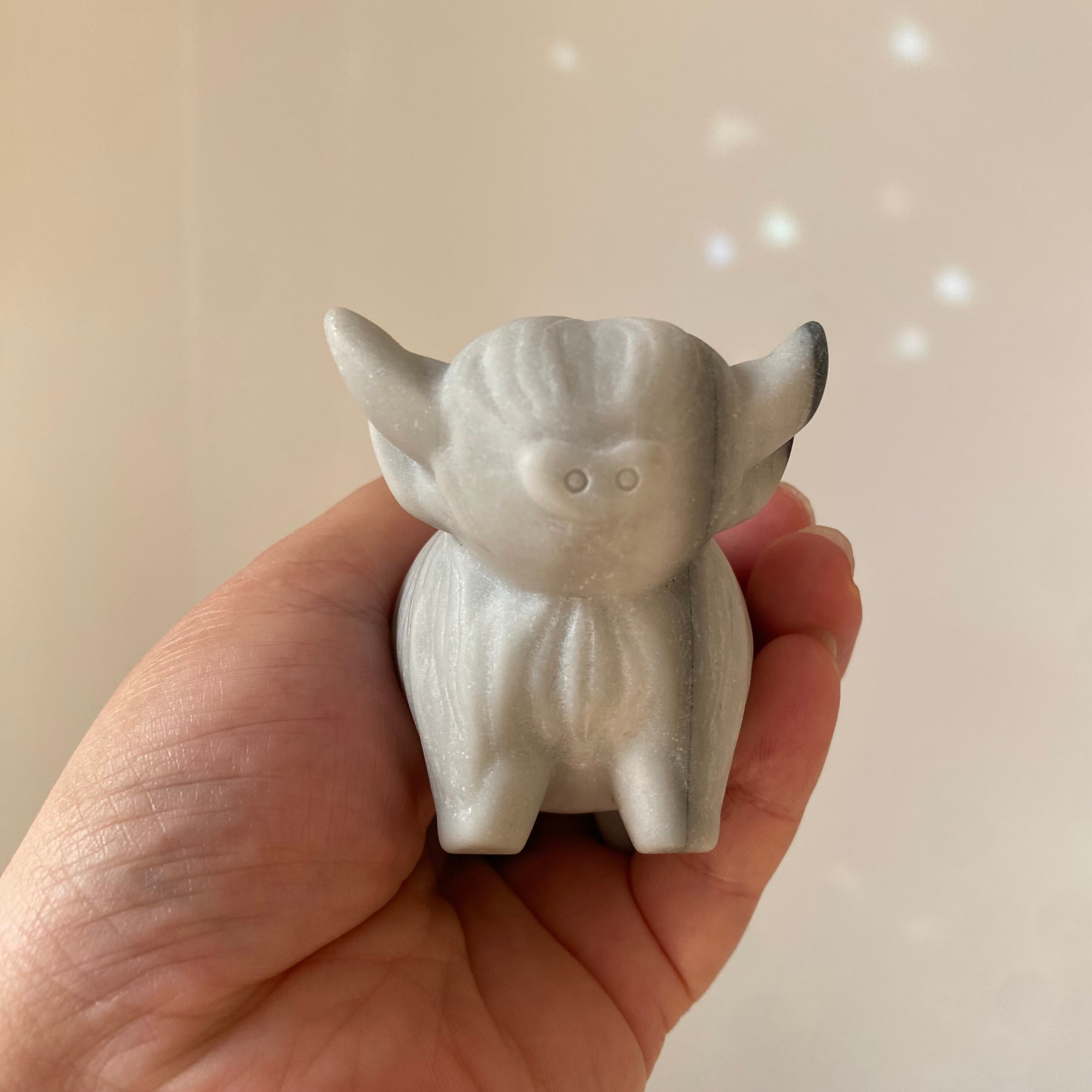 この牛さんカービングは、コロンとした丸みのあるフォルムと、ちょこんと目立つツノが特徴。