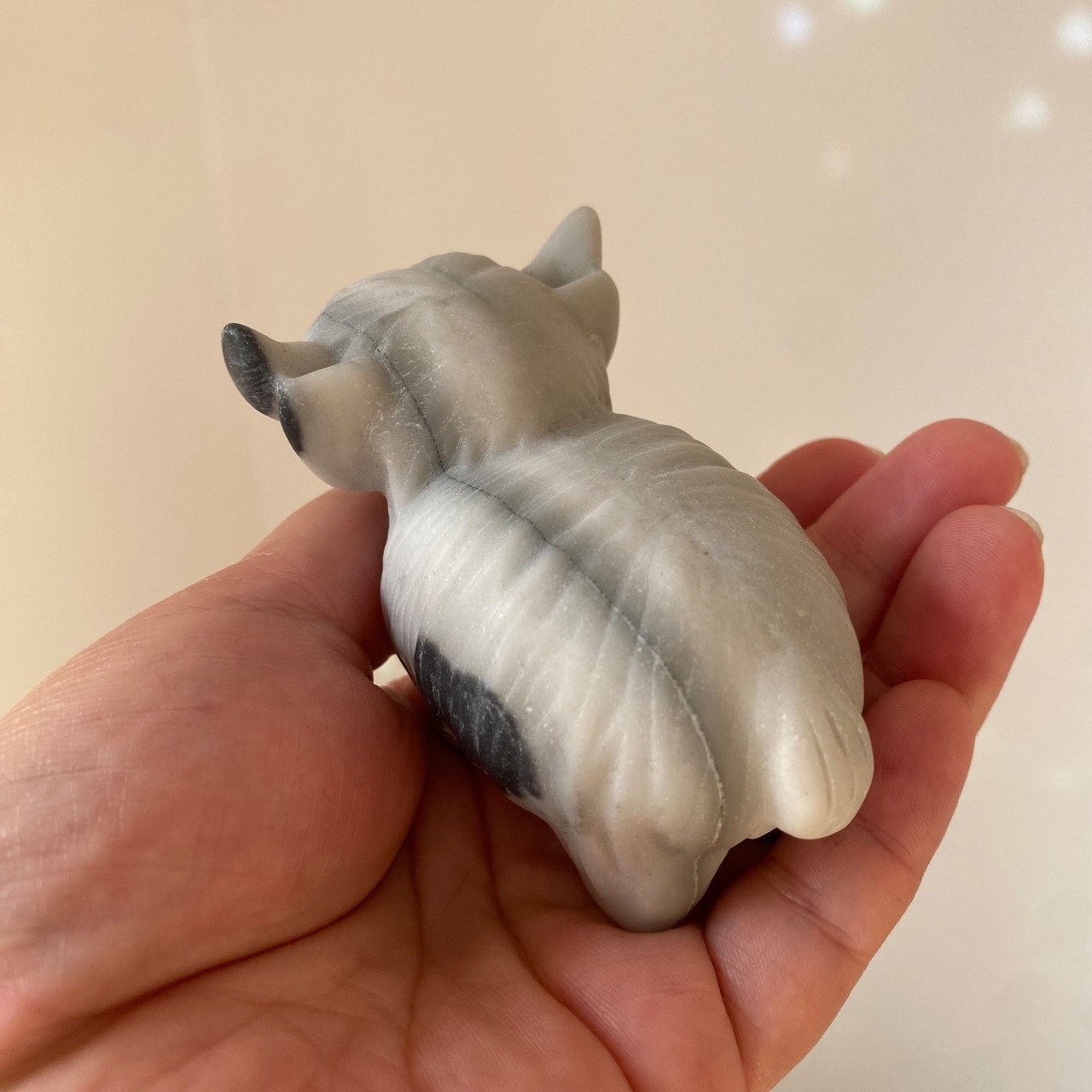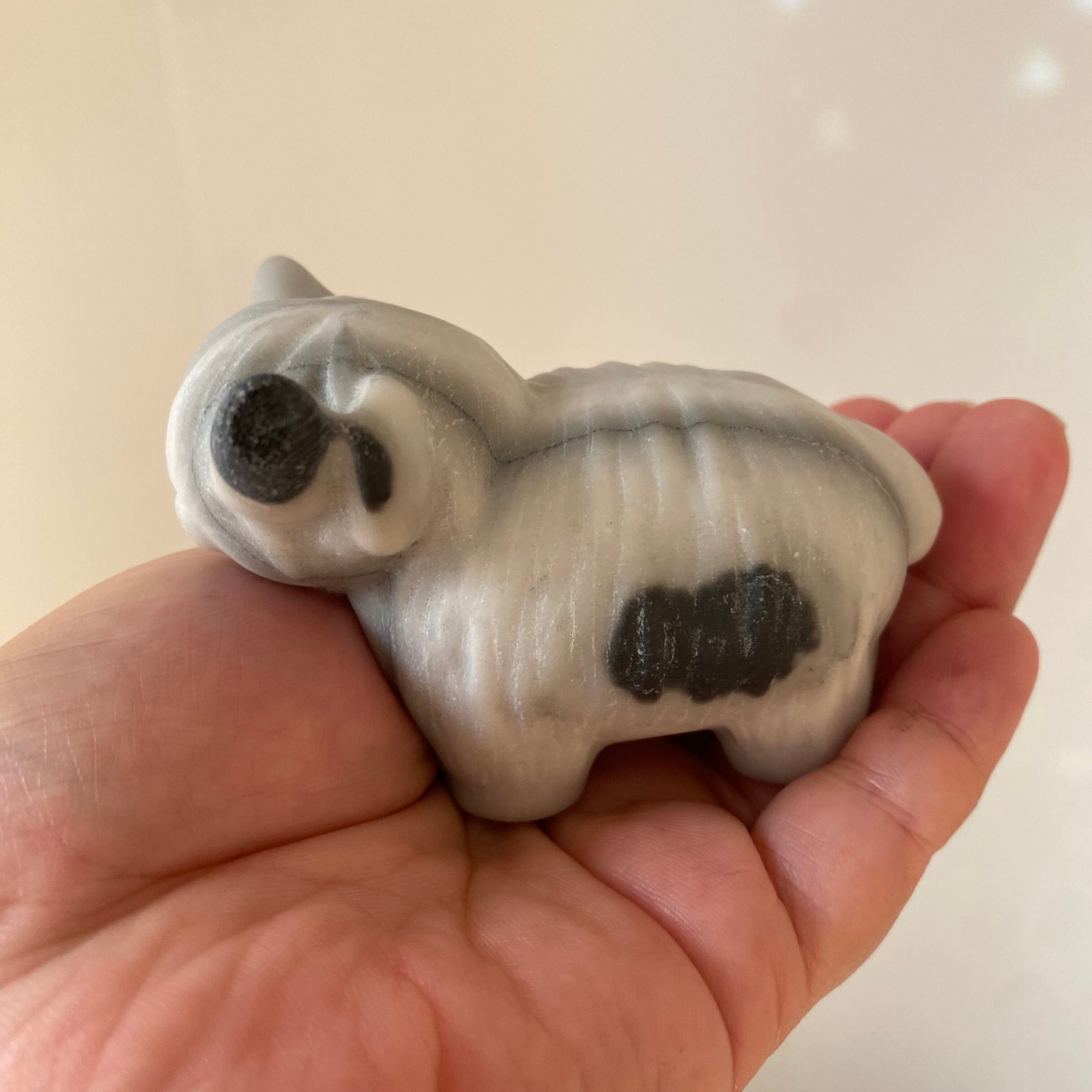 陰陽ジェイド 牛 牛さん カービング 黒白 天然石 パワーストーン