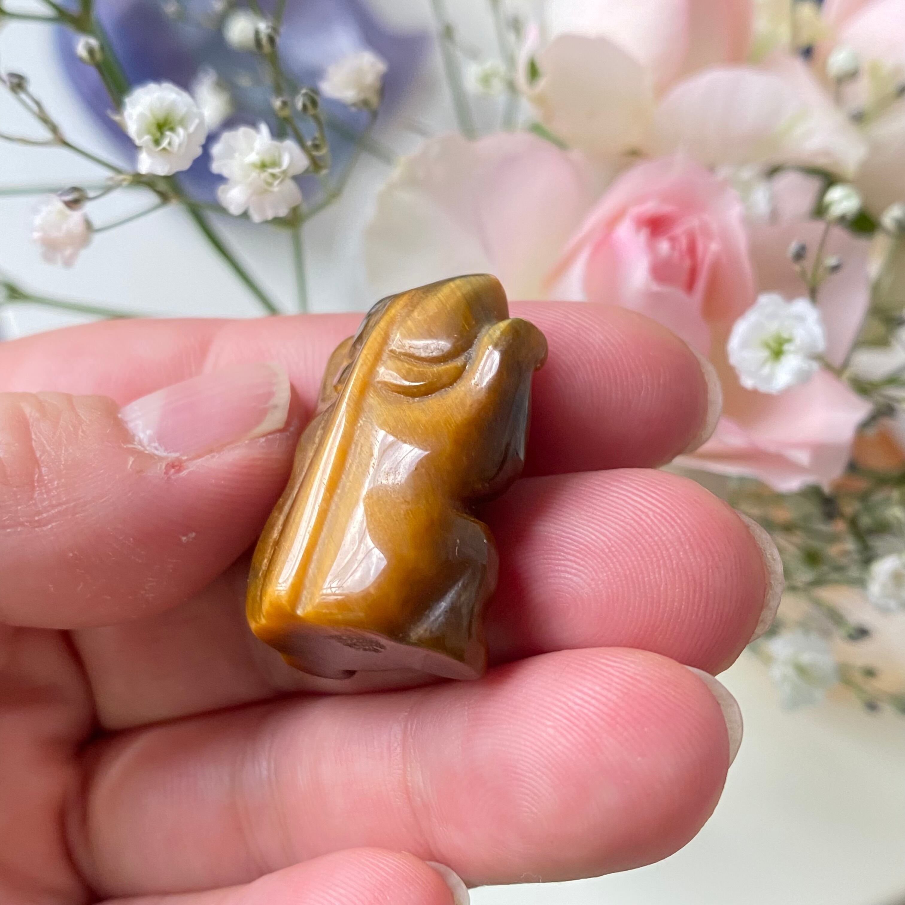 タイガーアイ 猫 ねこ カービング 天然石 パワーストーン 招き猫 両手