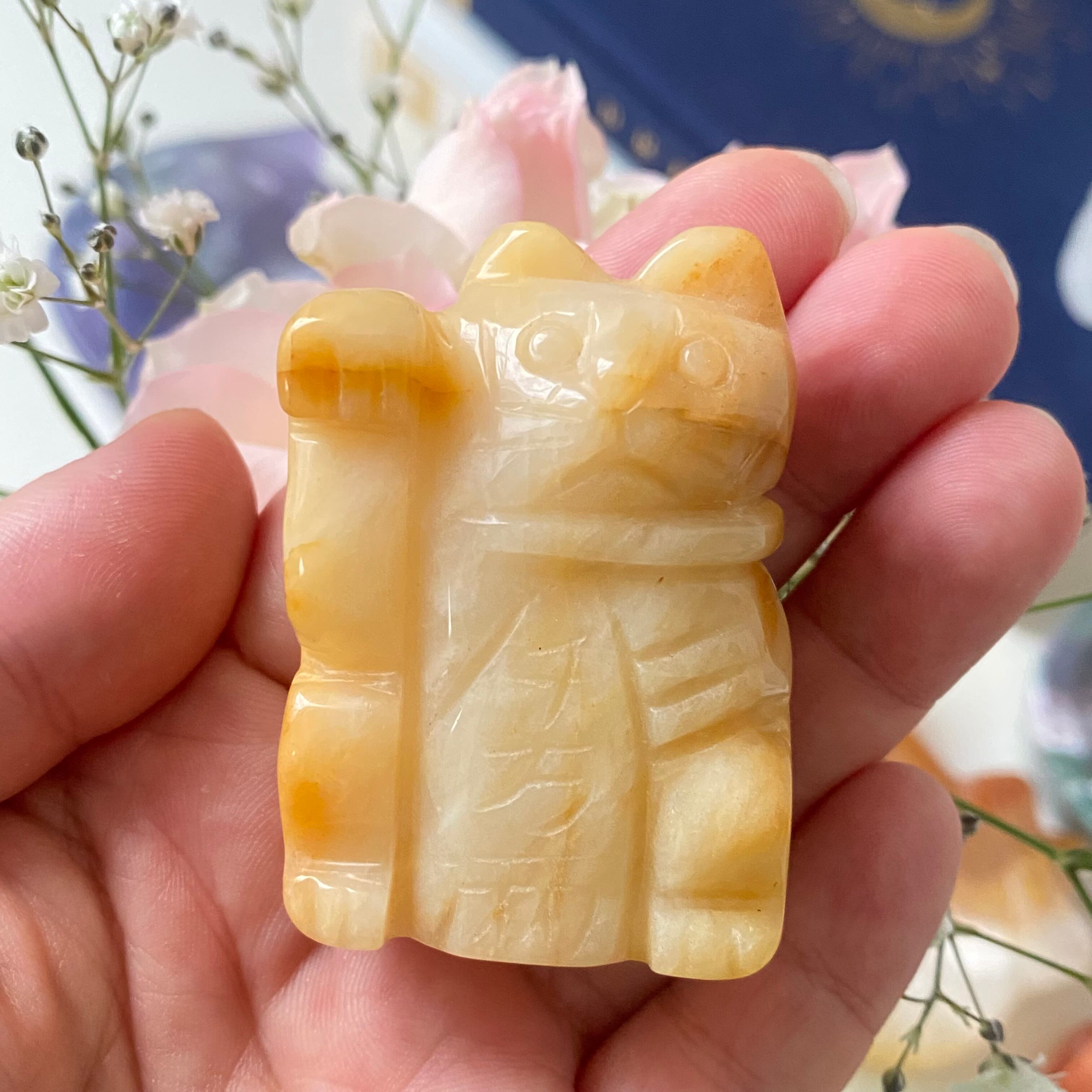 イエロージェイド 招き猫 カービング 天然石 パワーストーン
