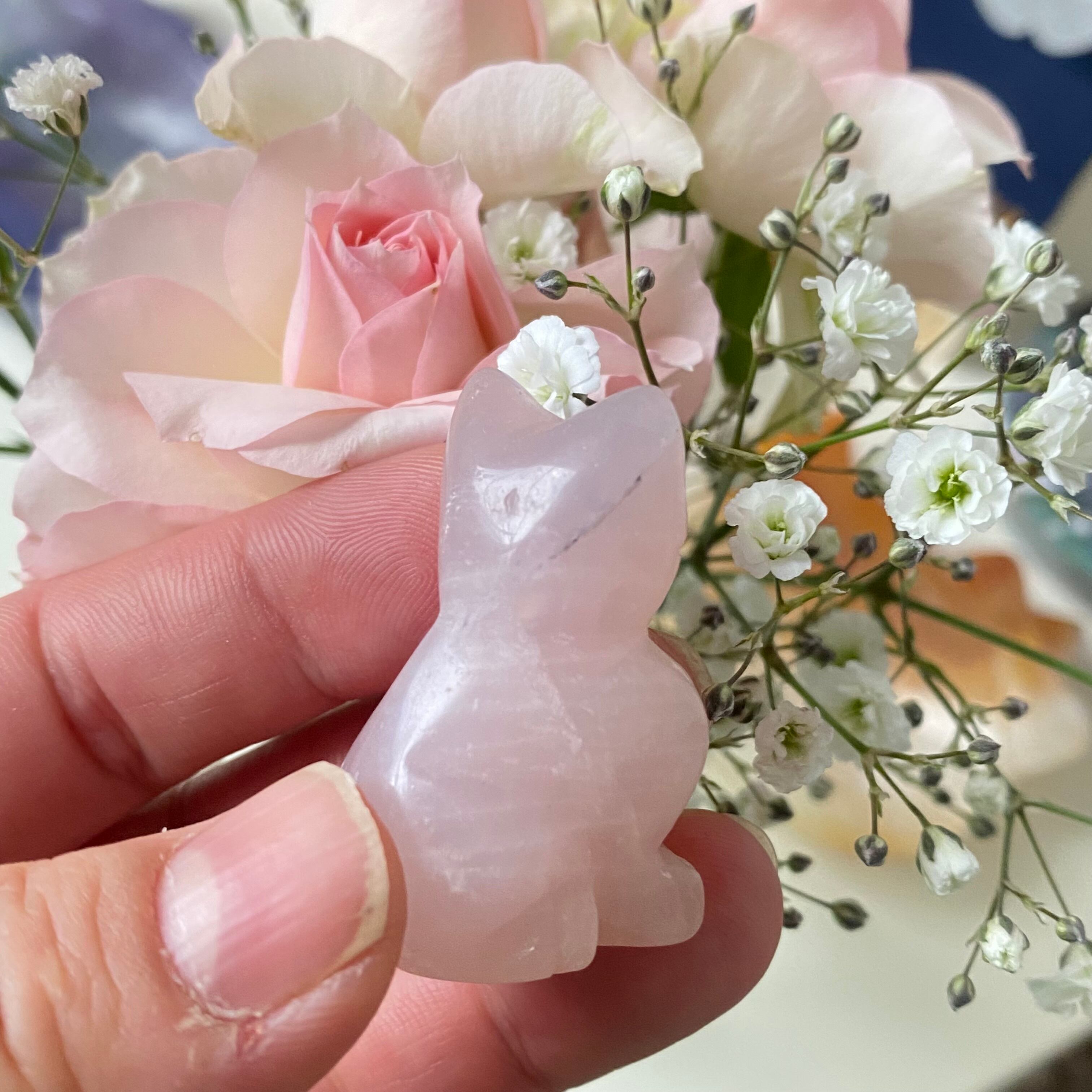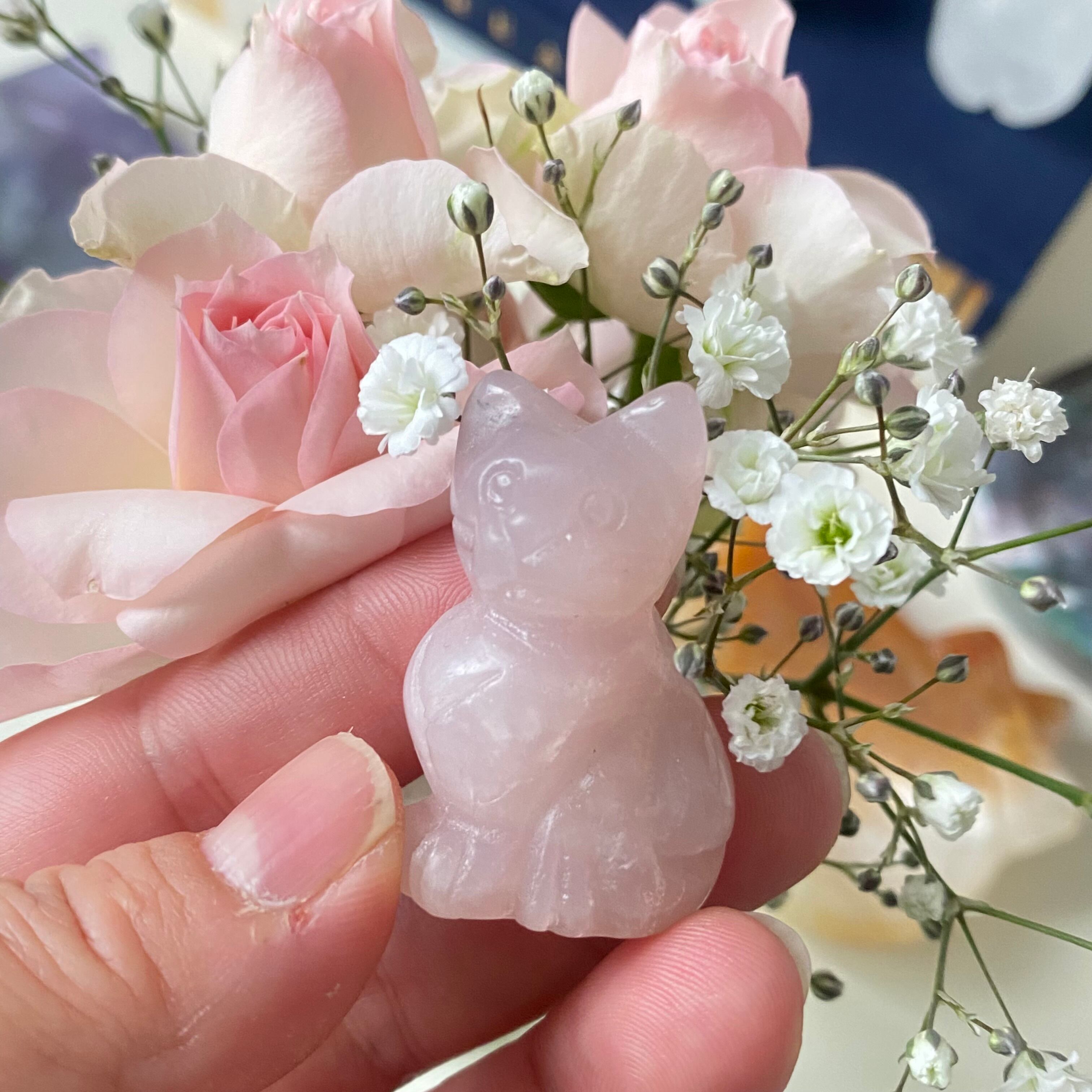 ローズクォーツ 猫 カービング ねこ 天然石 パワーストーン