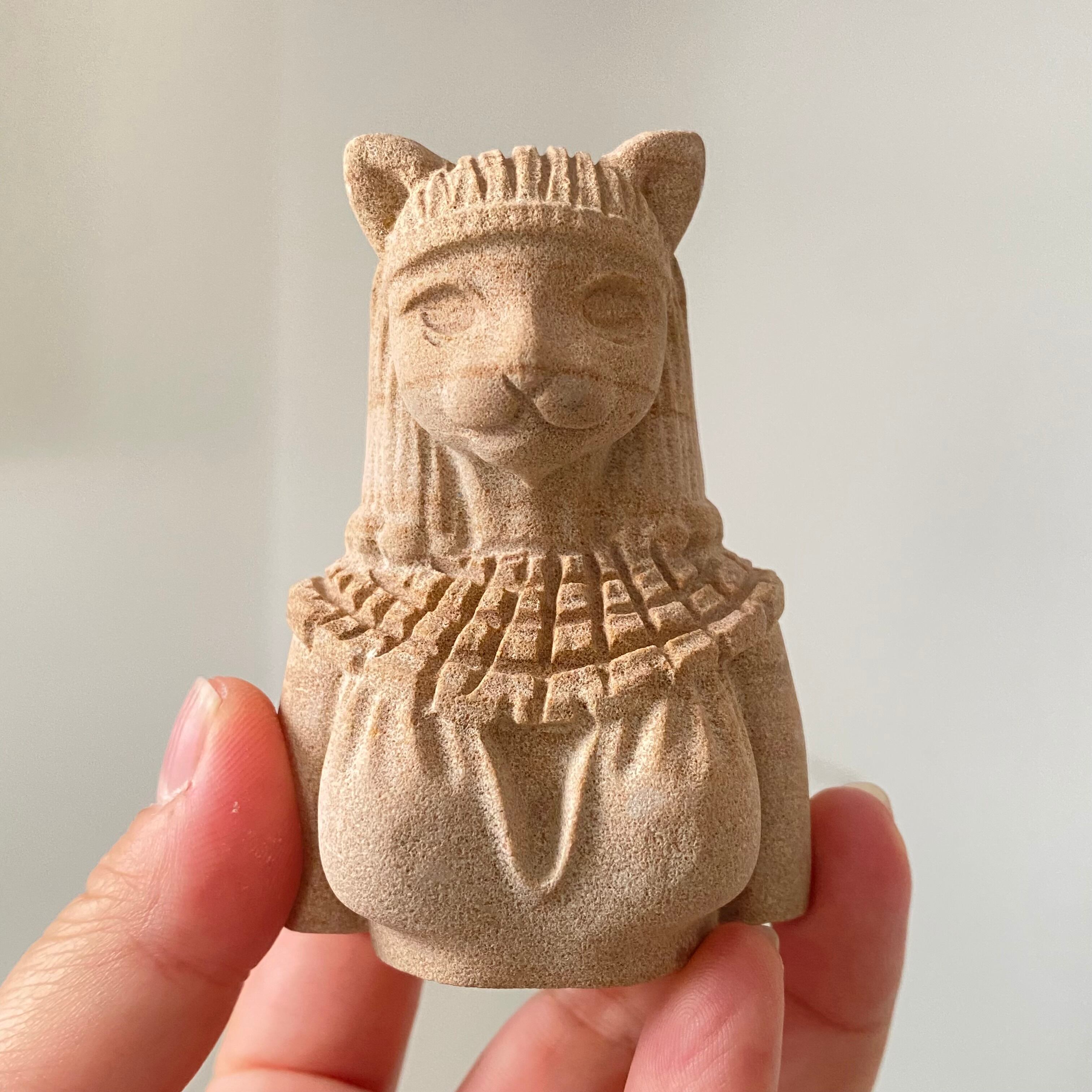 バステトの力強い守護と、サンドストーンの穏やかなエネルギーが融合した特別な一品。
