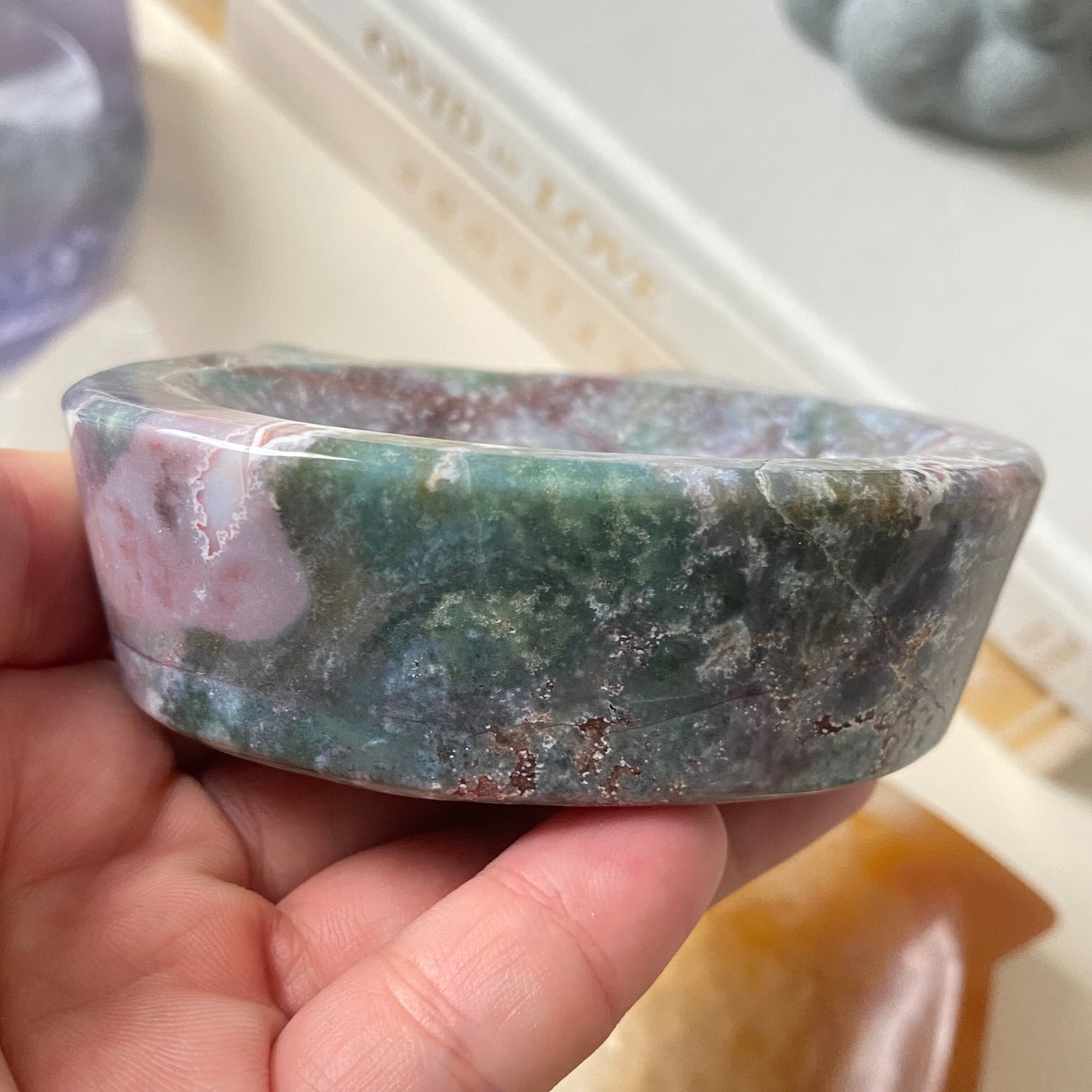 自然が生み出した色彩が美しい、オーシャンジャスパーの猫型ボウル。