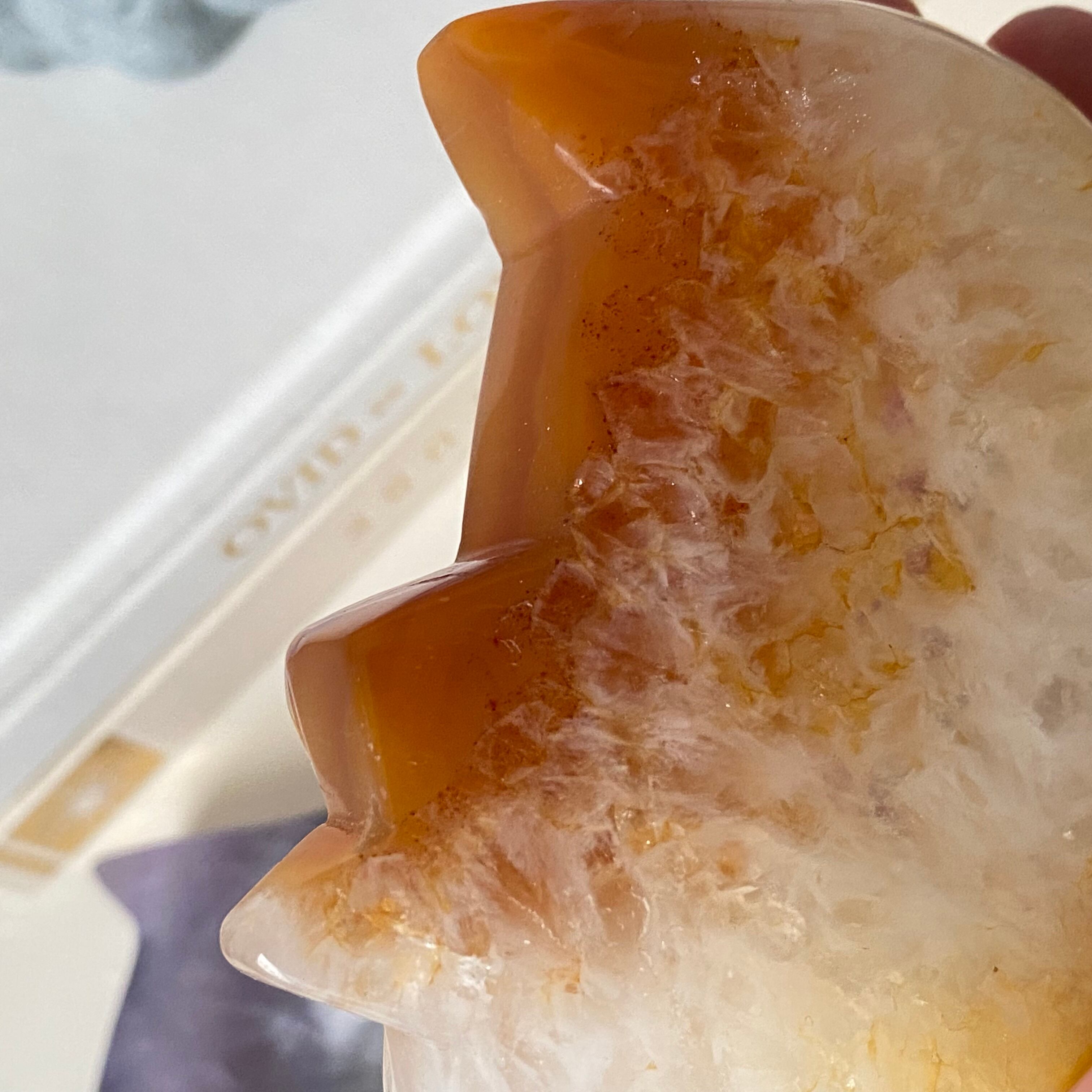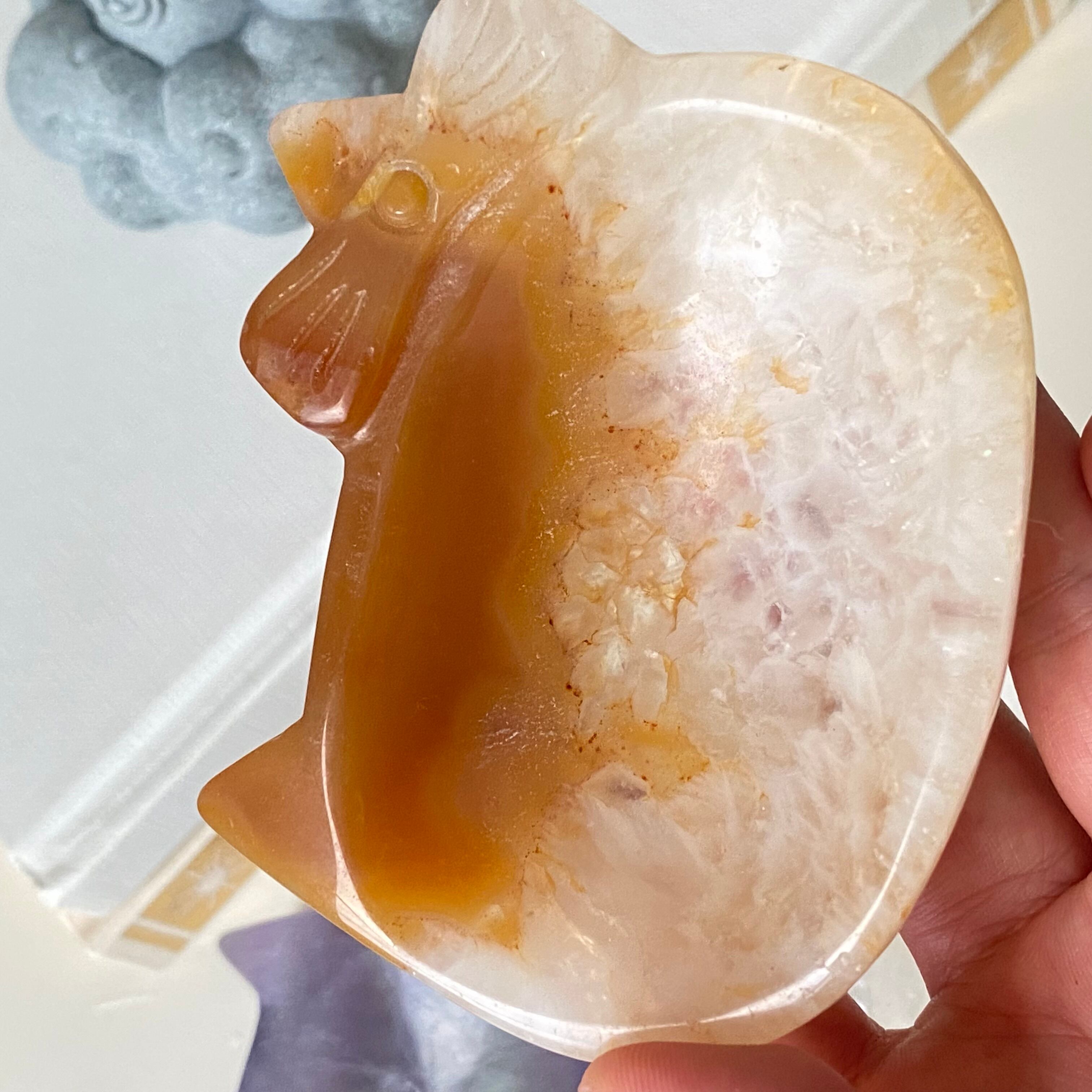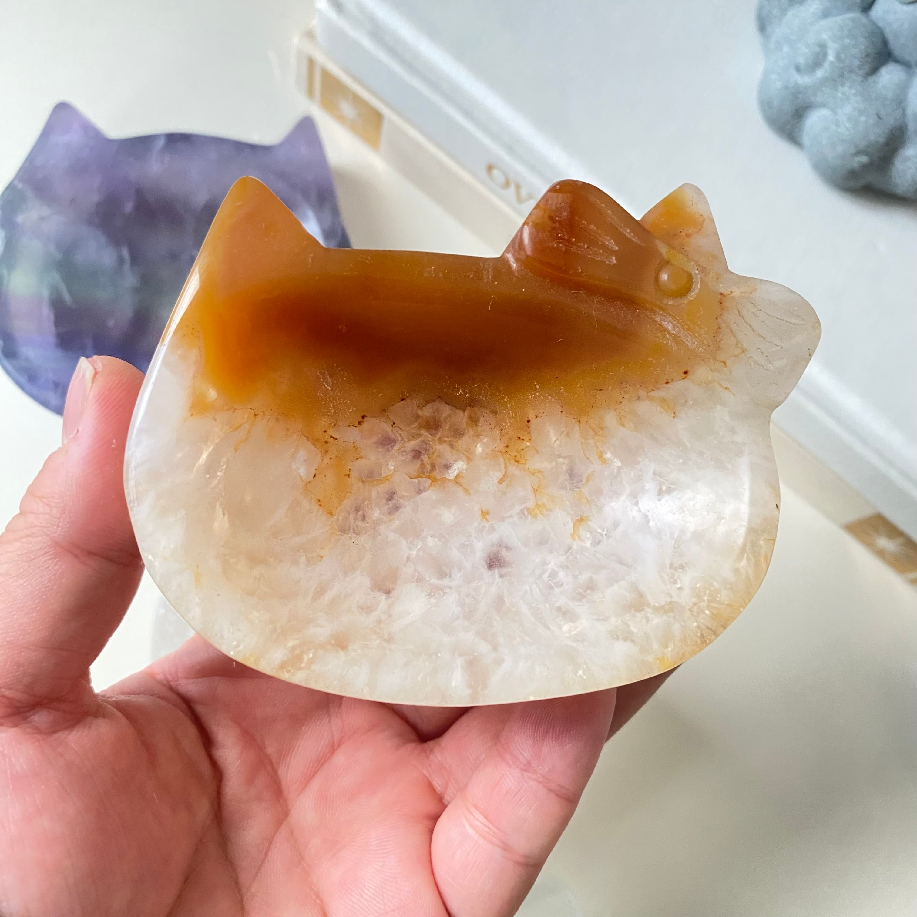 温かみのある色合いが美しい、アゲート(瑪瑙)で作られた猫型ボウル。