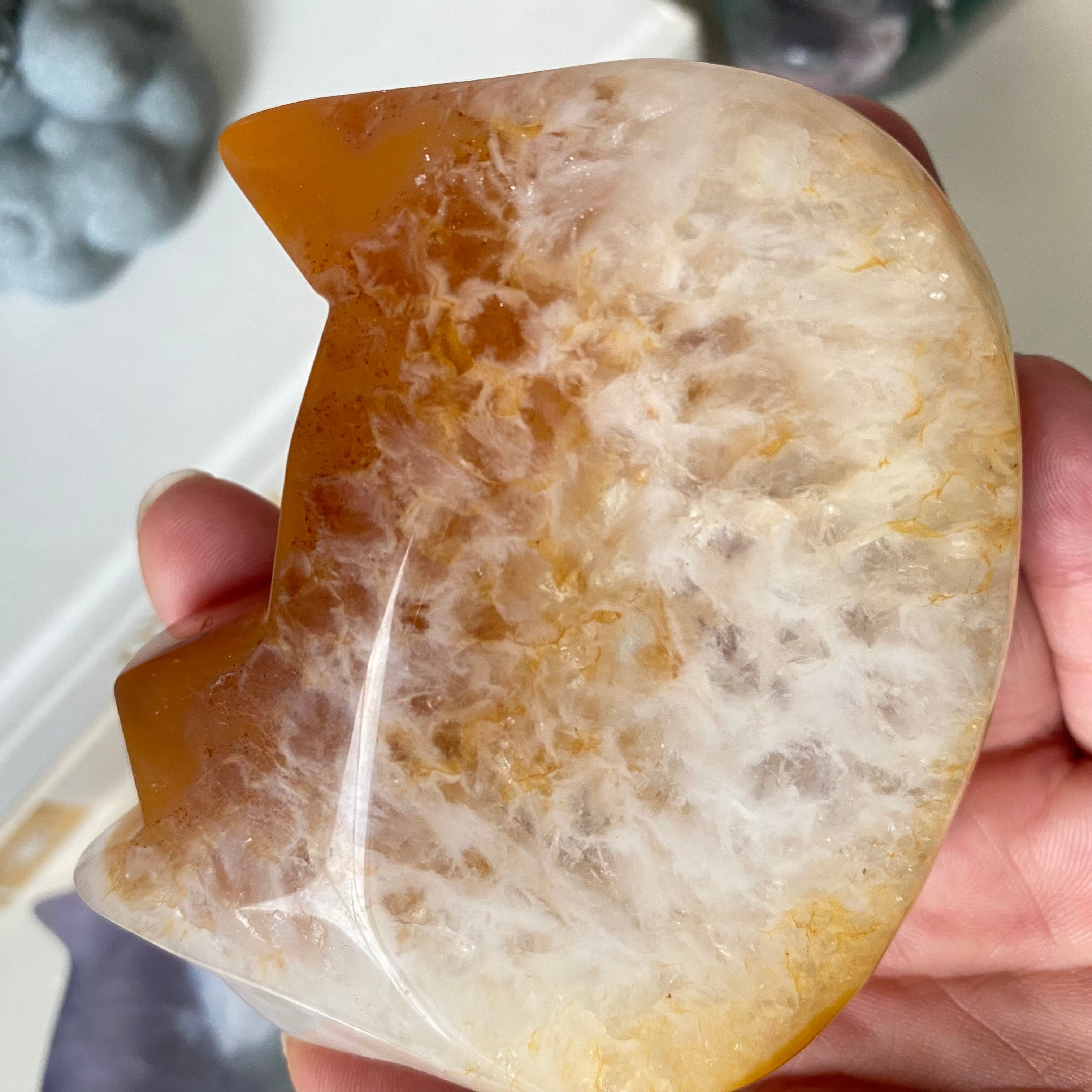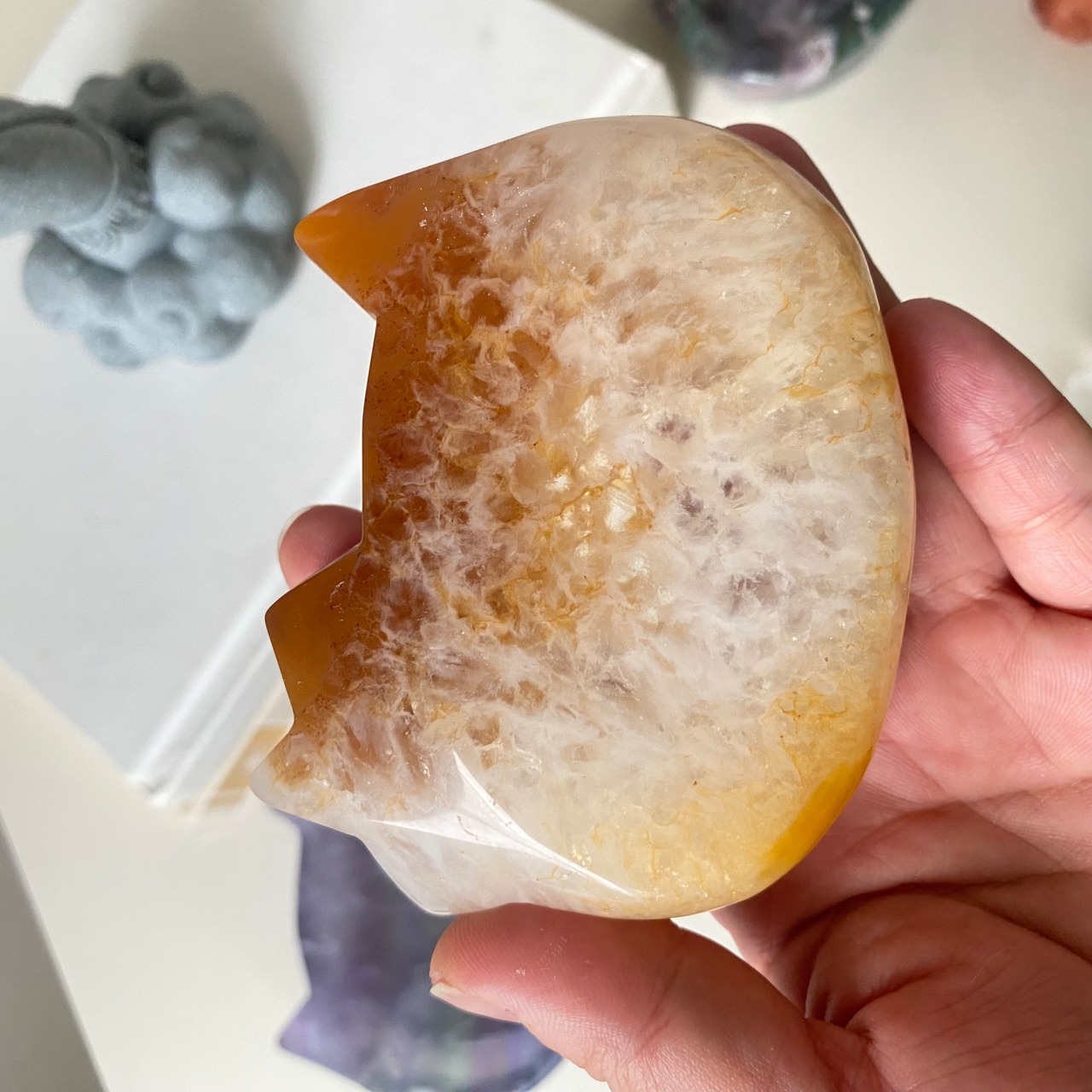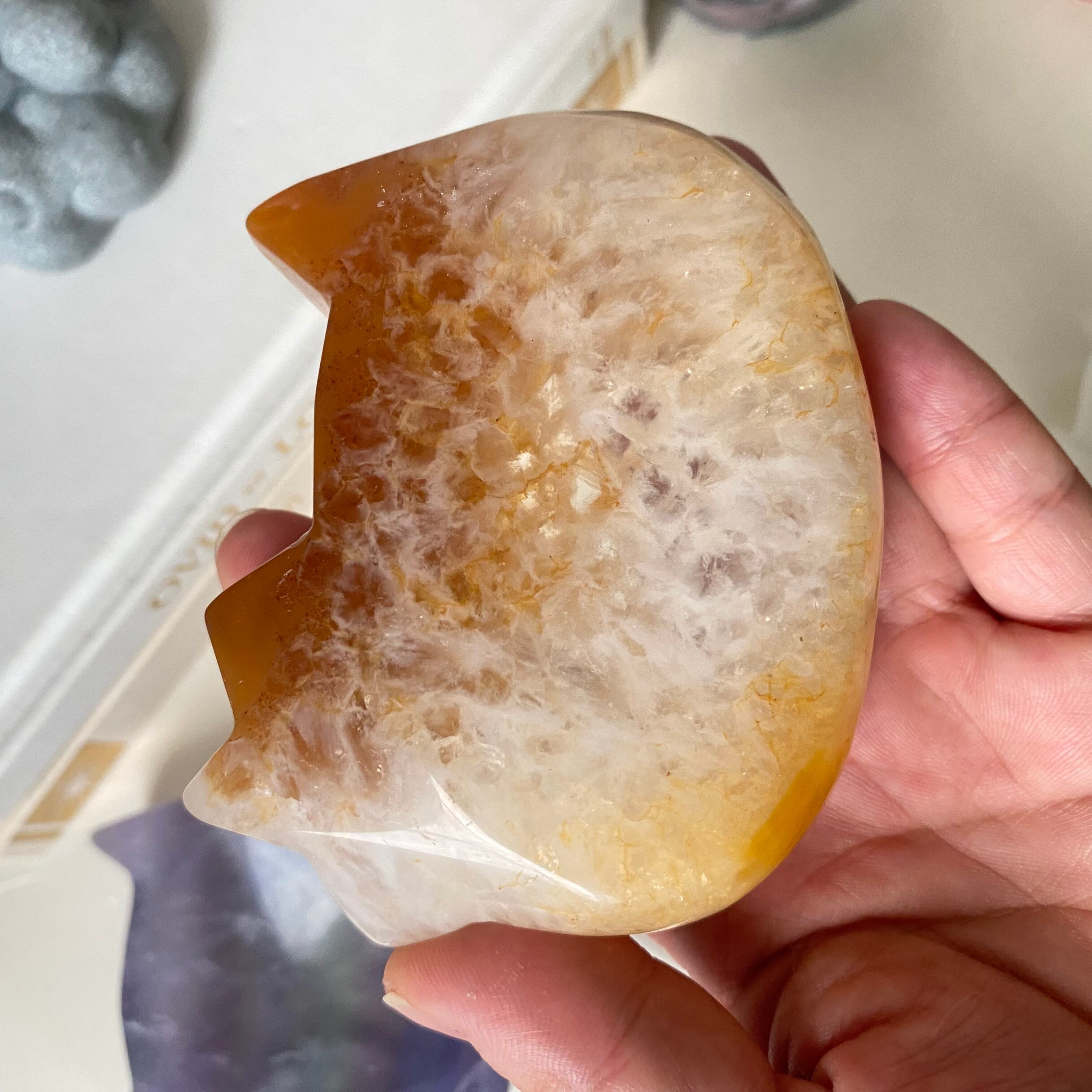 温かみのある色合いが美しい、アゲート(瑪瑙)で作られた猫型ボウル。